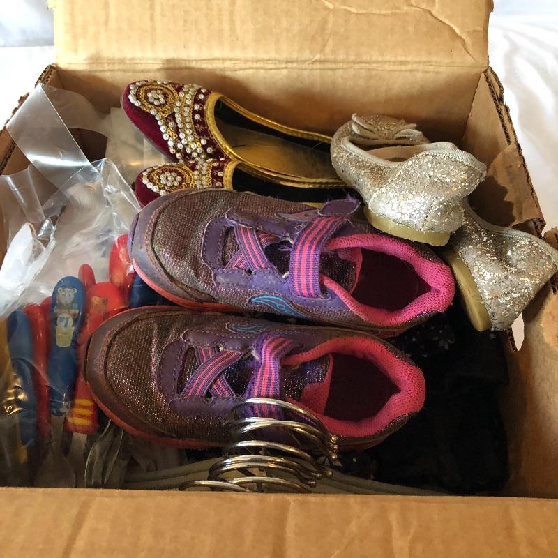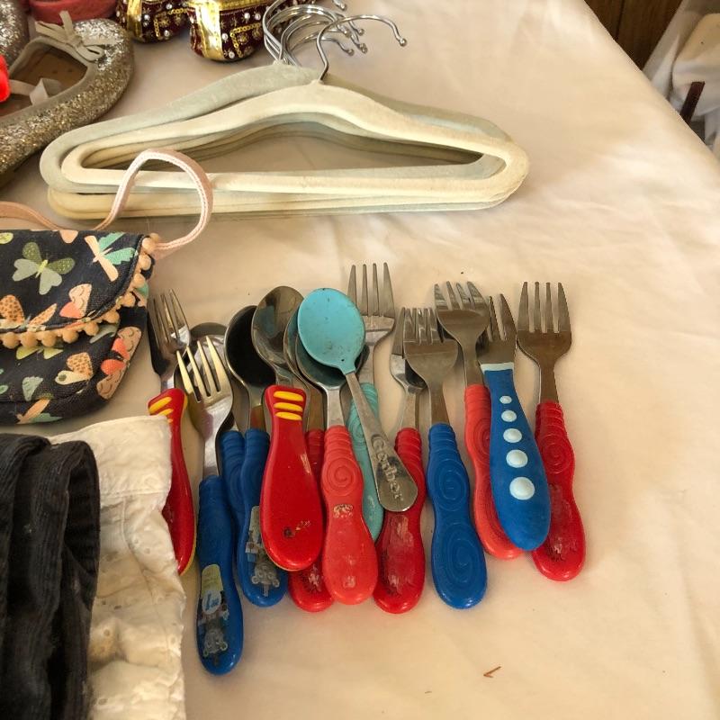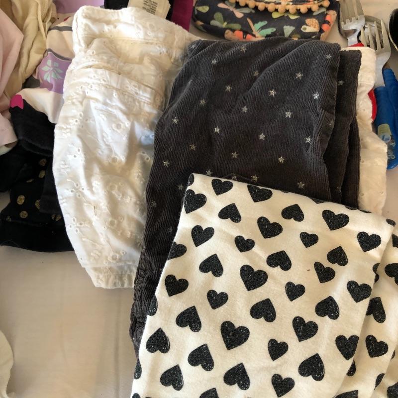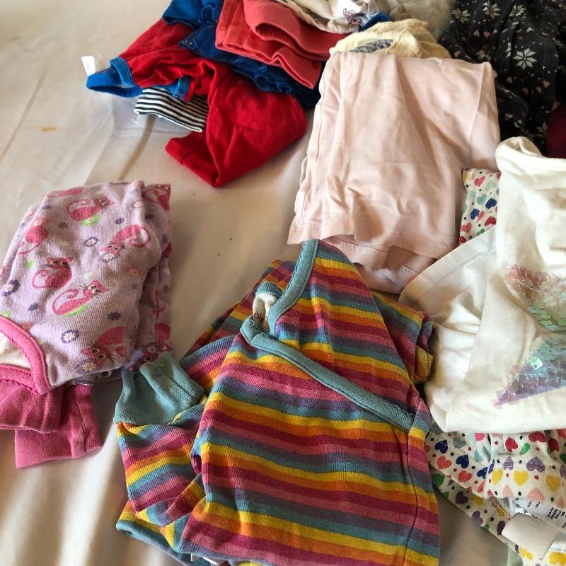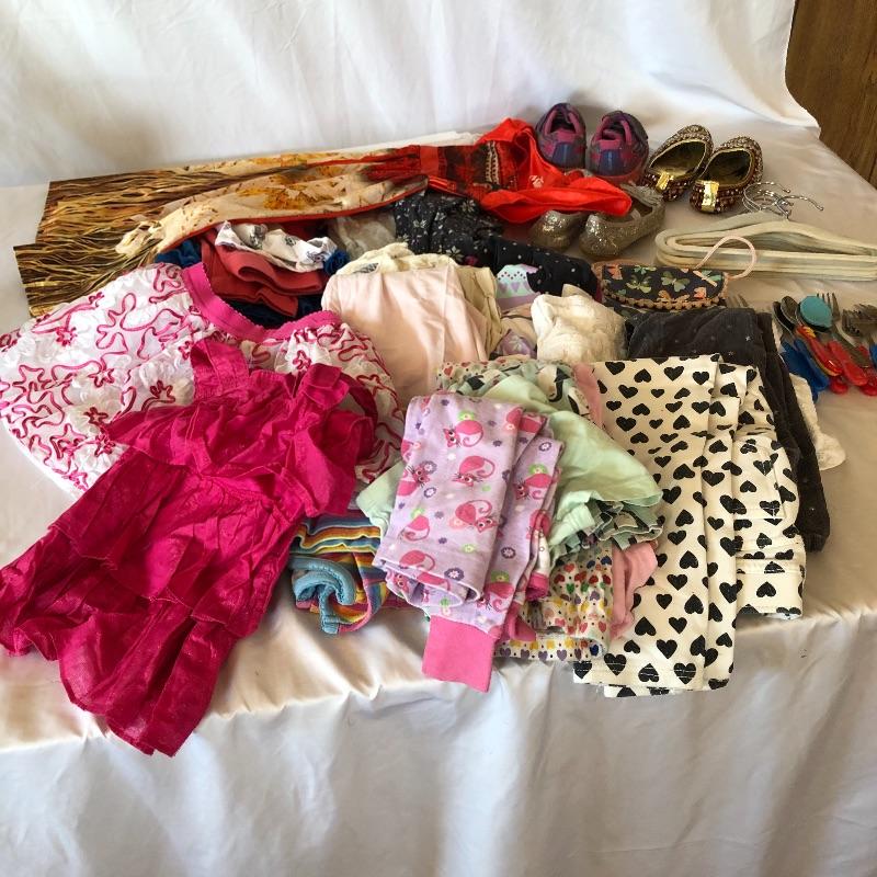 This lot includes a variety of girl’s clothing: shorts, pants, shoes, pajamas, tops & sweats. Lot also includes shoes and children’s spoons and forks. Sizes vary from 22 months to 4T. Local pick up only.