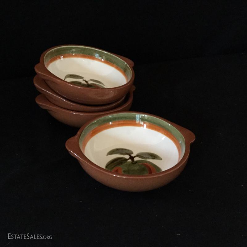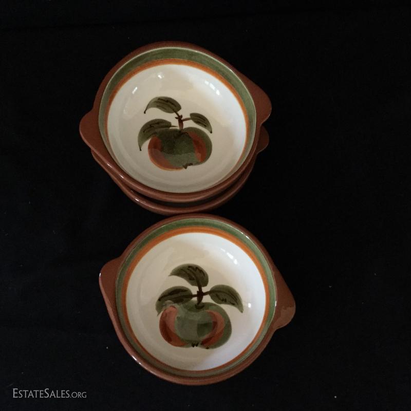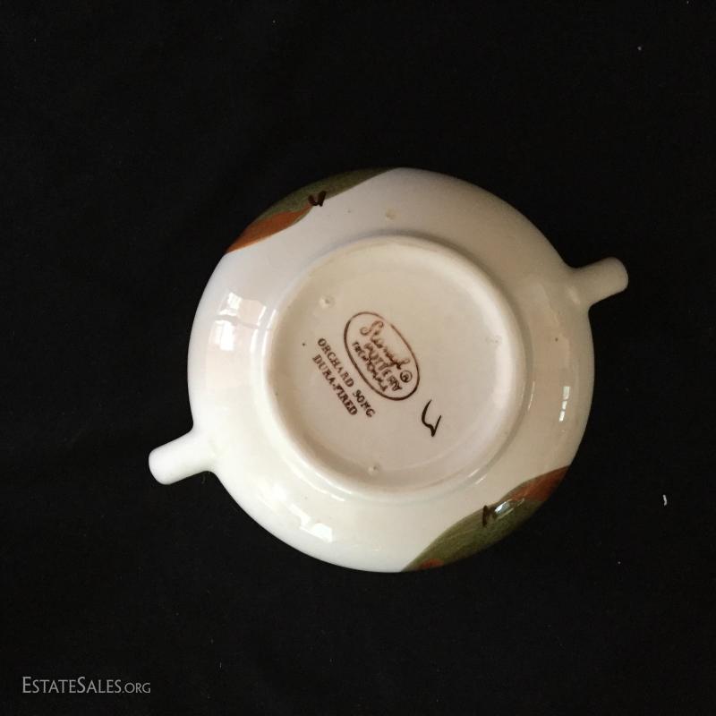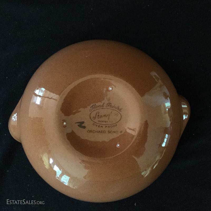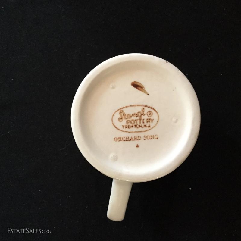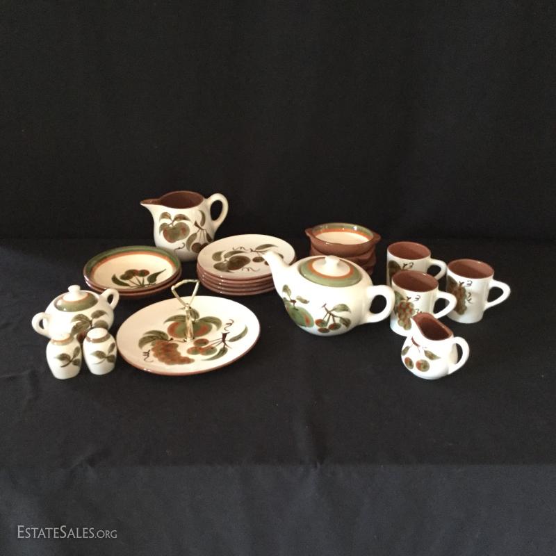 Hand painted Stangl pottery, Orchard Song design. Includes plates, tea set, pitcher, salt and pepper set, small bowls, and 10" platter.