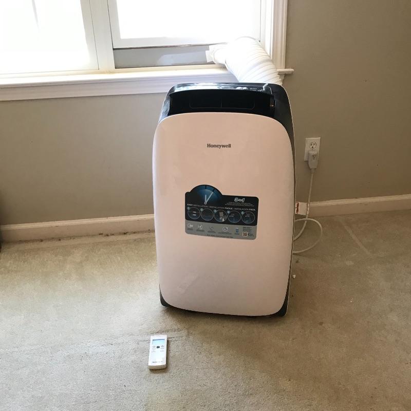 A/C may be low on your priority list right now, but that means it’s the best time to buy! Honeywell 3-in-1 portable air conditioner with dehumidifier and fan. This appliance is on wheels, it has a timer and automatically opens its sleek top when turned on. Appliance appears to work well. The remote was not tested and needs new AAA batteries. Piece has white duct tape in spots, we are unaware of the underlying issues. Come to the preview and see photos. Local pick up only.