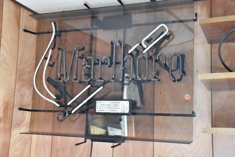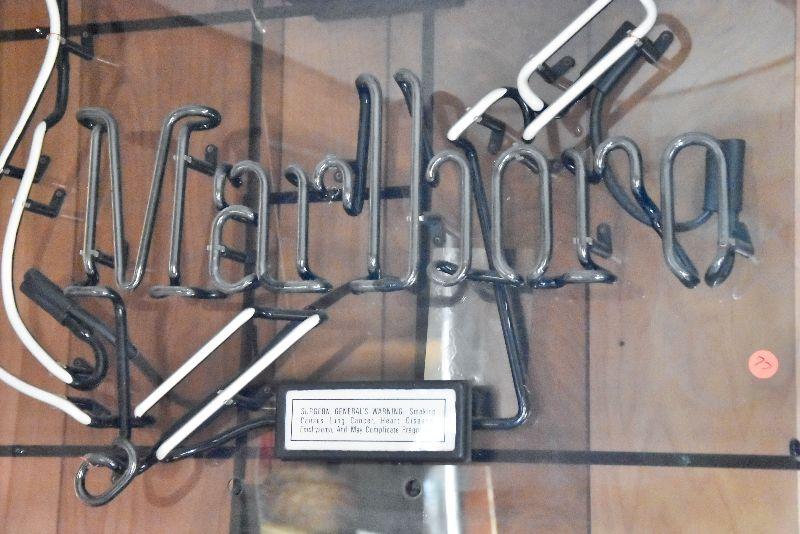 Large Marlboro Lighted Sign #2- from gas station, in great condition! Vintage Marlboro Neon Light Sign 1997 Tobacco 21" x 15" man cave advertising