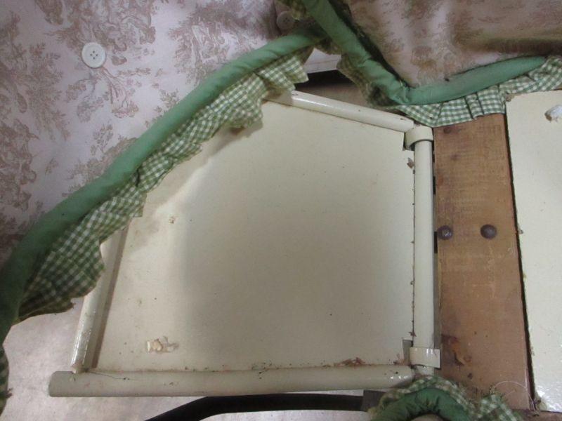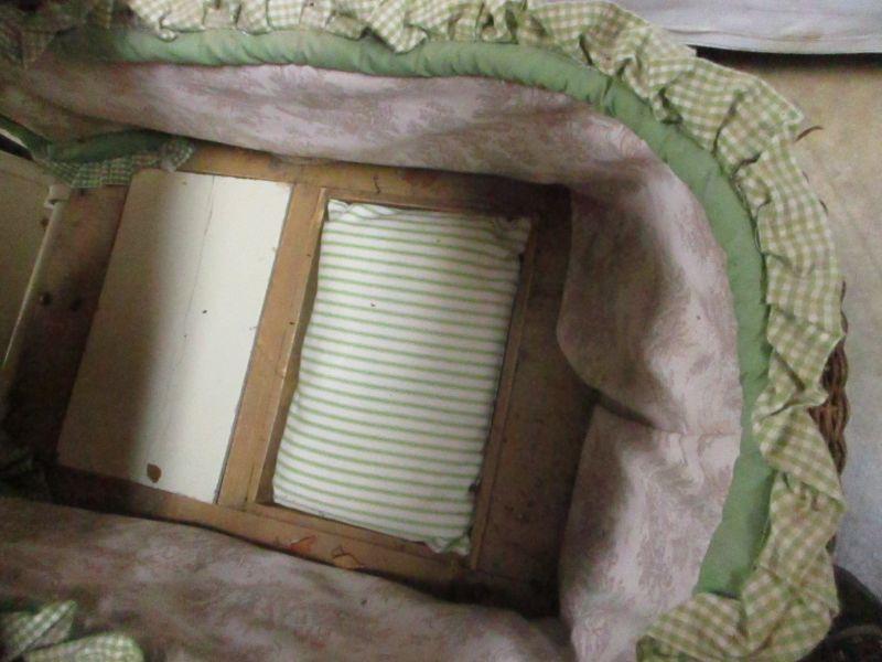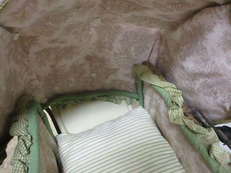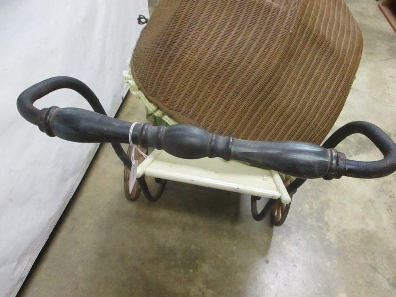 Lot 77 - Vintage Thayer Baby Doll Stroller Carriage Wicker Buggy Rustic Metal Rattan