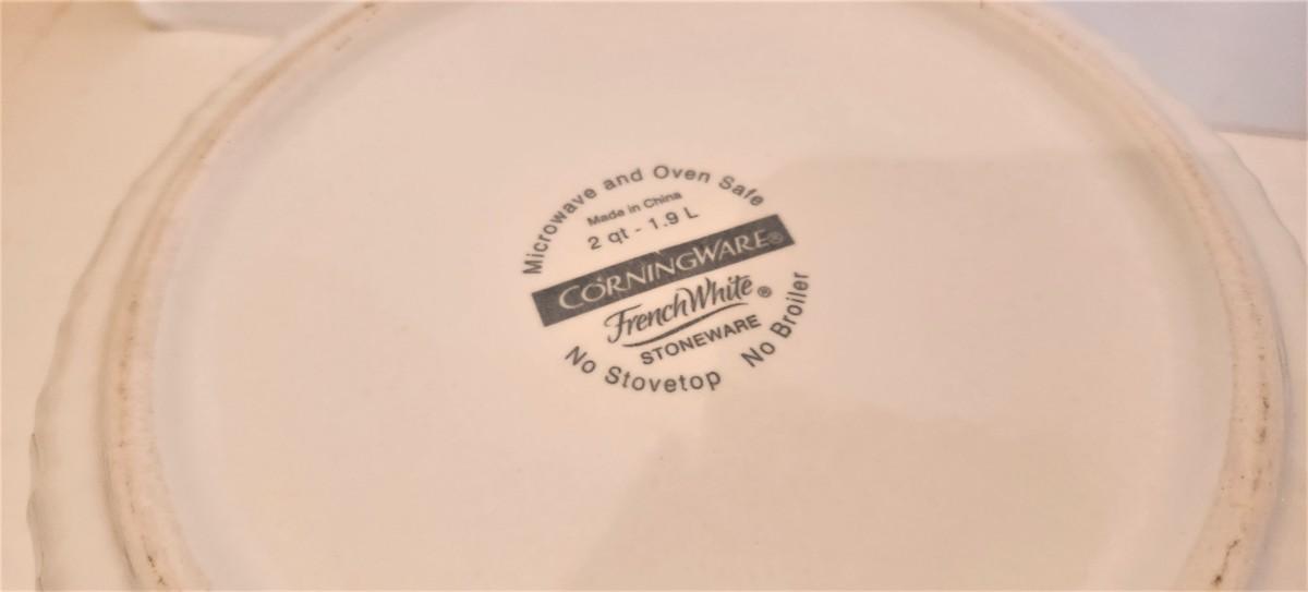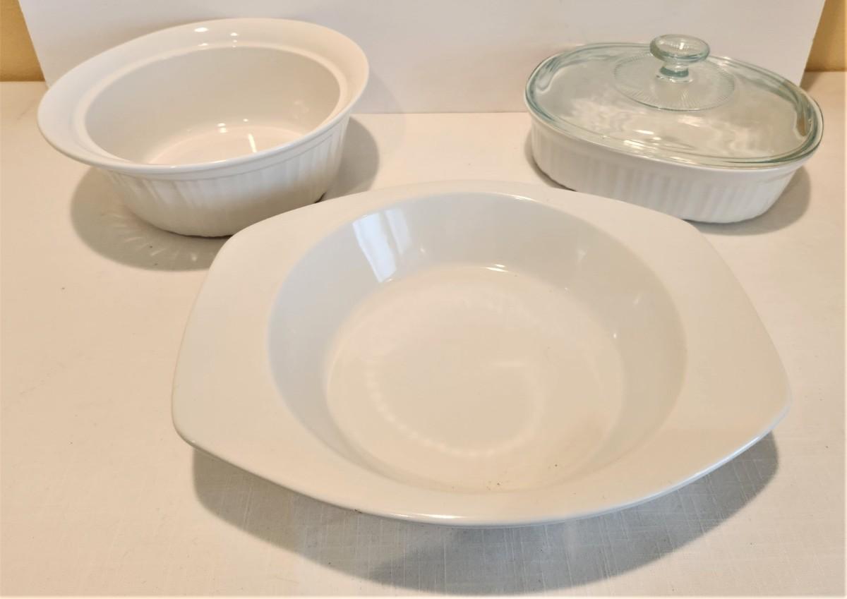 You get all you see here: 2 white Corning Ware casseroles, 1.5 Quart and 2 Quart - large has no lid - and a white Kitchen Aid 9" dish - all in good condition.