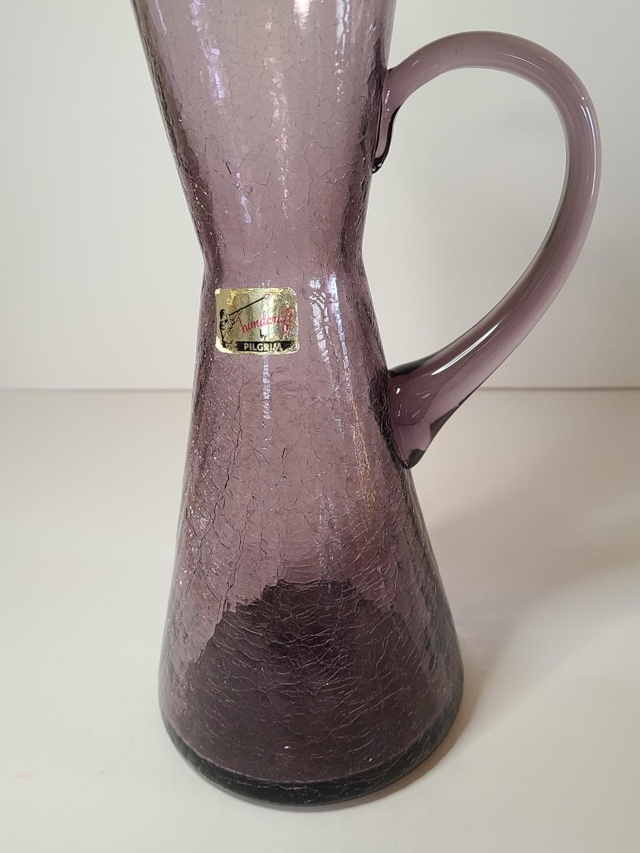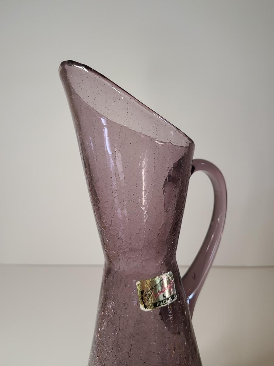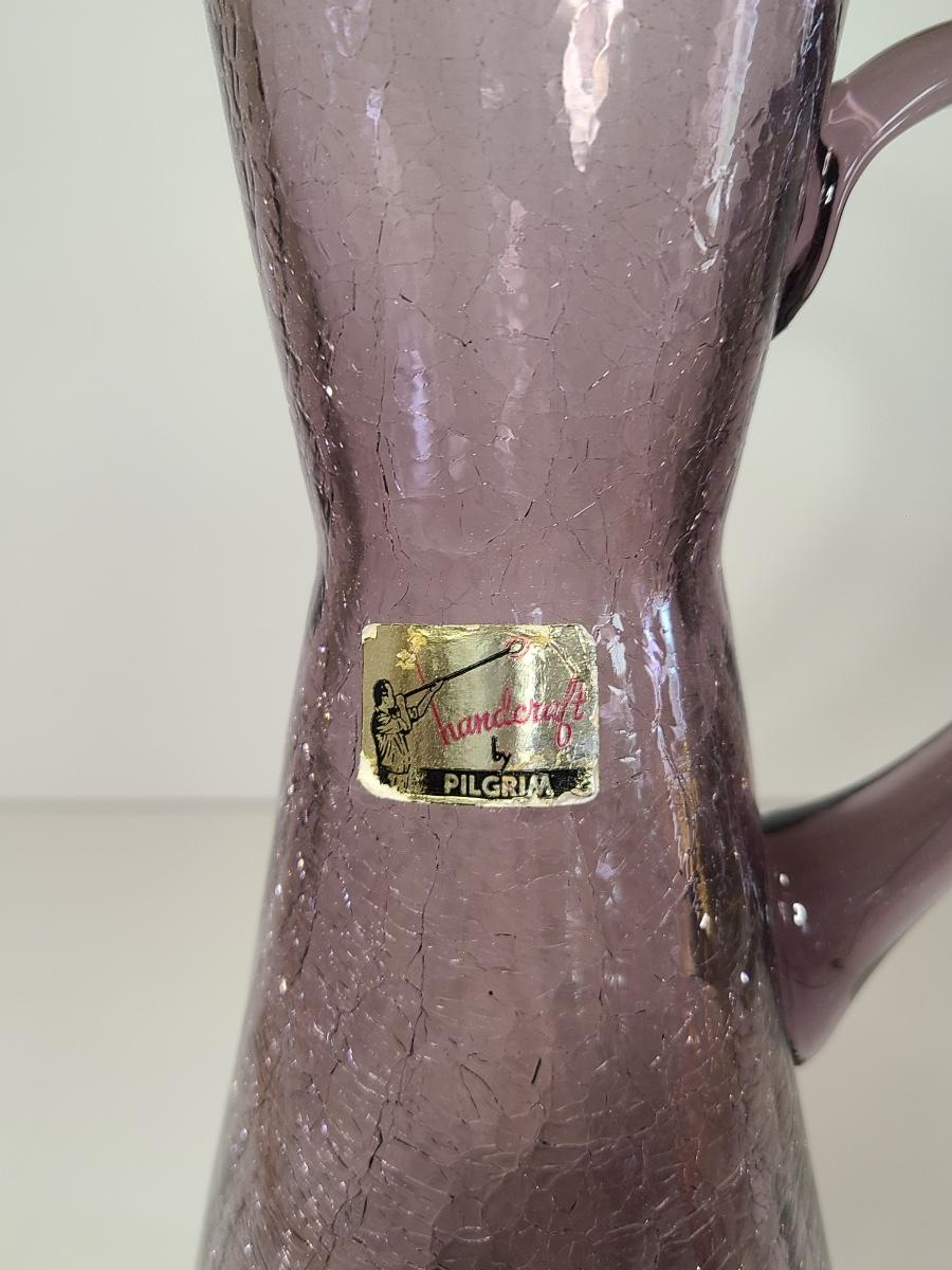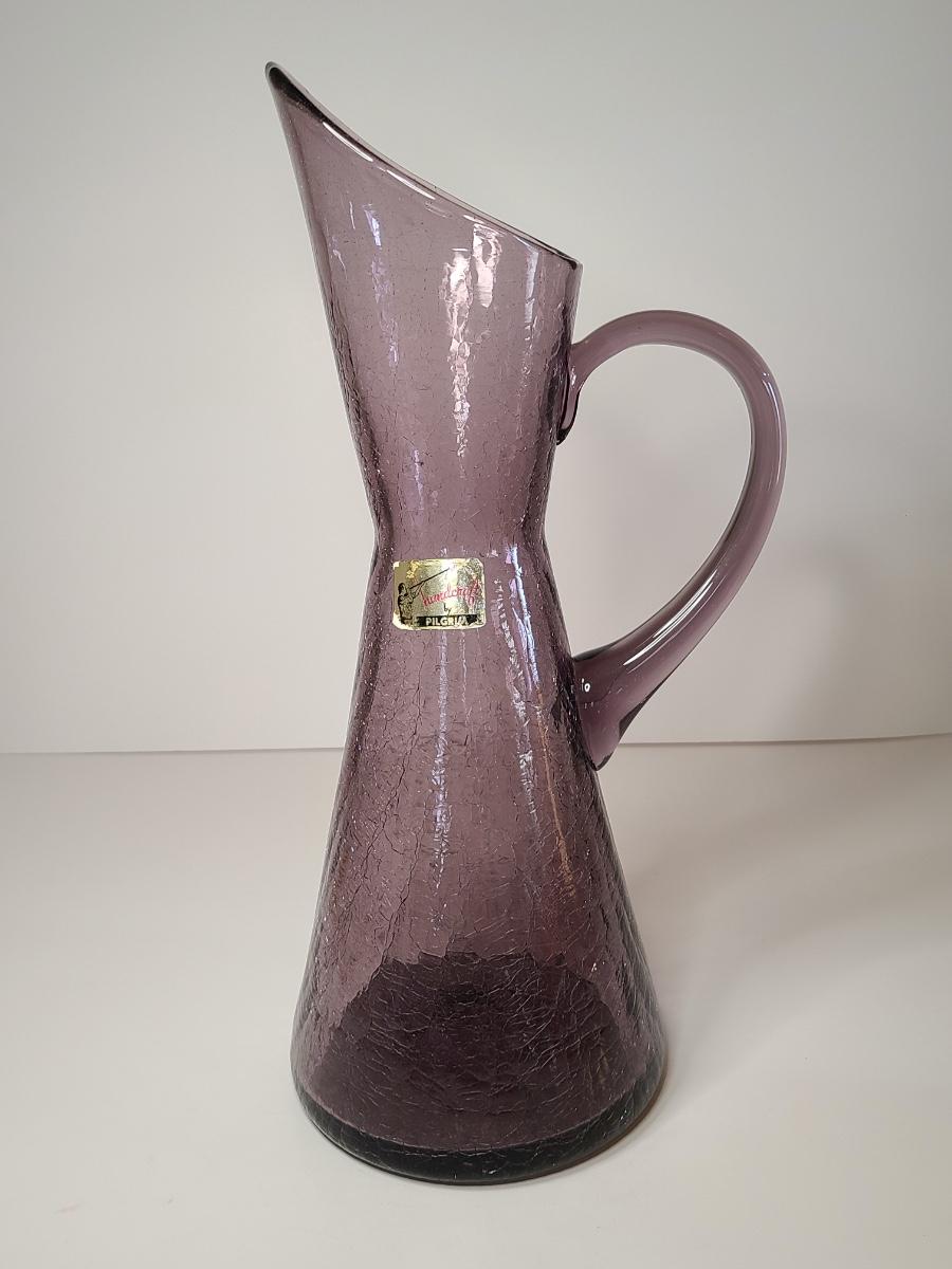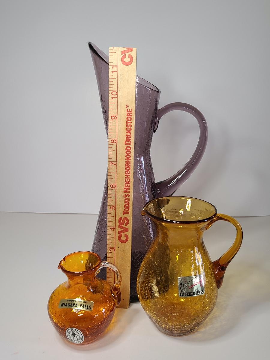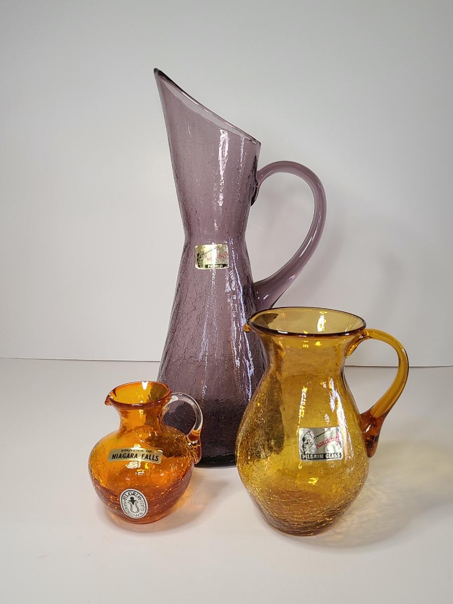 Lot 77: MCM/Vintaged Labeled Pilgrim Crackle Glass Pitcher and More