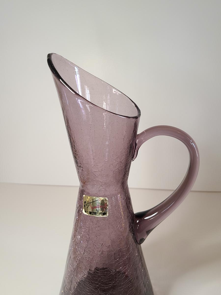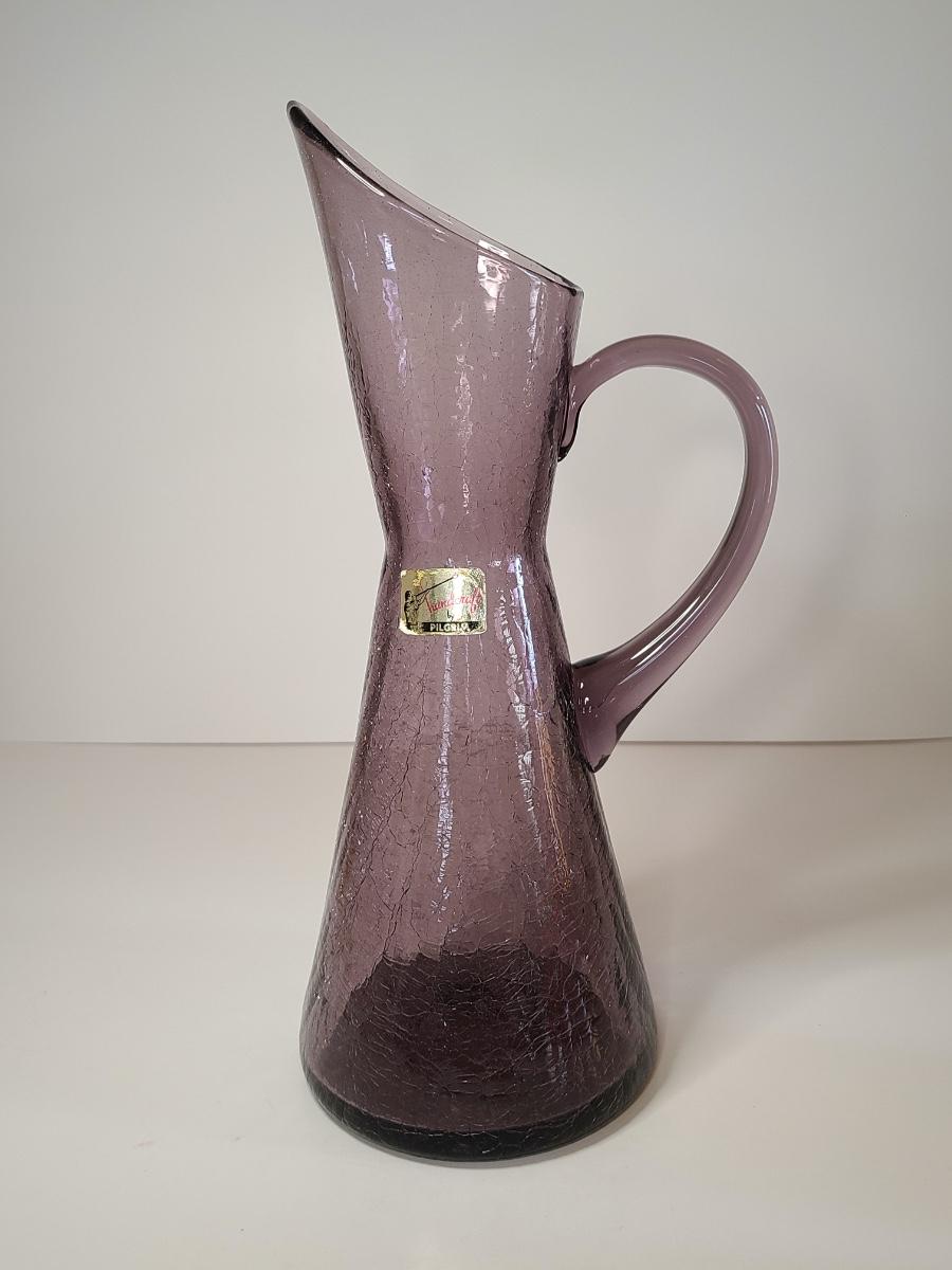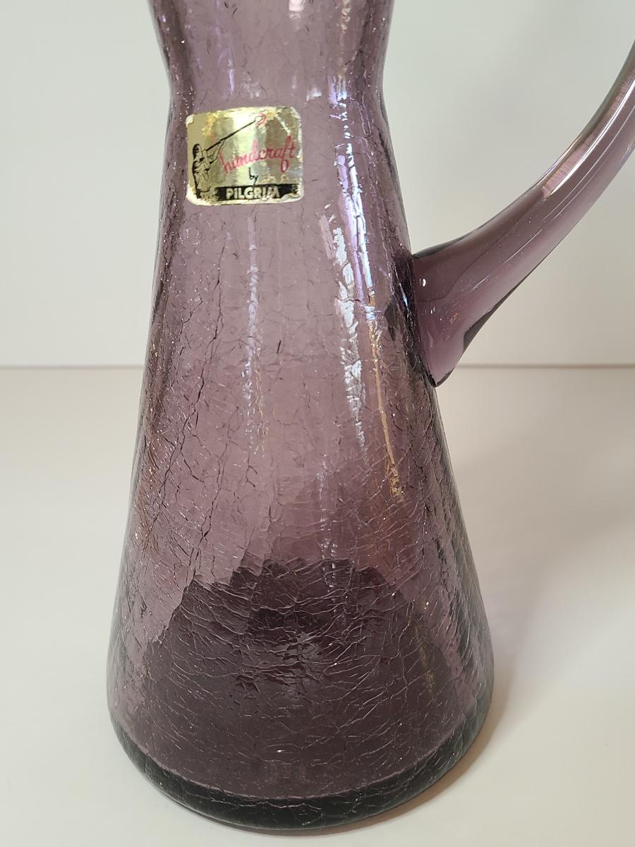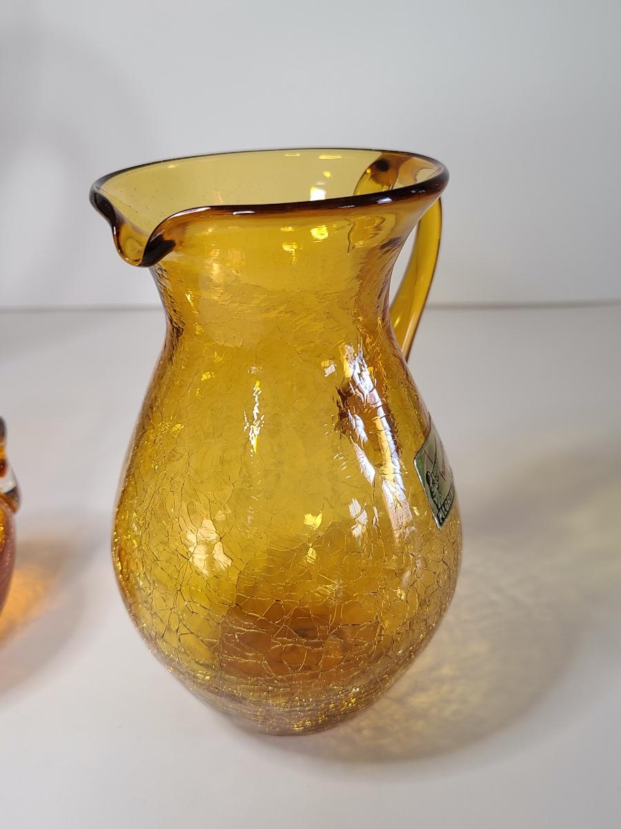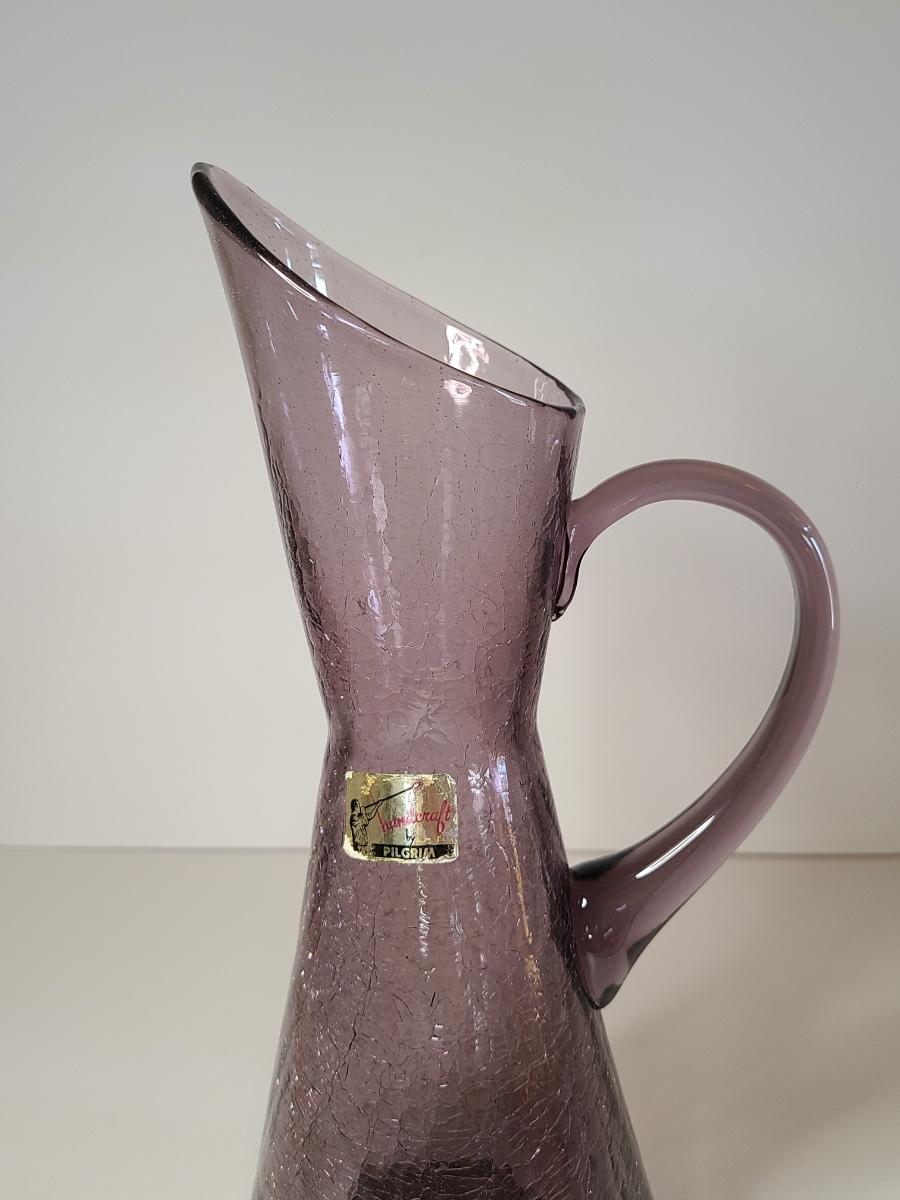 Lot 77: MCM/Vintaged Labeled Pilgrim Crackle Glass Pitcher and More