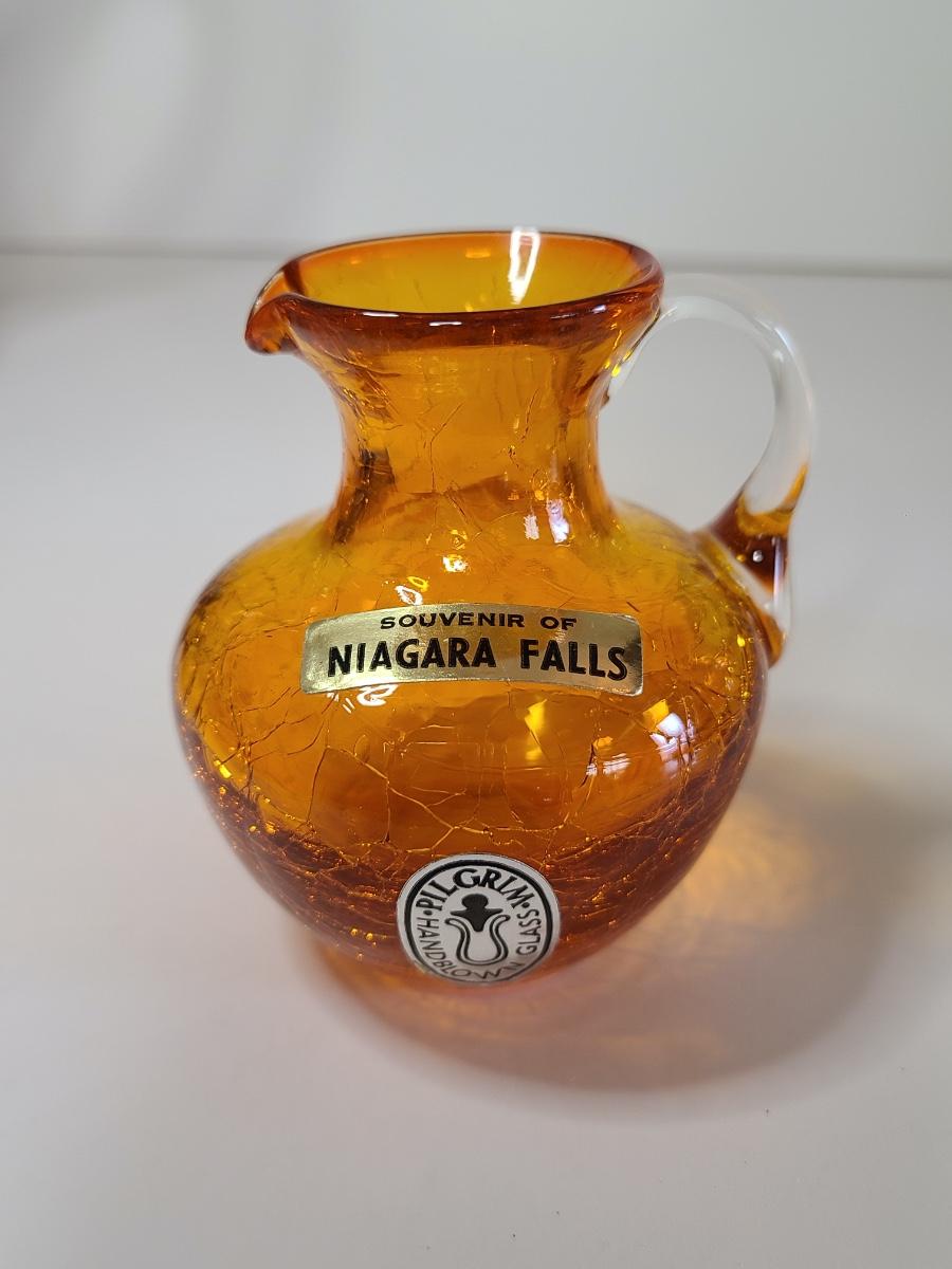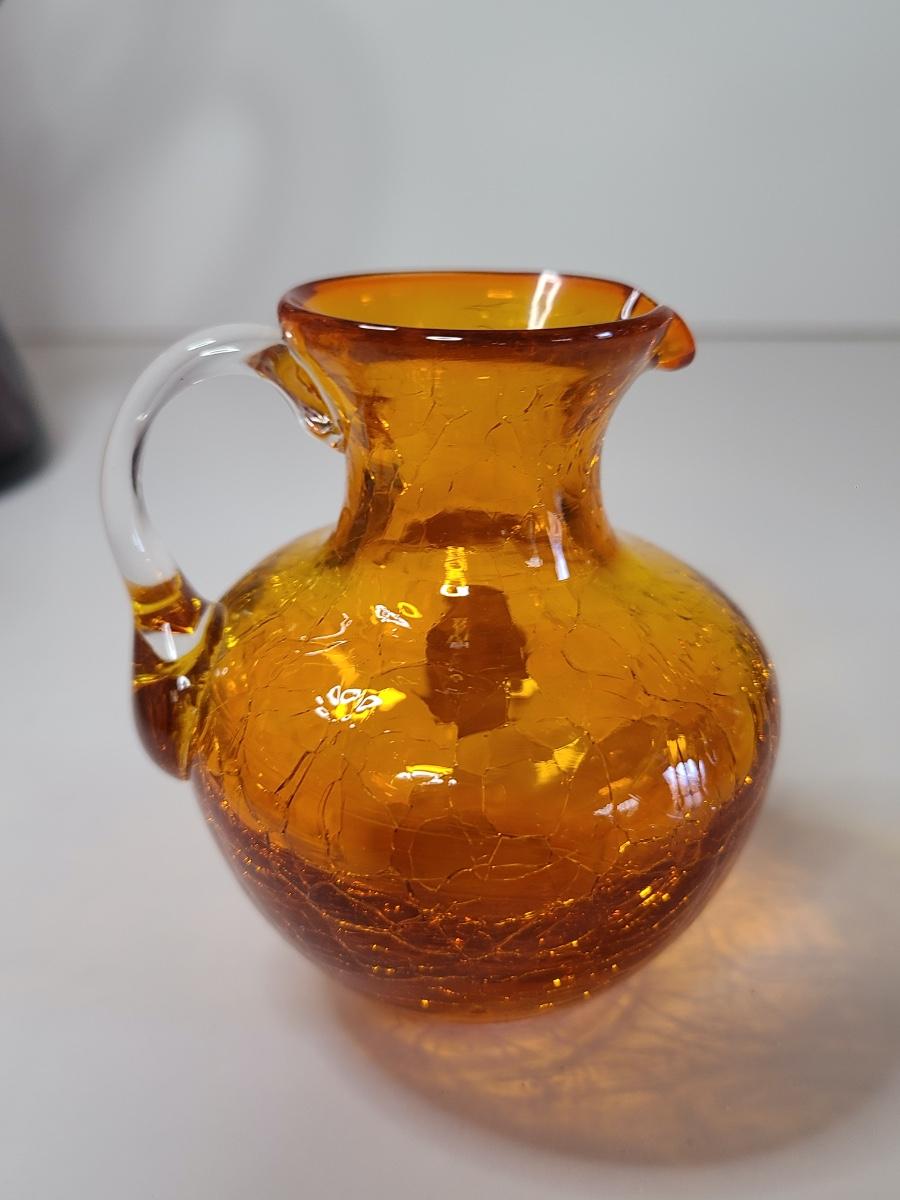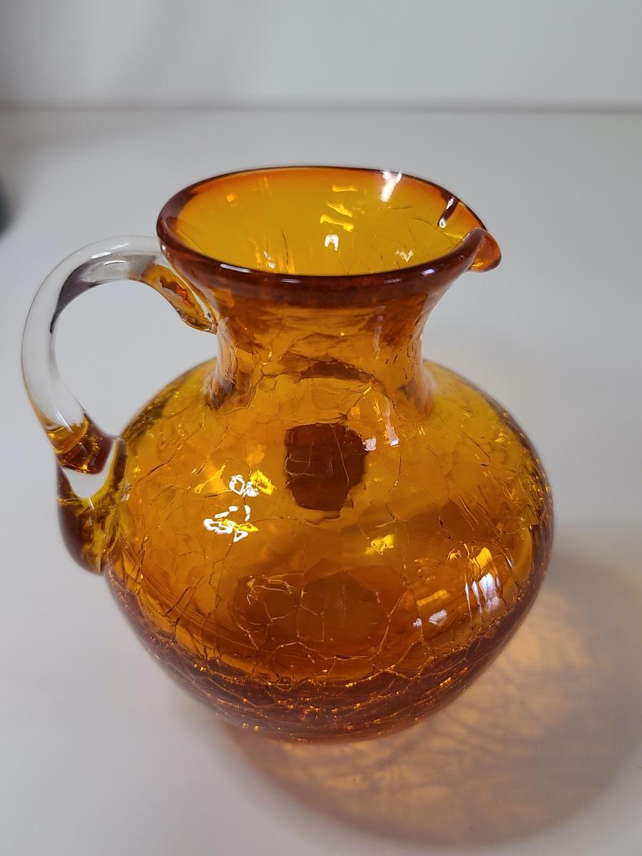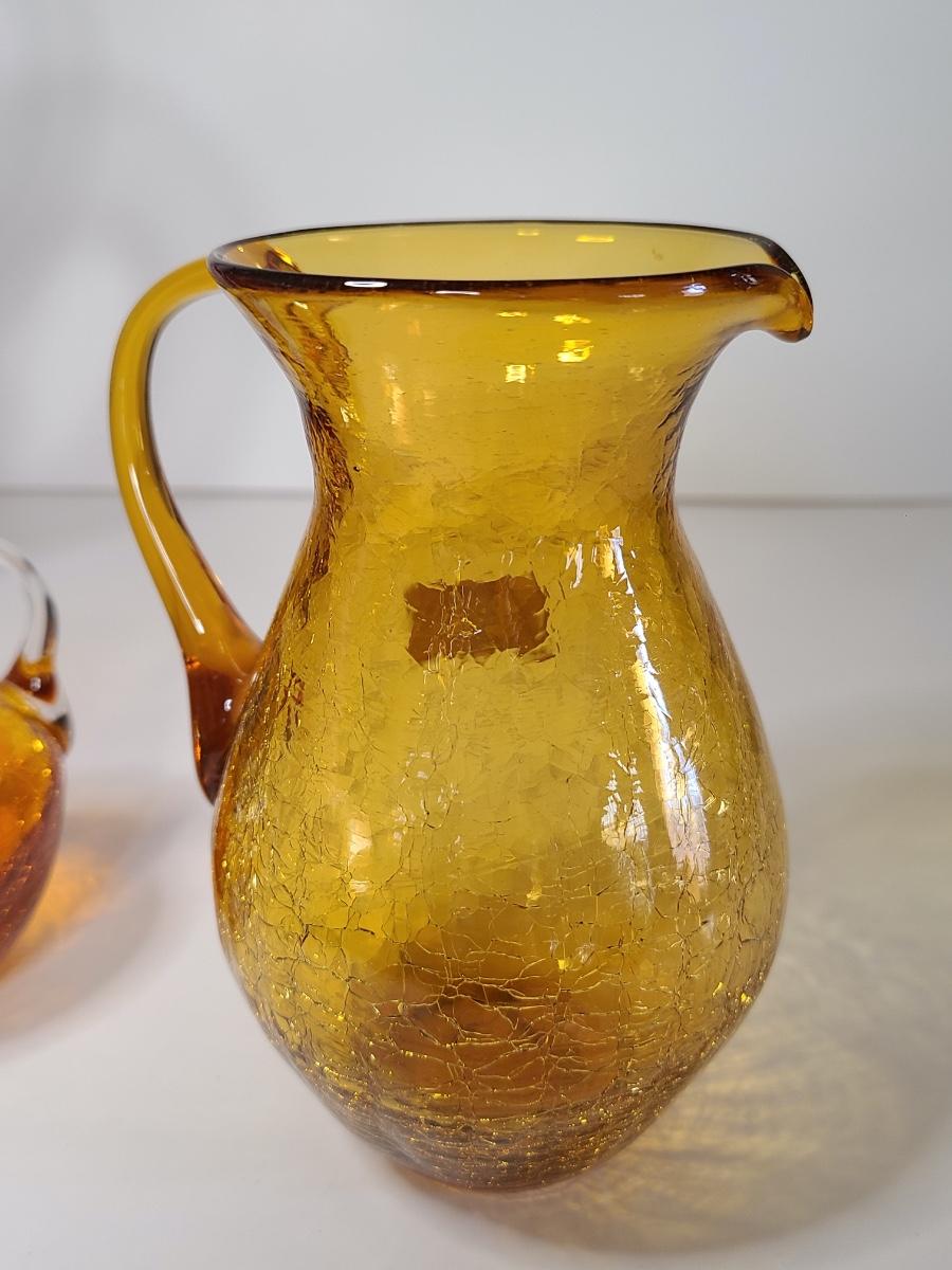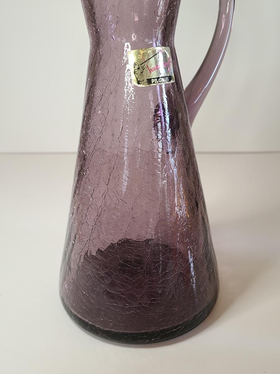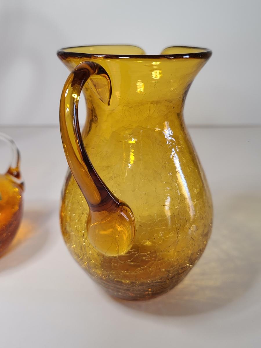 Lot 77: MCM/Vintaged Labeled Pilgrim Crackle Glass Pitcher and More