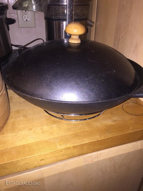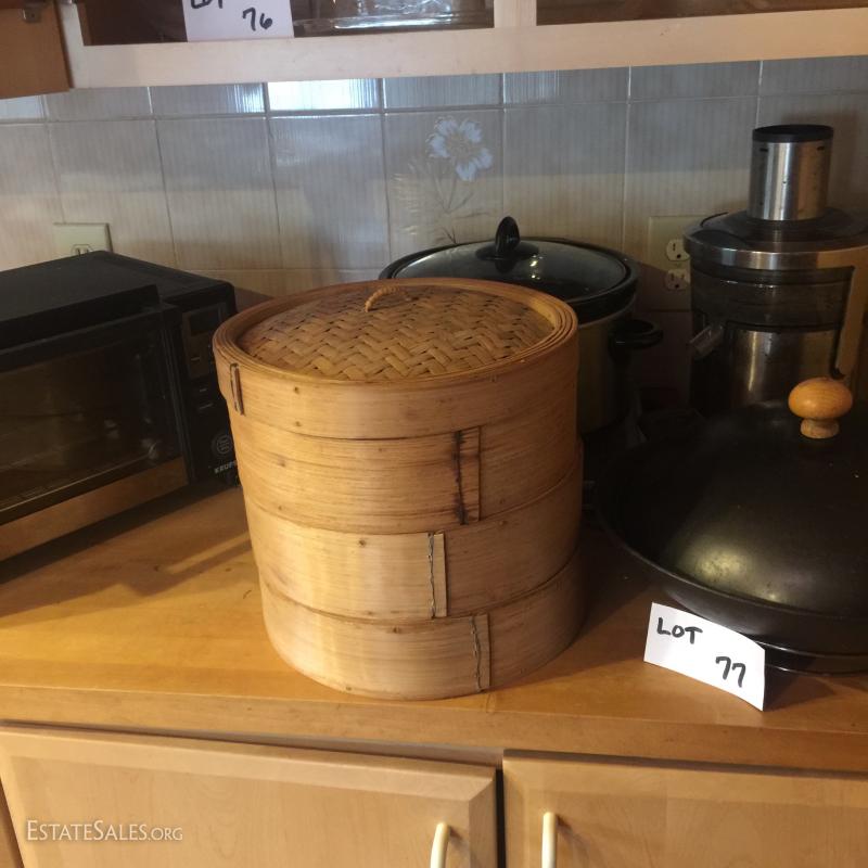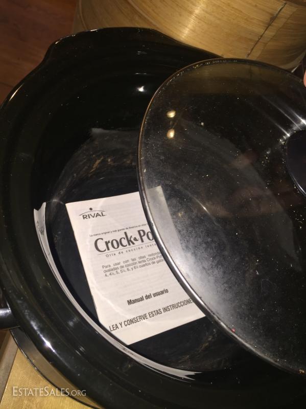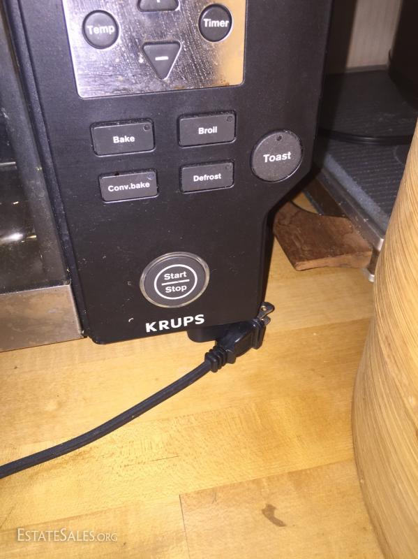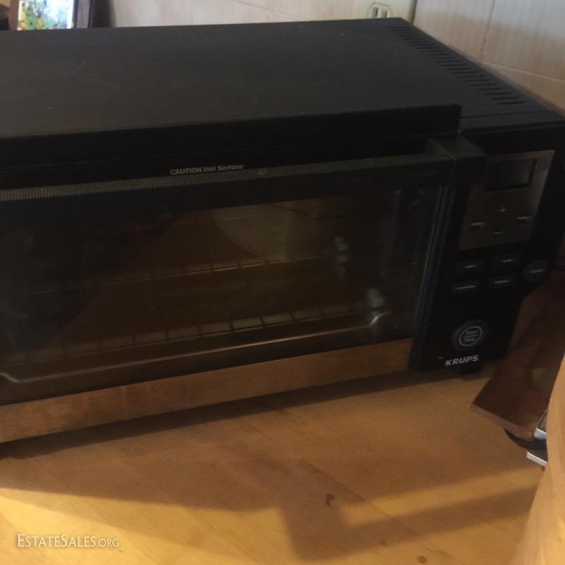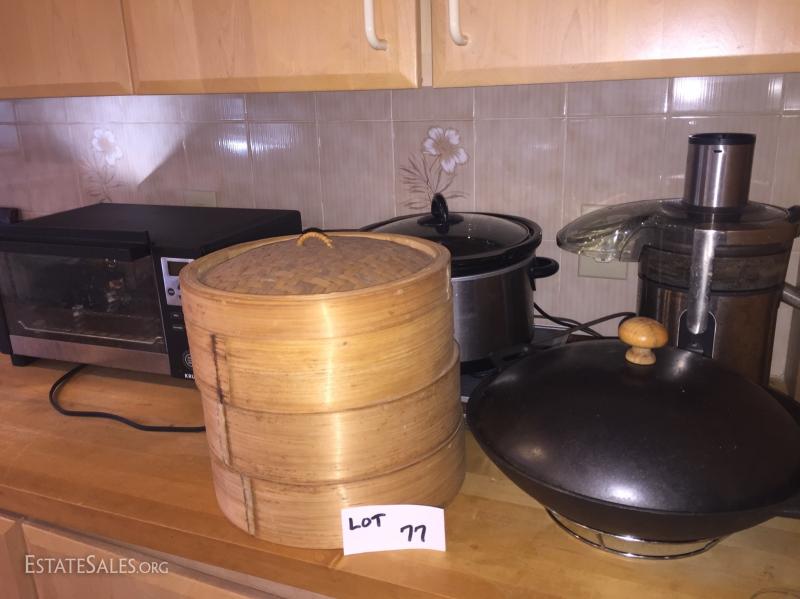 5+ Misc kitchen items include Krups toaster oven, steamer basket, Rival crock pot, wok, hot plate and juicer