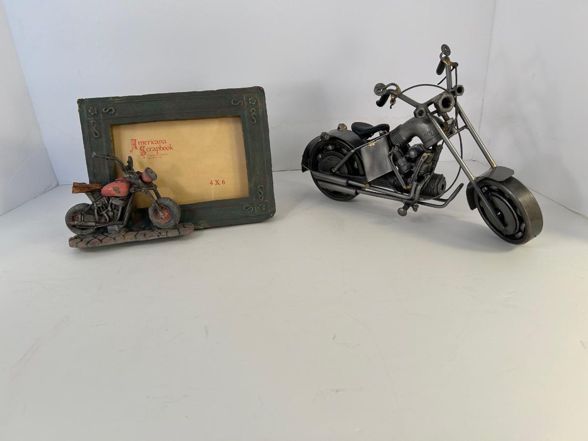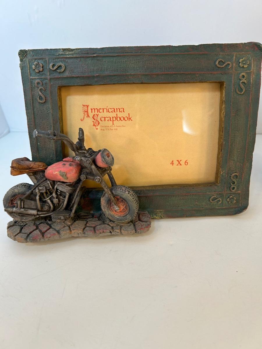 Includes 1 brand new Americana Scrapbook 4” X 6” frame & 1 metal motorcycle sculpture.