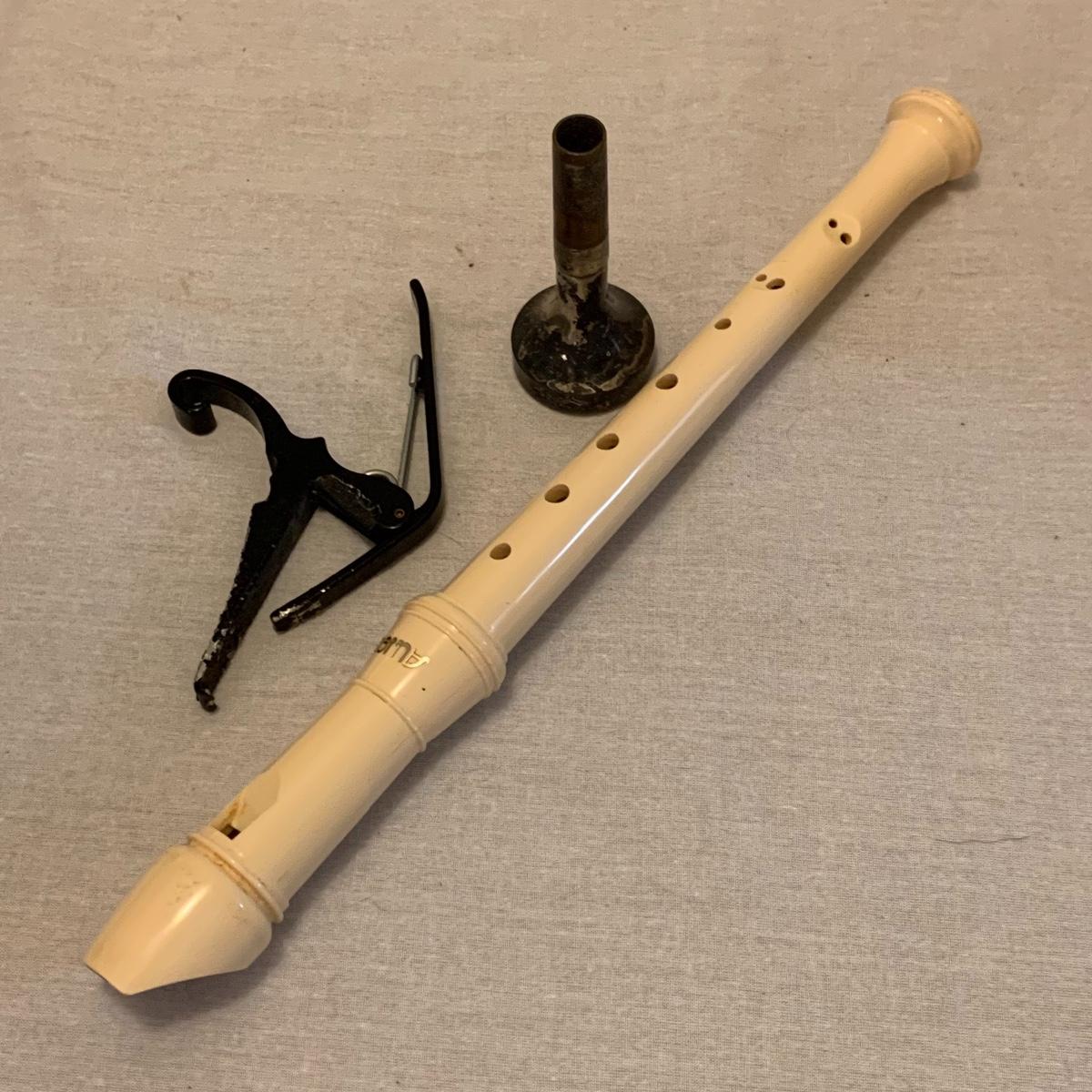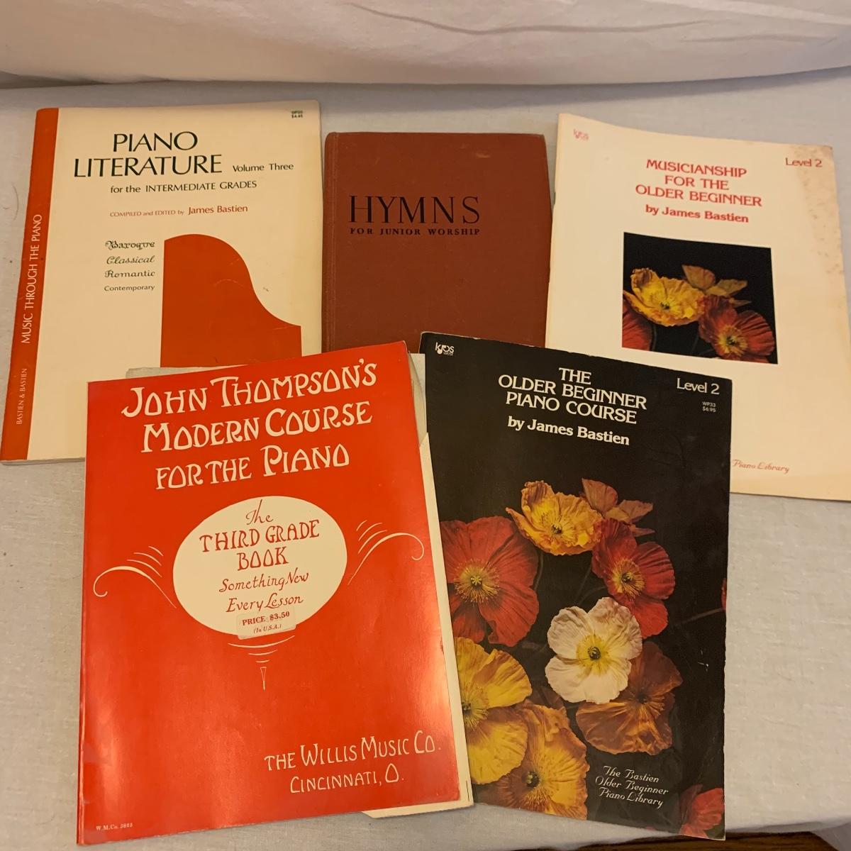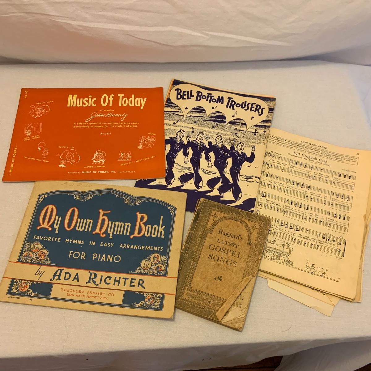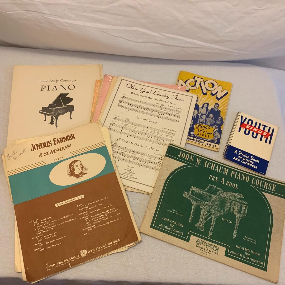This lot is for the music lover in your life! It consists of many music books and sheet music. There is music for ukeleles, dulcimers, pianos, and more. There is a lot of loose sheet music. Some books might be missing pages. Also included is a nice Hamilton music stand, some fender guitar strings, a Boss Delay pedal, an Ibanez Flanger (missing one knob), a capo, a recorder, a mouthpiece for a trumpet, and a handful of picks. Shipping available.