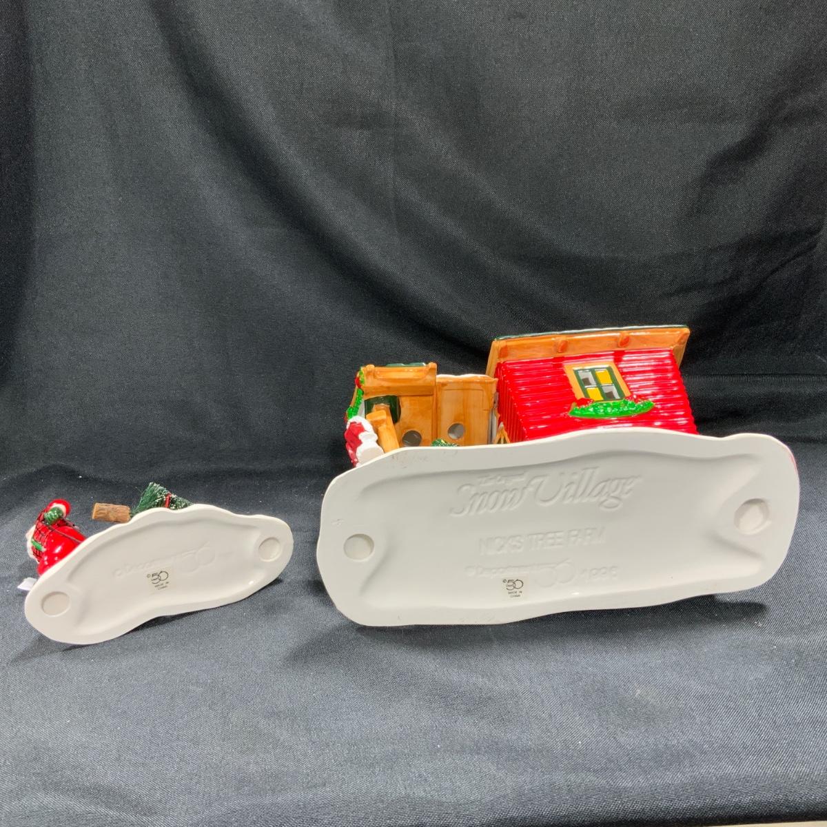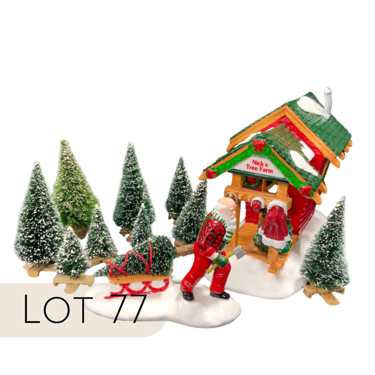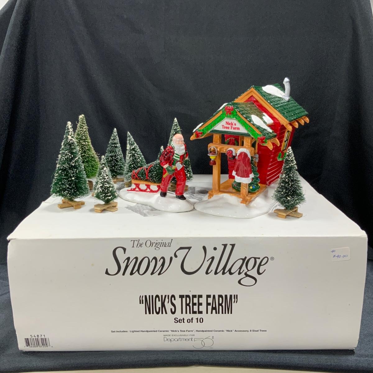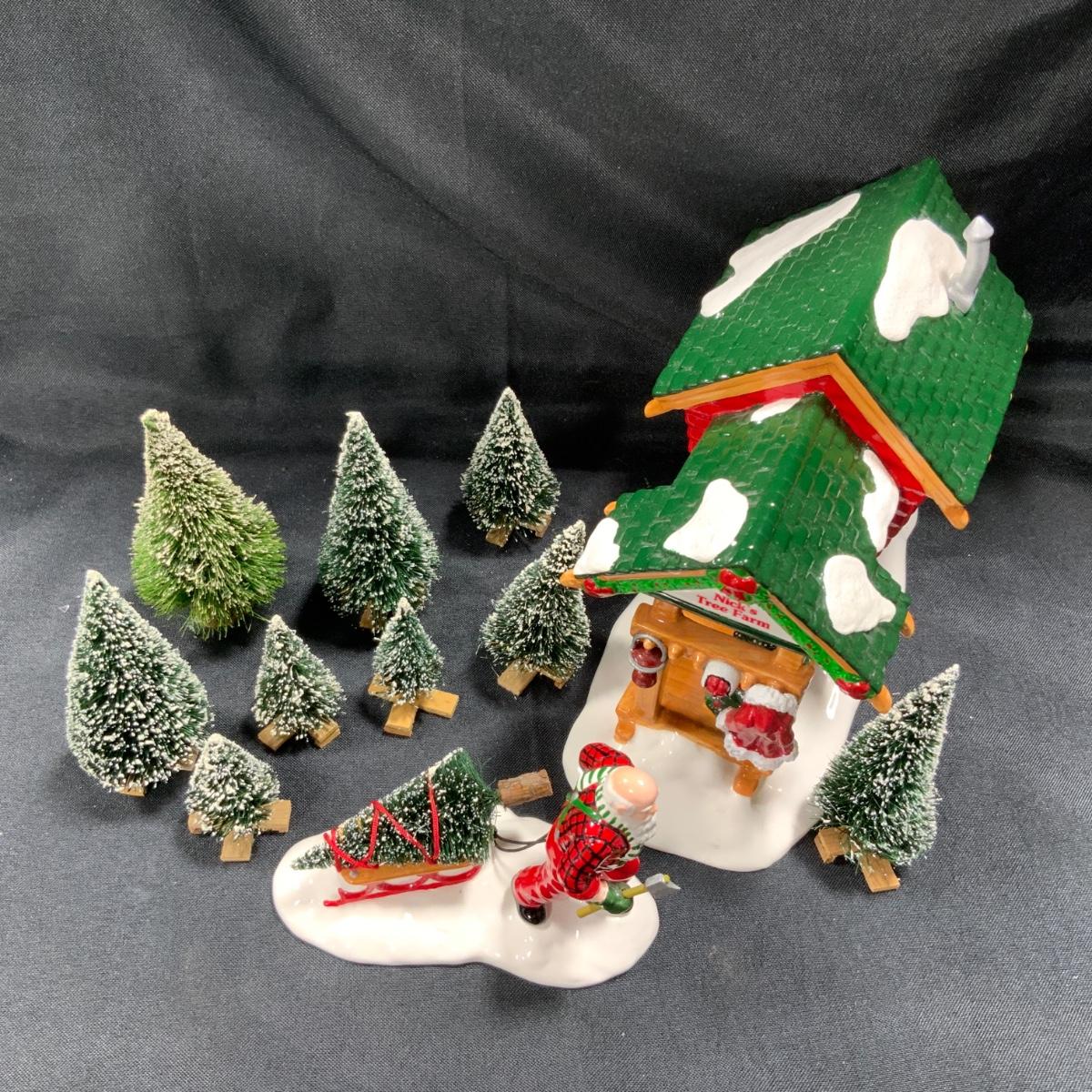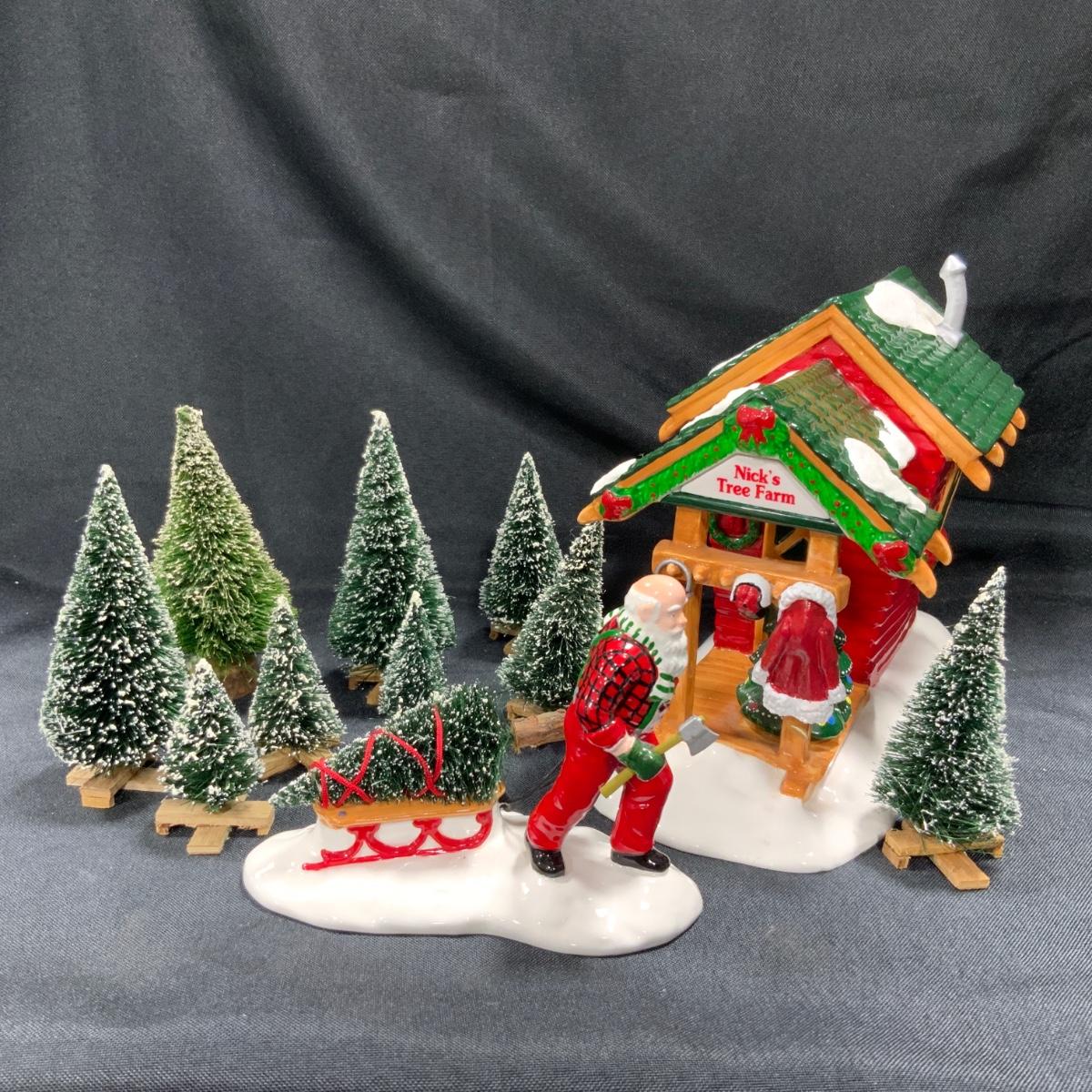 Department 56 Snow Village Nick’s Tree Farm set of 10 (plus 1 extra tree!). It wasn’t until I was in the middle of setting this set up for the third time that I realized it was SANTA. Wow. How embarrassing. Good thing no one reads these. Please see photos for details and condition. ::: Shipping is available on this lot. If you require shipping you must let us know at the close of the auction. We will coordinate with you after the item has been won. Shipping fees will include insurance up to or exceeding the value of all items being mailed. If you have any questions regarding this lot please contact the auctioneer either via this website, by direct email or by phone. PICK UP TIMES and other important information can be found in the TERMS and DESCRIPTION of the auction. Please take a look for pertinent information. Thanks! Any condition statement is given as a courtesy to a client, is an opinion, and should not be treated as a statement of fact. Reference to condition written, oral or within a condition report shall not be regarded as a full account of condition and may not include all defects, alterations, or restorations. Absence of a condition report does not imply a lot is flawless or lacking imperfections or damage. Katherine’s Auction & Appraisal Service shall have no responsibility for any error or omission. Returns shall not be accepted on the basis of condition.