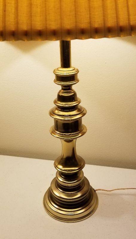Late 1970's pair of matching brass table lamps - both work. Good vintage condition. Each stands 34" tall.