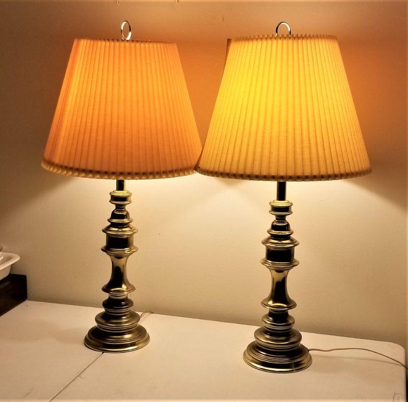 Lot #77  Pair Classic Brass Table Lamps - working condition.
