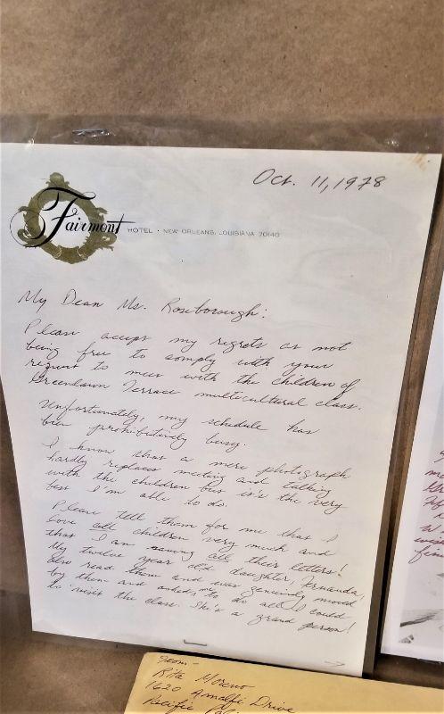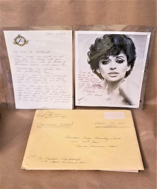 Autographed photo reads "To all the children of the Greenlawn Terrace Fifth Grade - with my very best wishes and hope of a fine future for all - Rita Moreno". A 2 page handwritten letter accompanies the photo expressing her regret at being unable to meet with the kids in person. Written in New Orleans on Fairmont stationary - dated 11 Oct 1978. Rita Moreno is still living and is one of the few entertainers to have won ALL FOUR of the major entertainment awards - am Emmy, as Oscar, a Grammy, and a Tony. This lot is a true collectible.