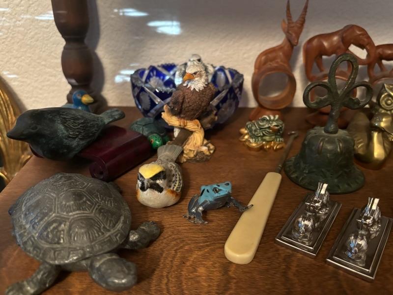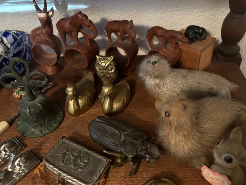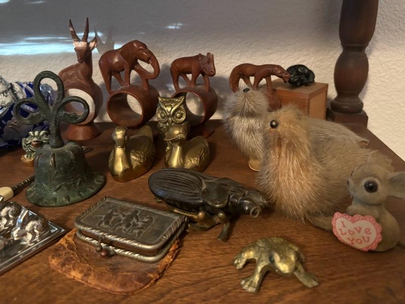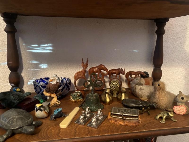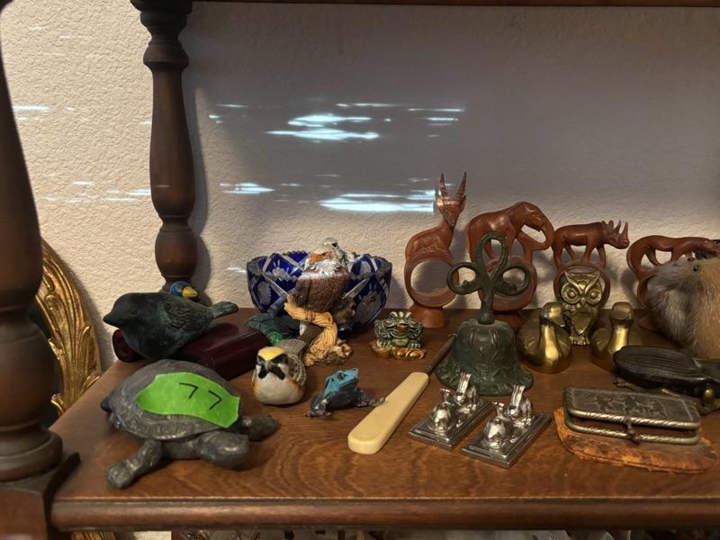 Lot 77 - Shelf of Animals, Wooden, Bronze, Fur