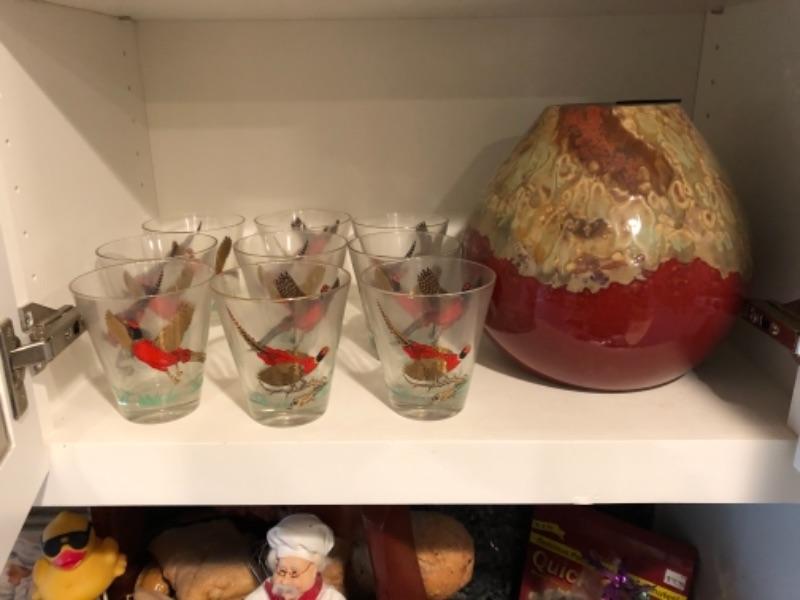 Lot 77. Stemware, pheasant hi-ball glasses, large vase, etc.--WAS $45““NOW $22.50