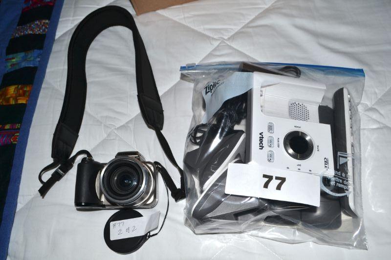LOT 77    V TECH CORD LESS PHONE AND OLYMPUS CAMERA