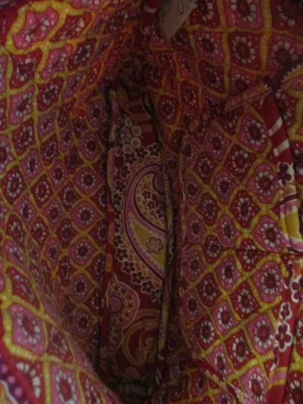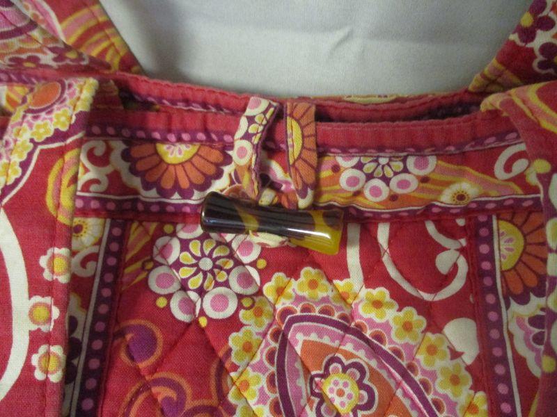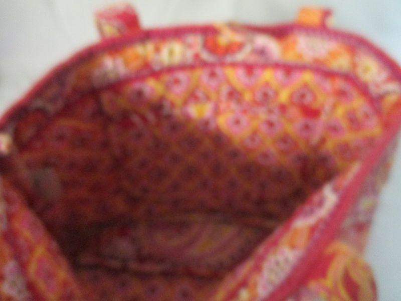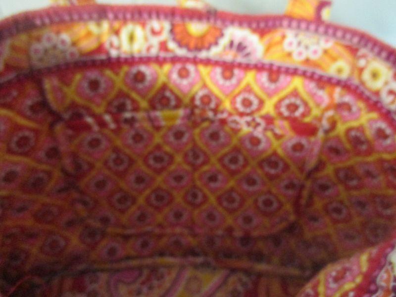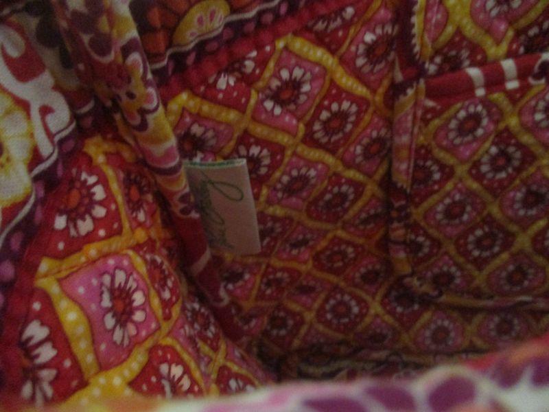 This one does have the interior tag identifying it as Vera Bradley. The only issue that I saw was very faint "dirt" on the handle. Most likely could be quickly cleaned with a damp washrag.