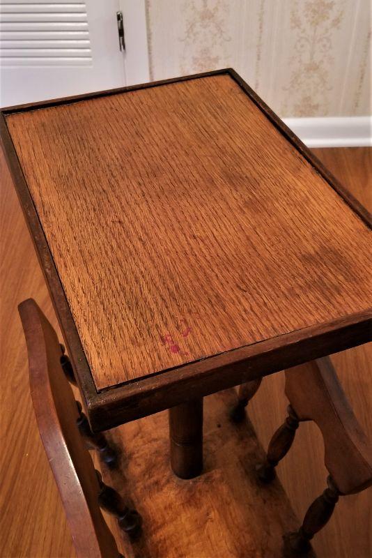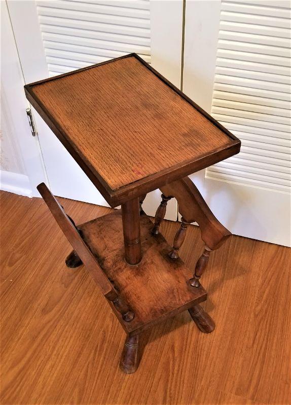 70's side table/magazine stand - solid wood - stamped OLD COLONY "Sandel". Pine. Measures 15.5" x 10.75", 25" tall. Good vintage condition.