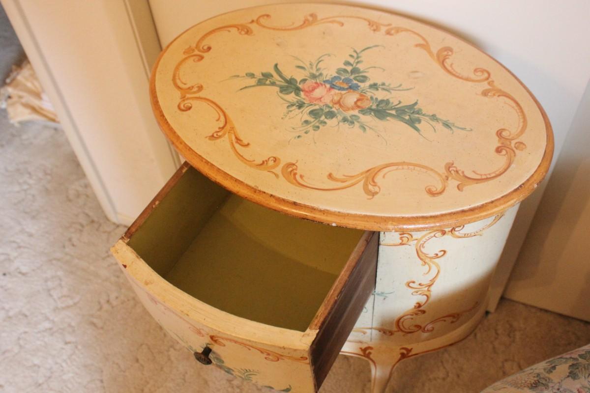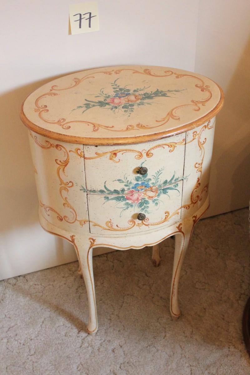 Lot 77 White Floral Side Table w/ 2 Drawers