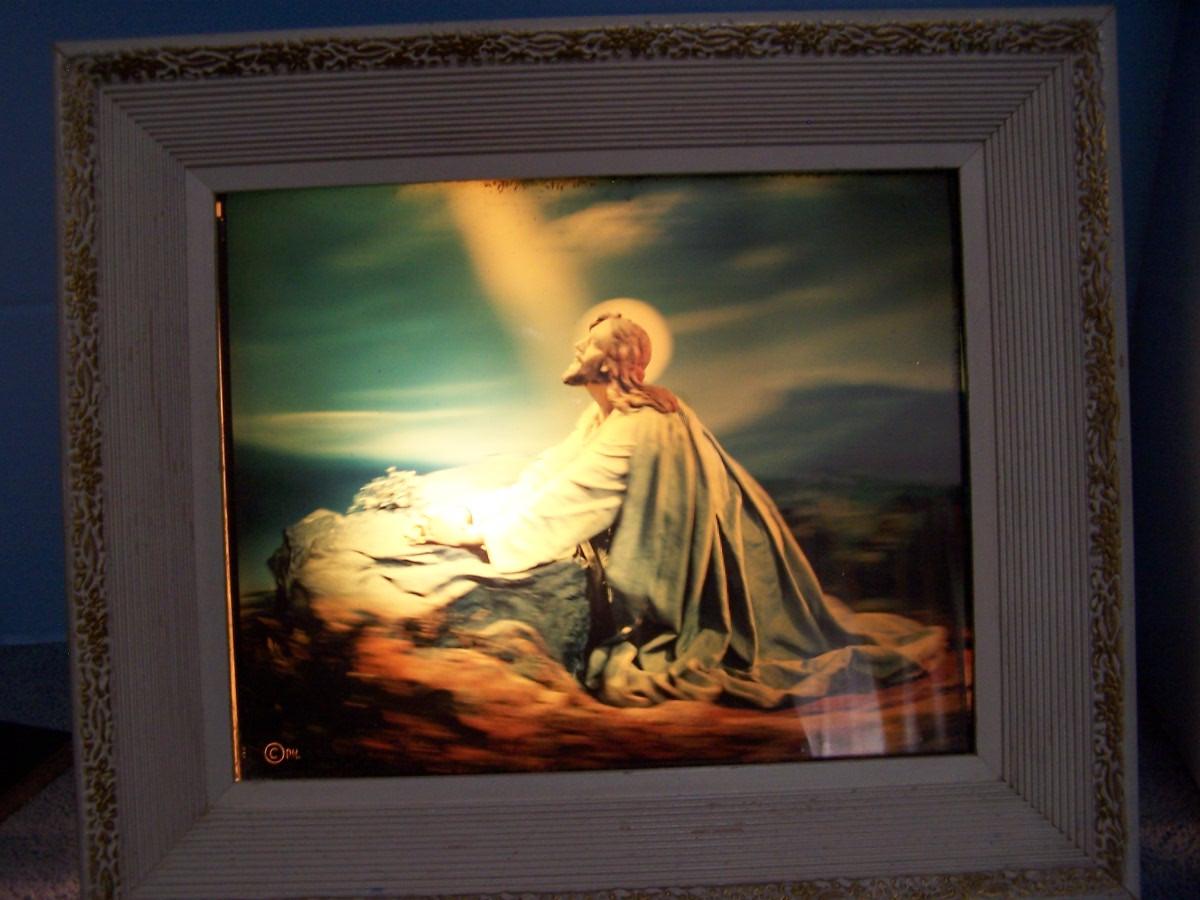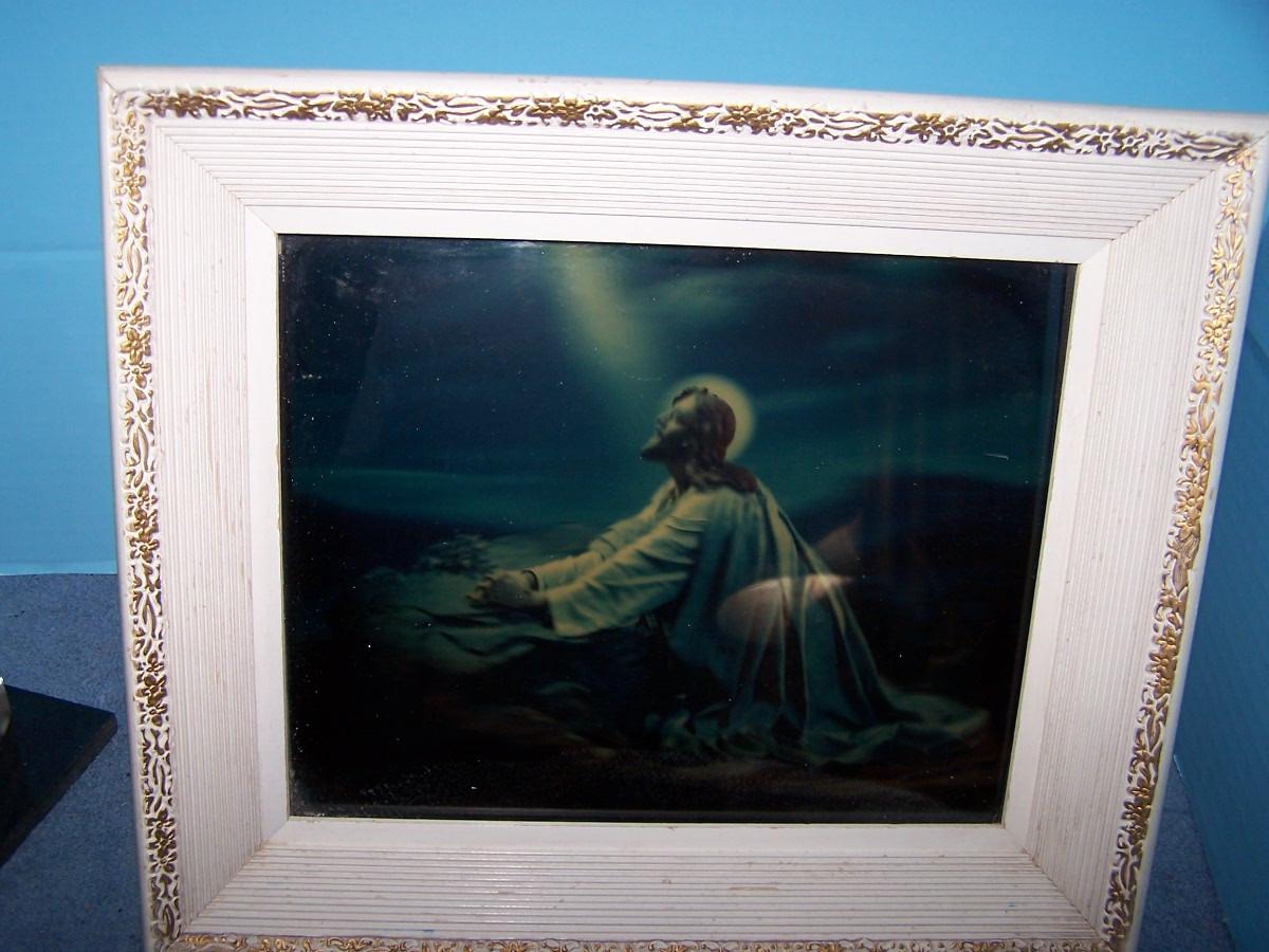 THIS IS A WONDERFUL VINTAGE MID CENTURY LIGHTED JESUS PICTURE!!!FRAME IS 11 3/4'' X 13 1/2''.. WORKS! LIGHT WEAR..