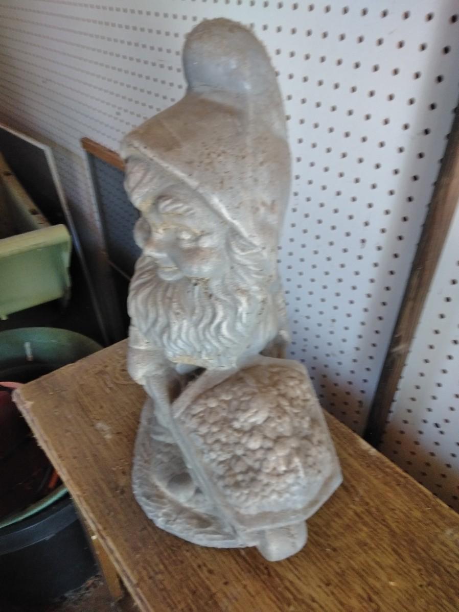 APPROX. 20" CEMENT GNOME WITH A GOLD / MINING CART