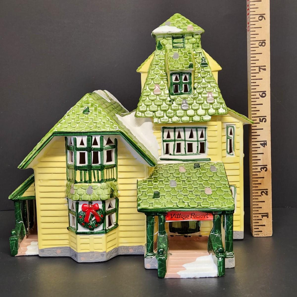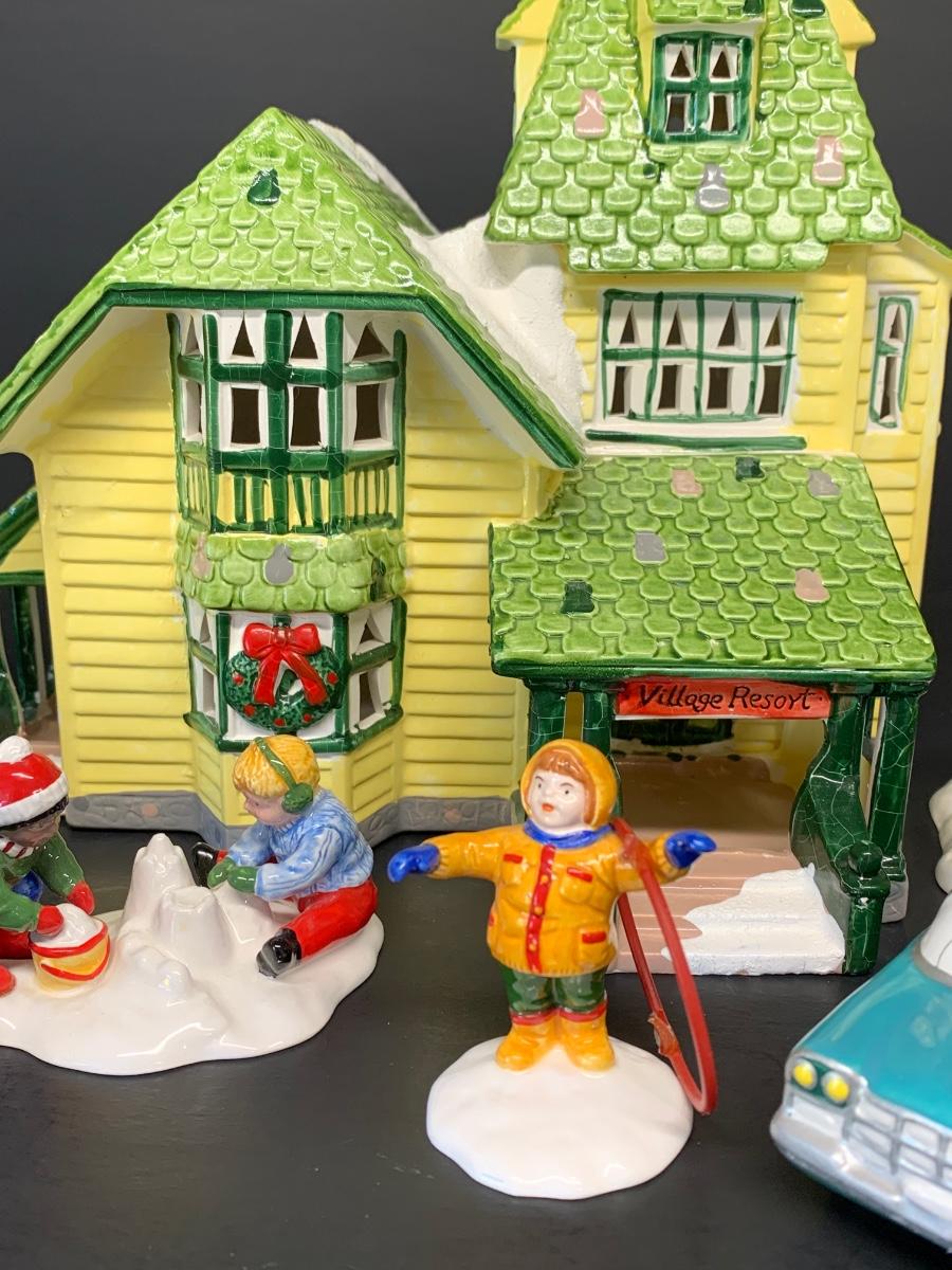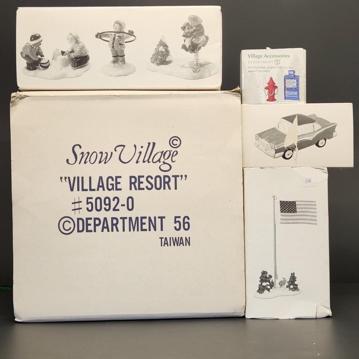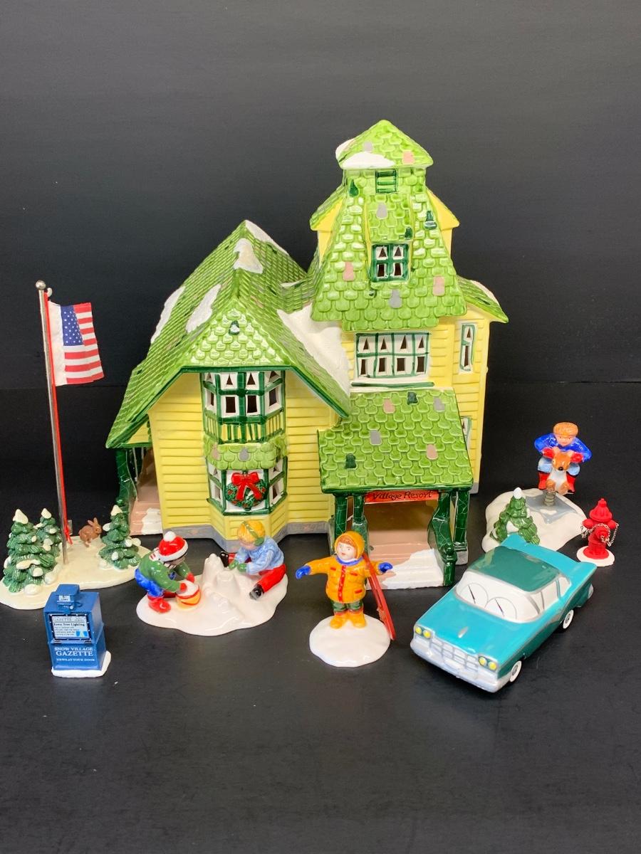 LOT 22RP: Dept. 56: Vintage Village Resort along w/Frosty Playtime, Flag Pole & More