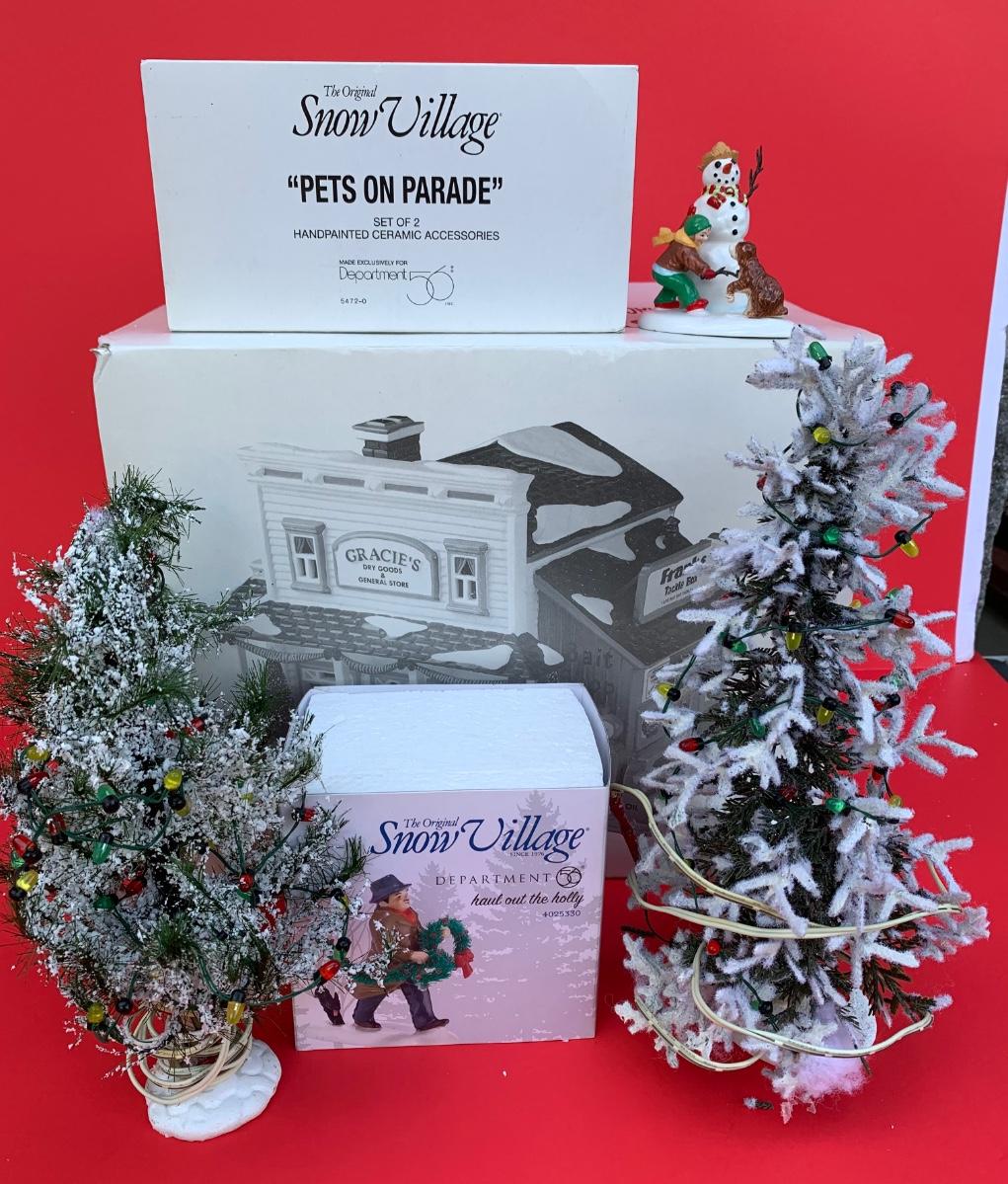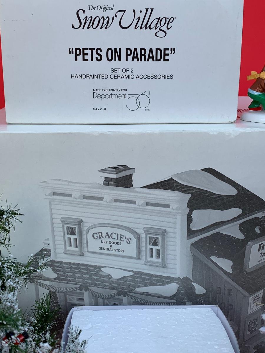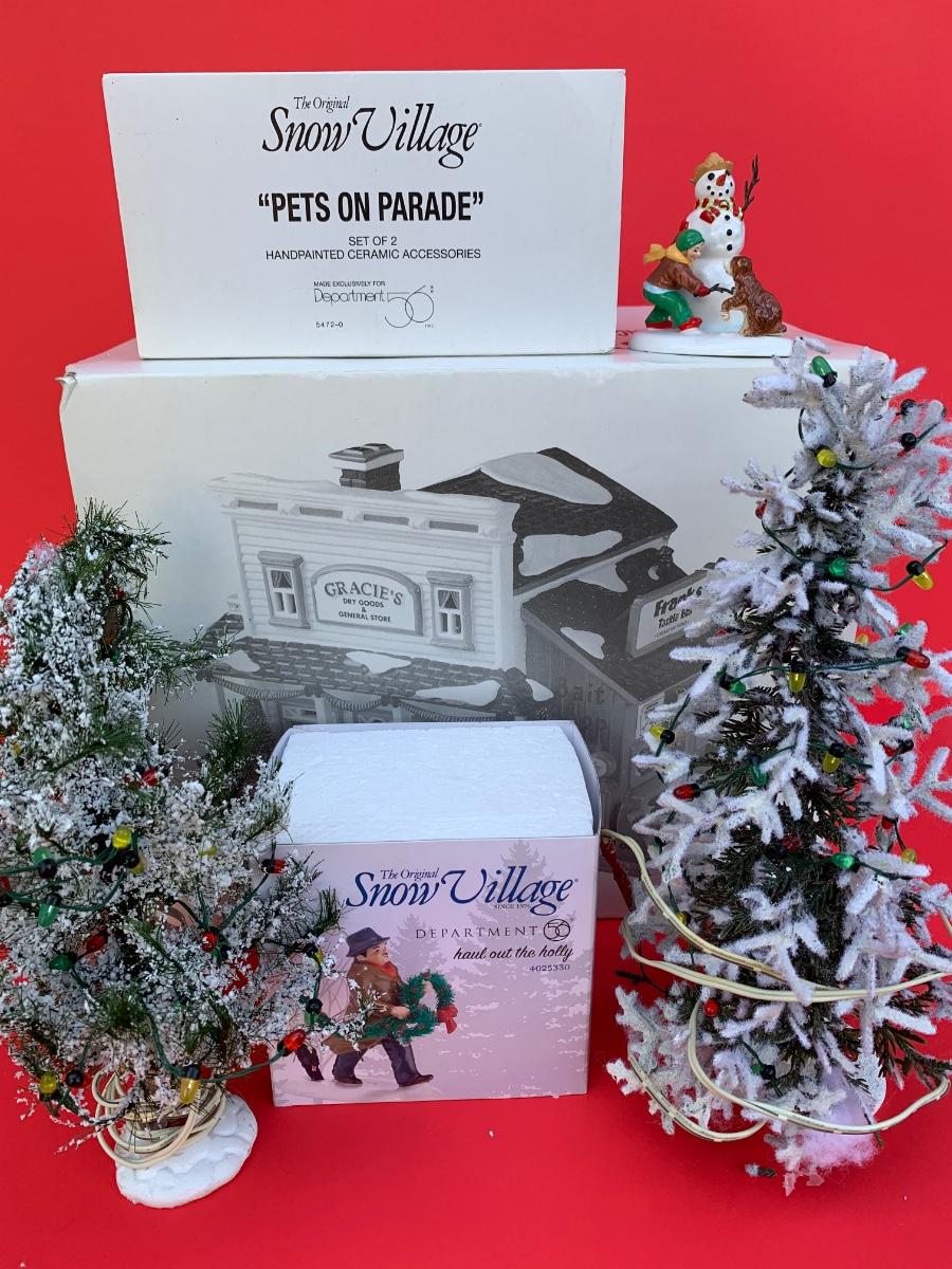 LOT 27R: Dept. 56 Collectibles: Gracie's Dry Goods & General Store, Pets on Parade, Bring Out the Holly & More