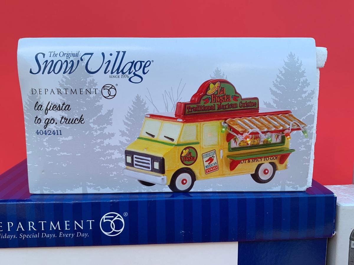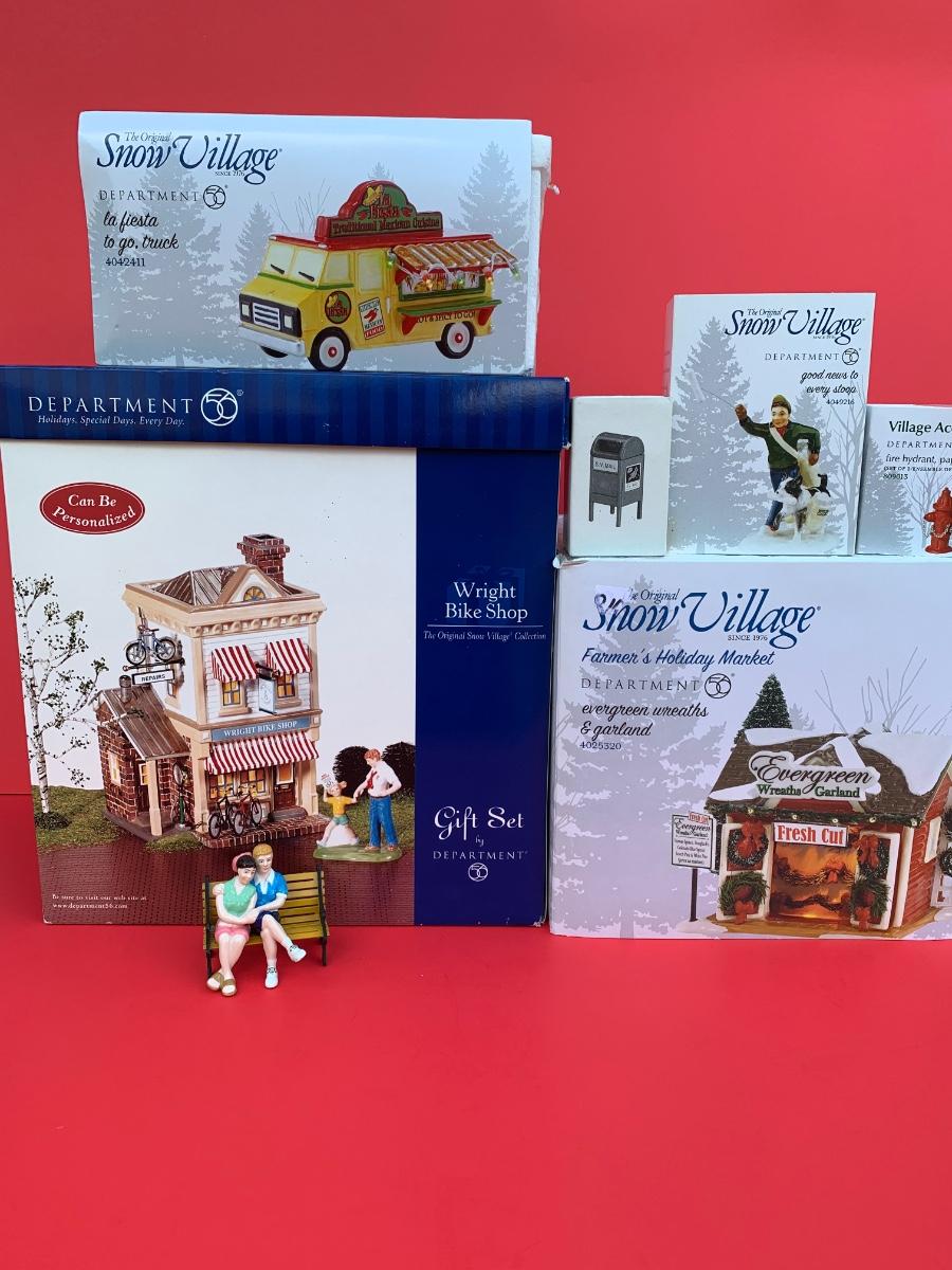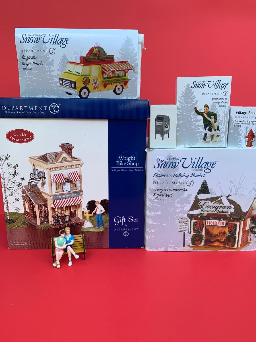 LOT 30R: Dept 56: Wright Bike Shop, Farmer's Holiday Market, La Fiesta To Go Truck & More