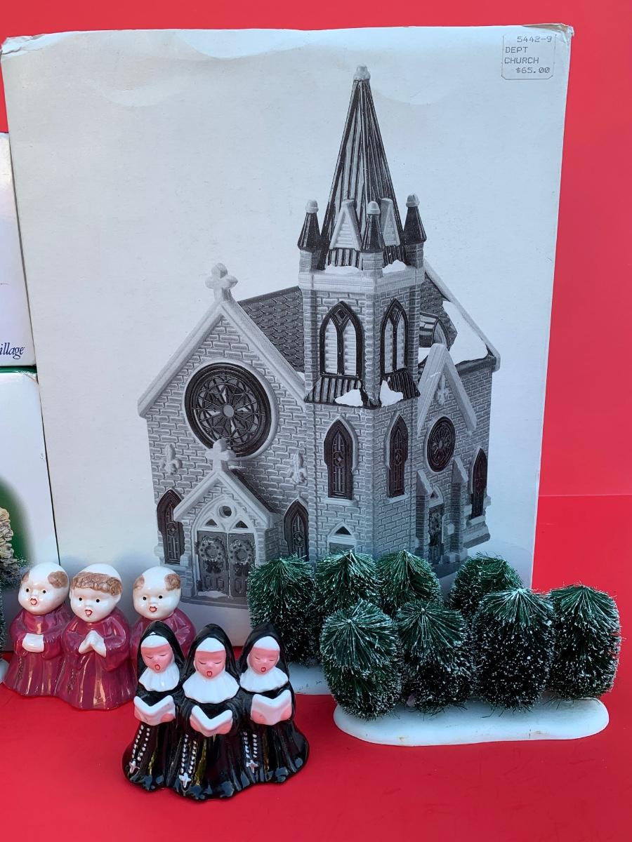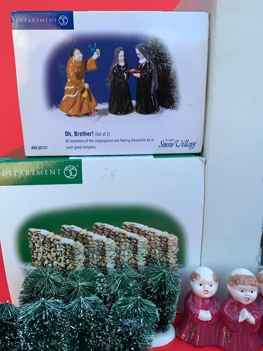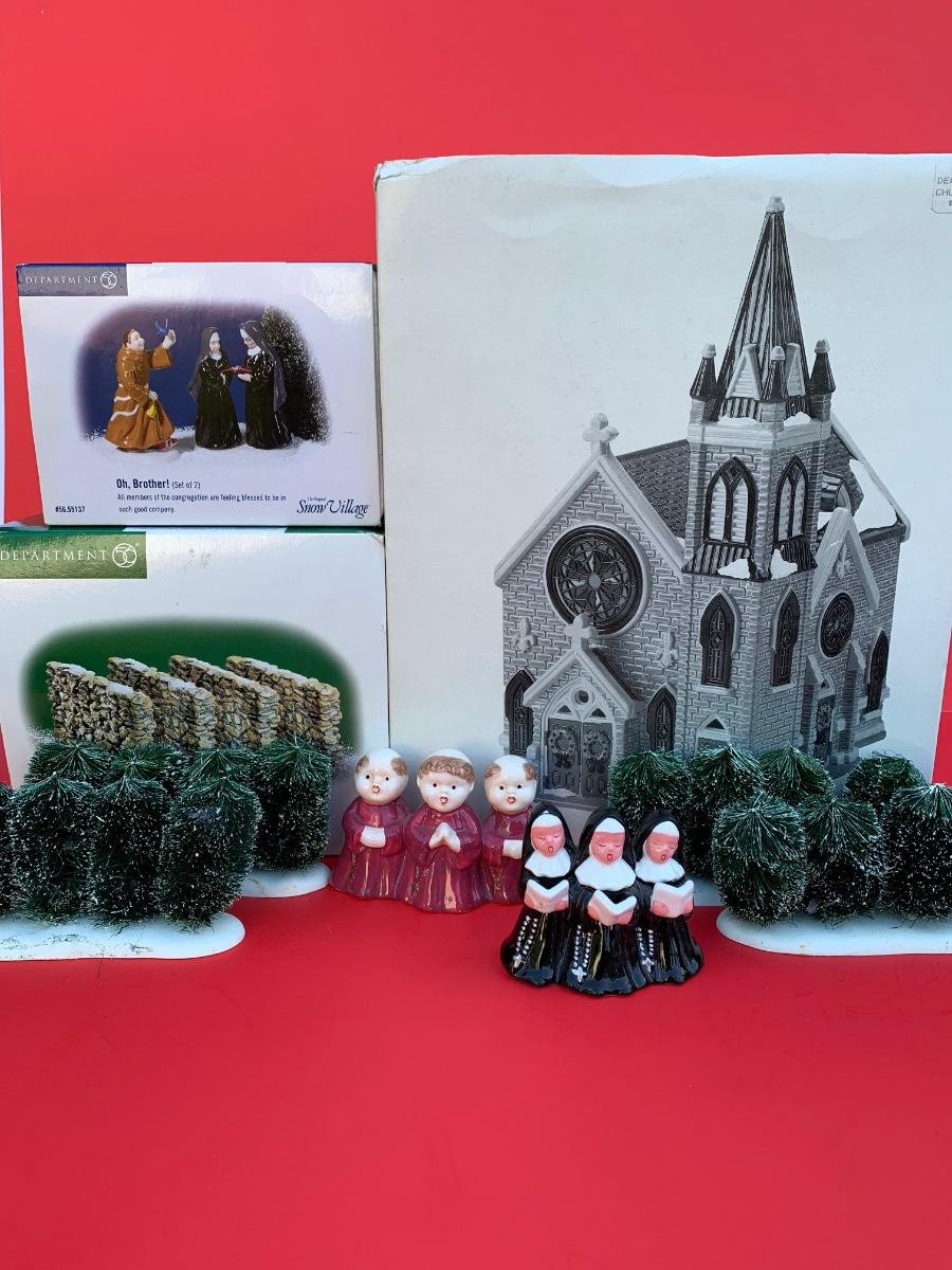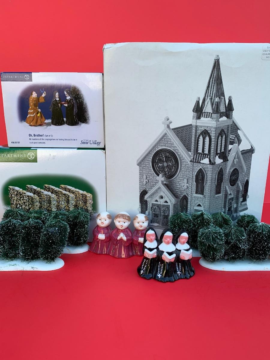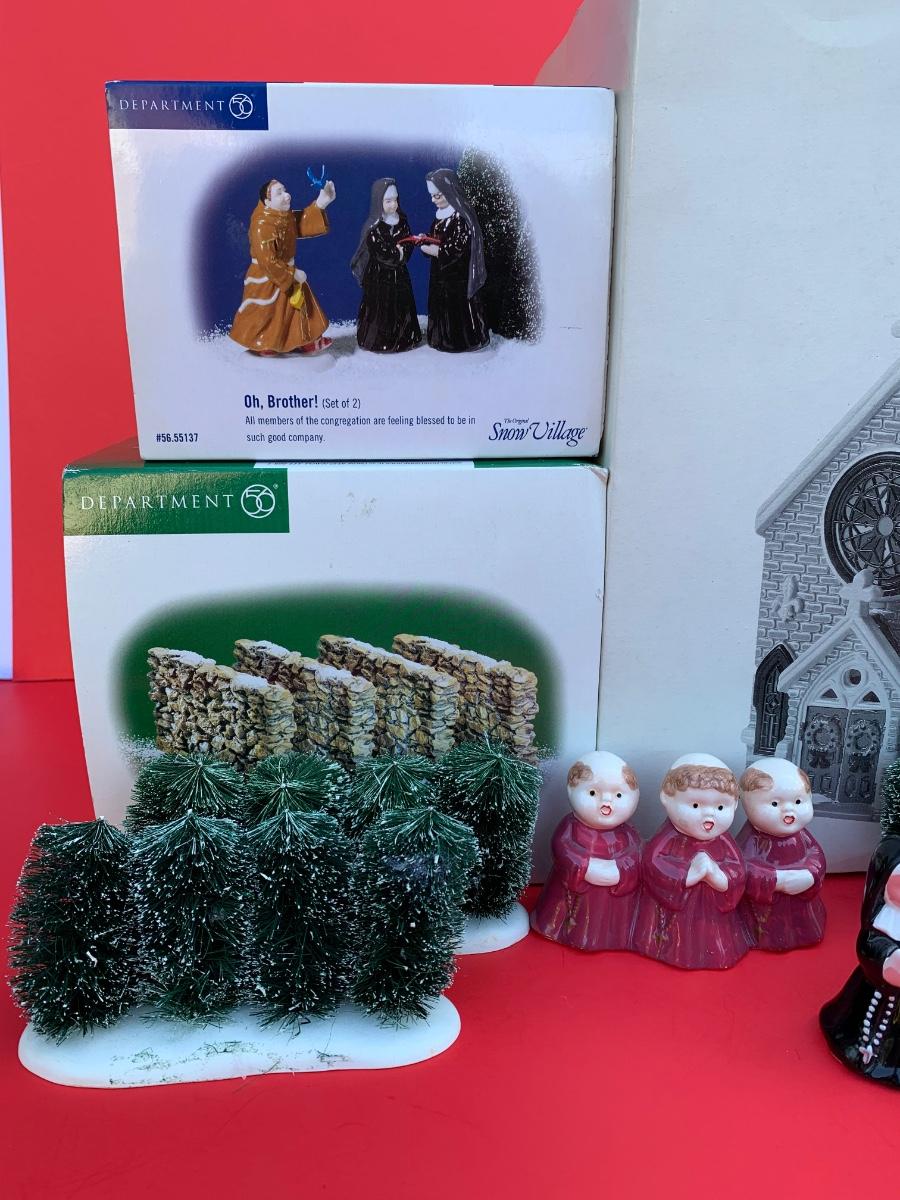LOT  32R: Dept 56 Mount Olivet Church, Oh Brother, Shrubbery, Stone Wall & More