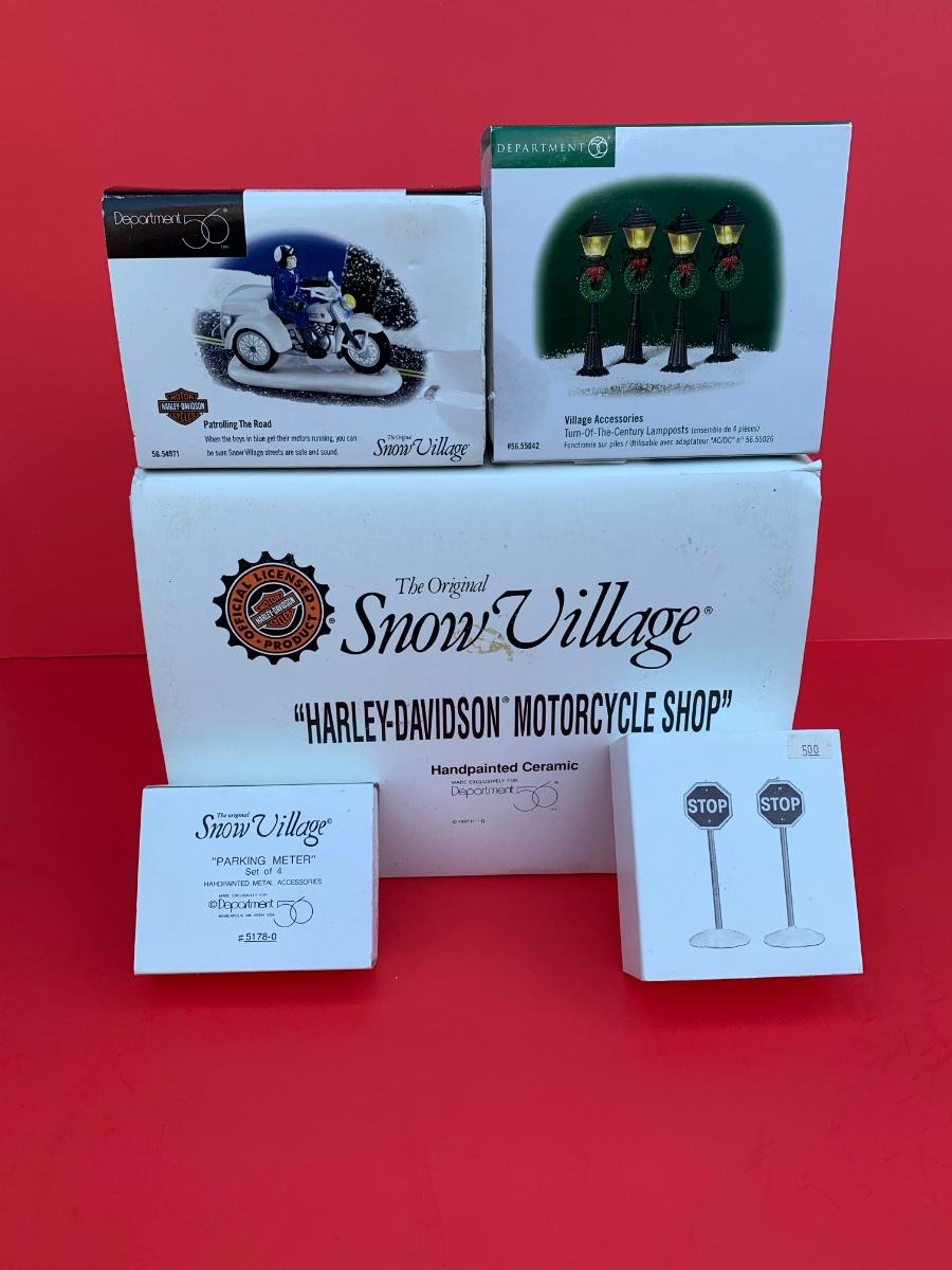 LOT: 33R Dept. 56 Harley Davidson Motor Cycle Shop & More