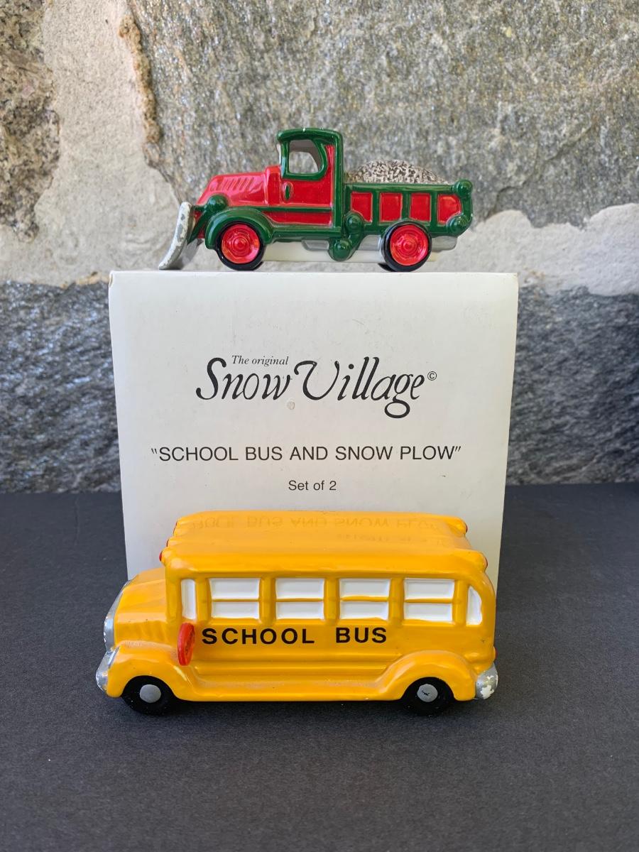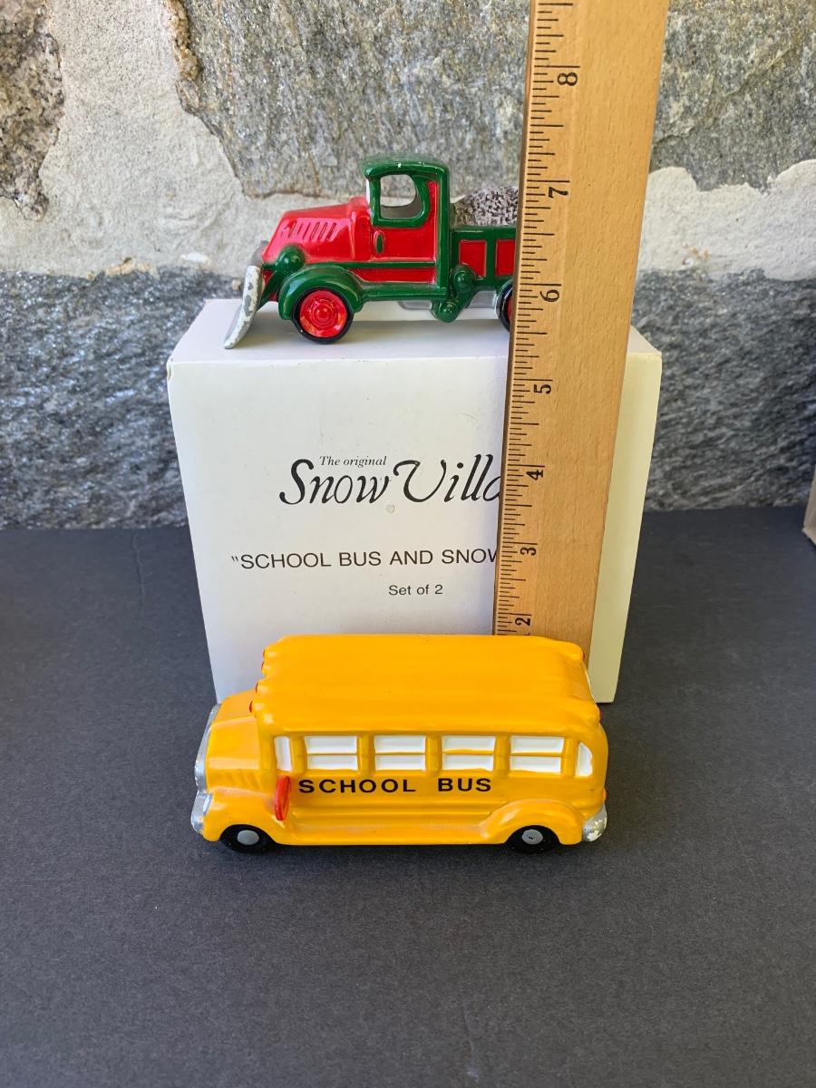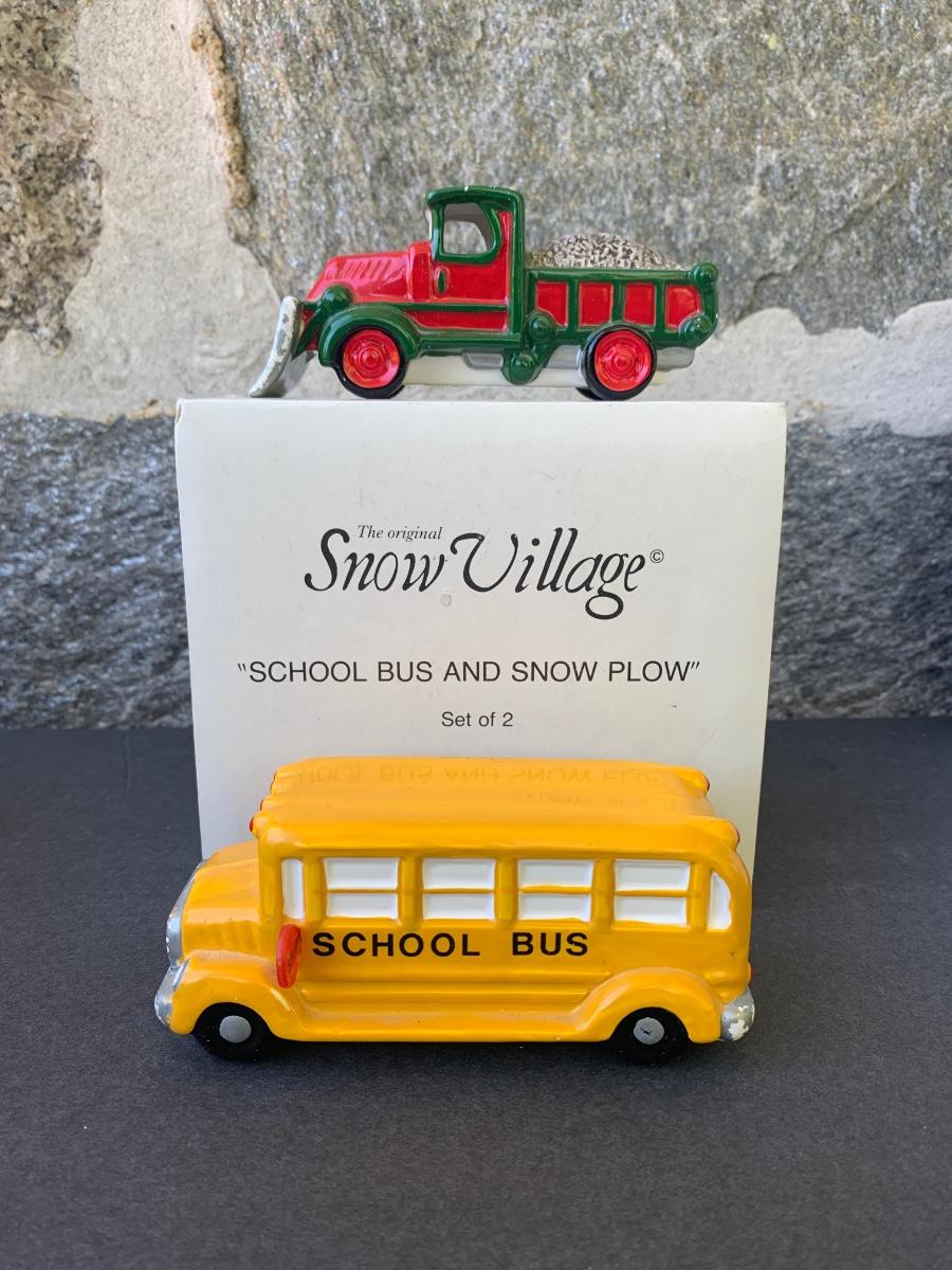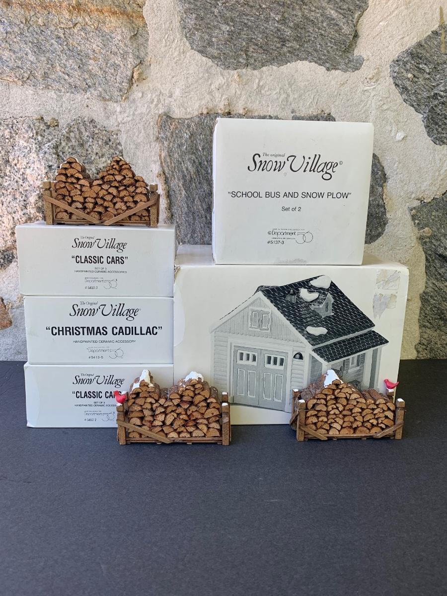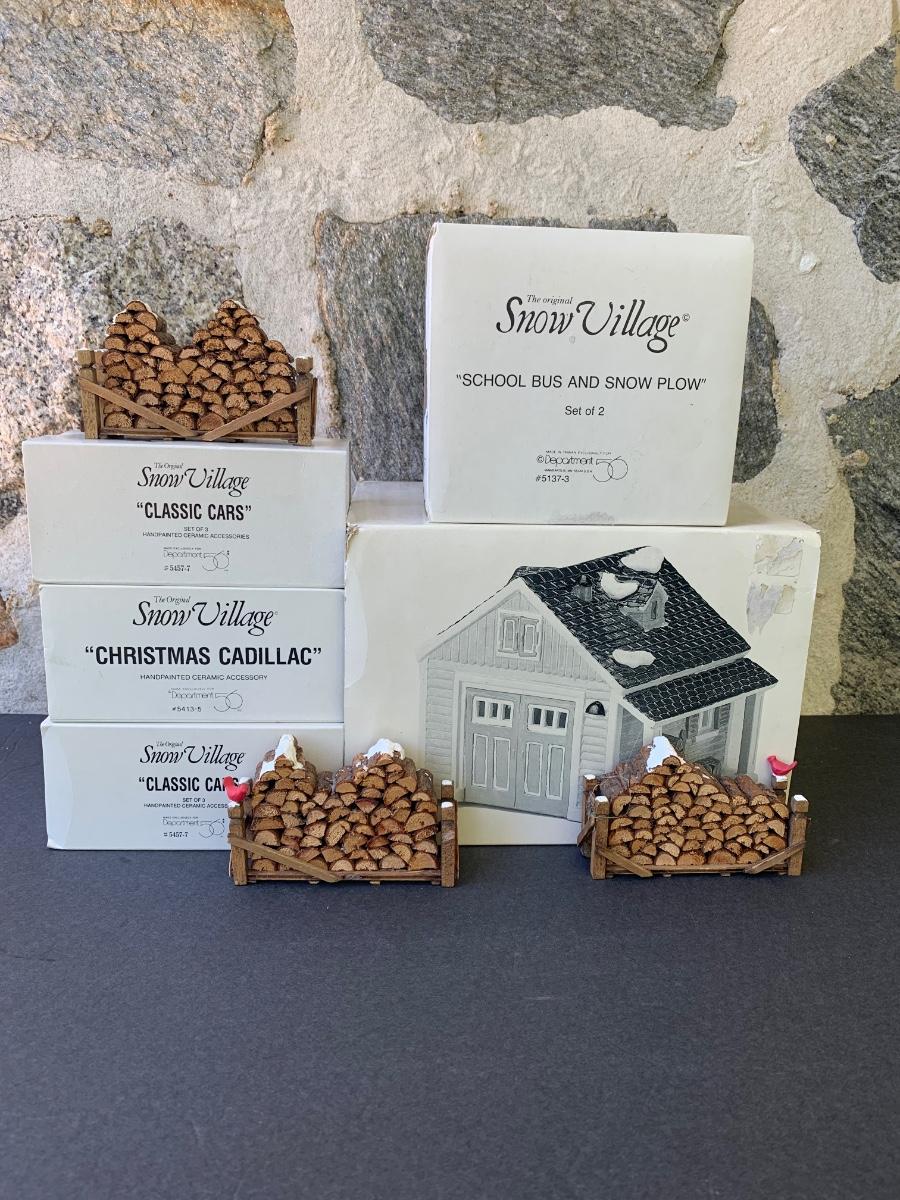 LOT 38R: Dept 56 Single Car Garage,  School Bus & Plow, Classic Cars & More
