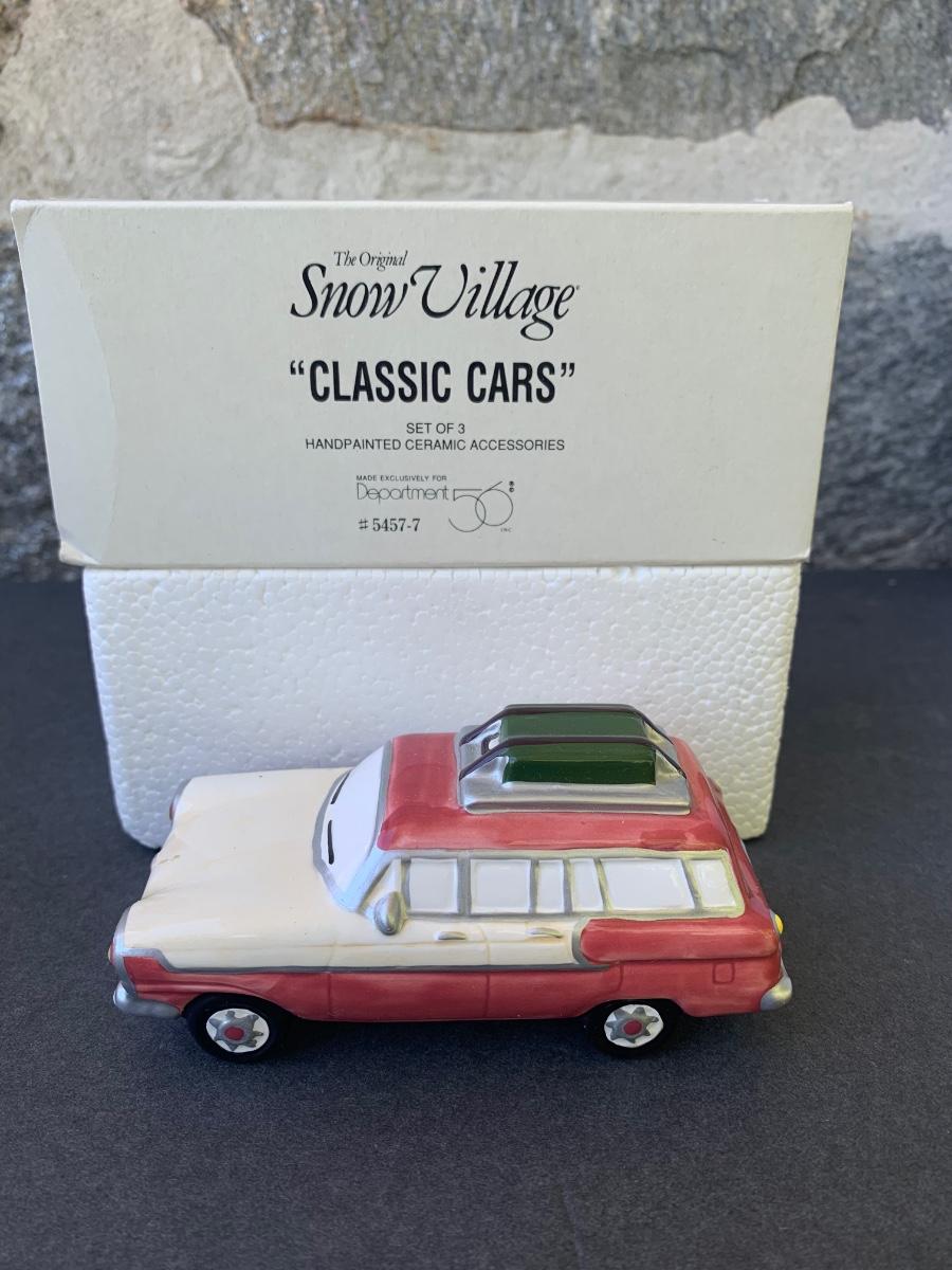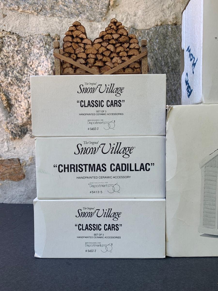 LOT 38R: Dept 56 Single Car Garage, School Bus & Plow, Classic Cars & More