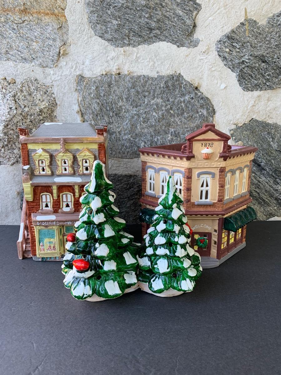 LOT 45R: Vintage Dept. 56 Bakery, Grocery  & Trees