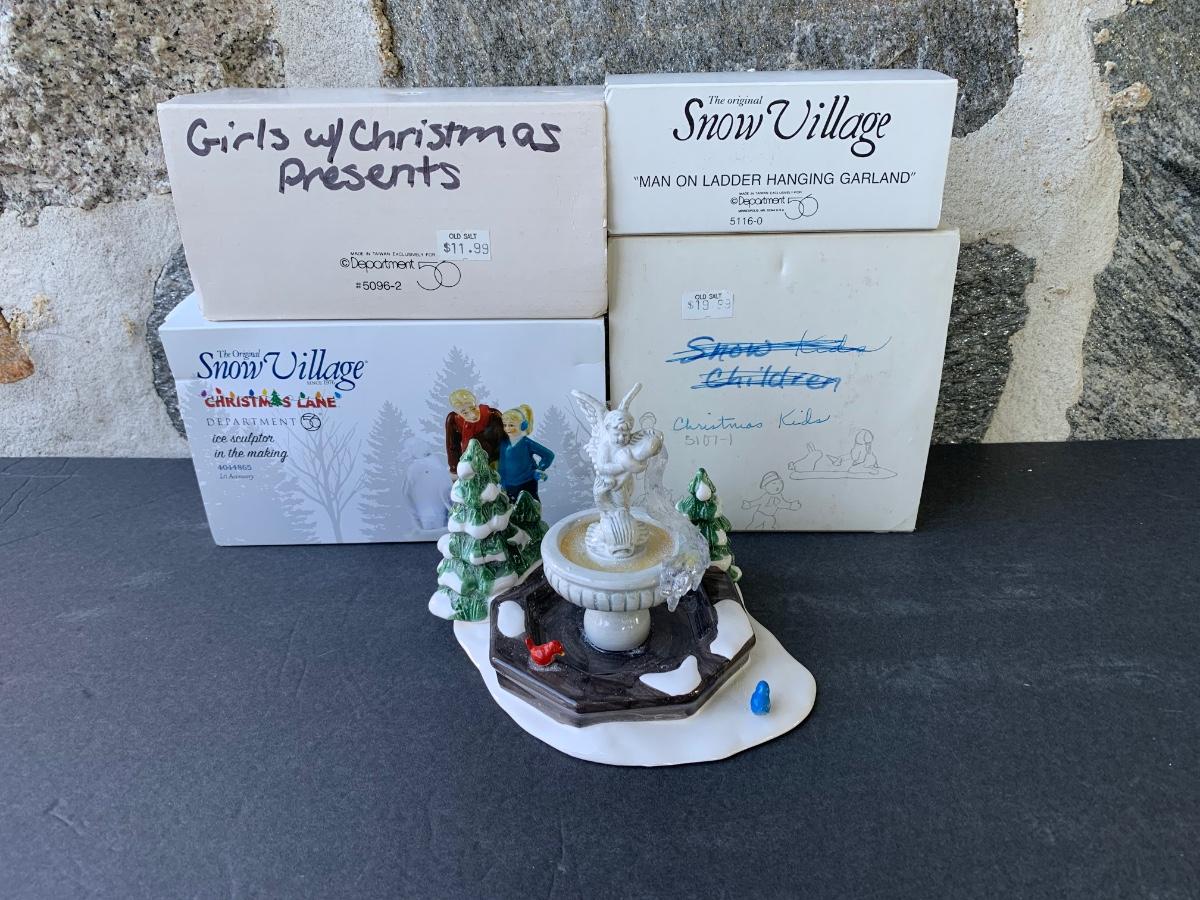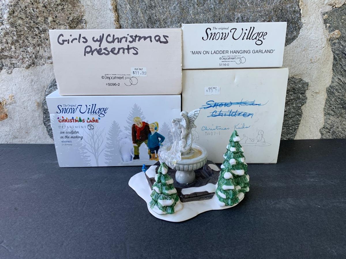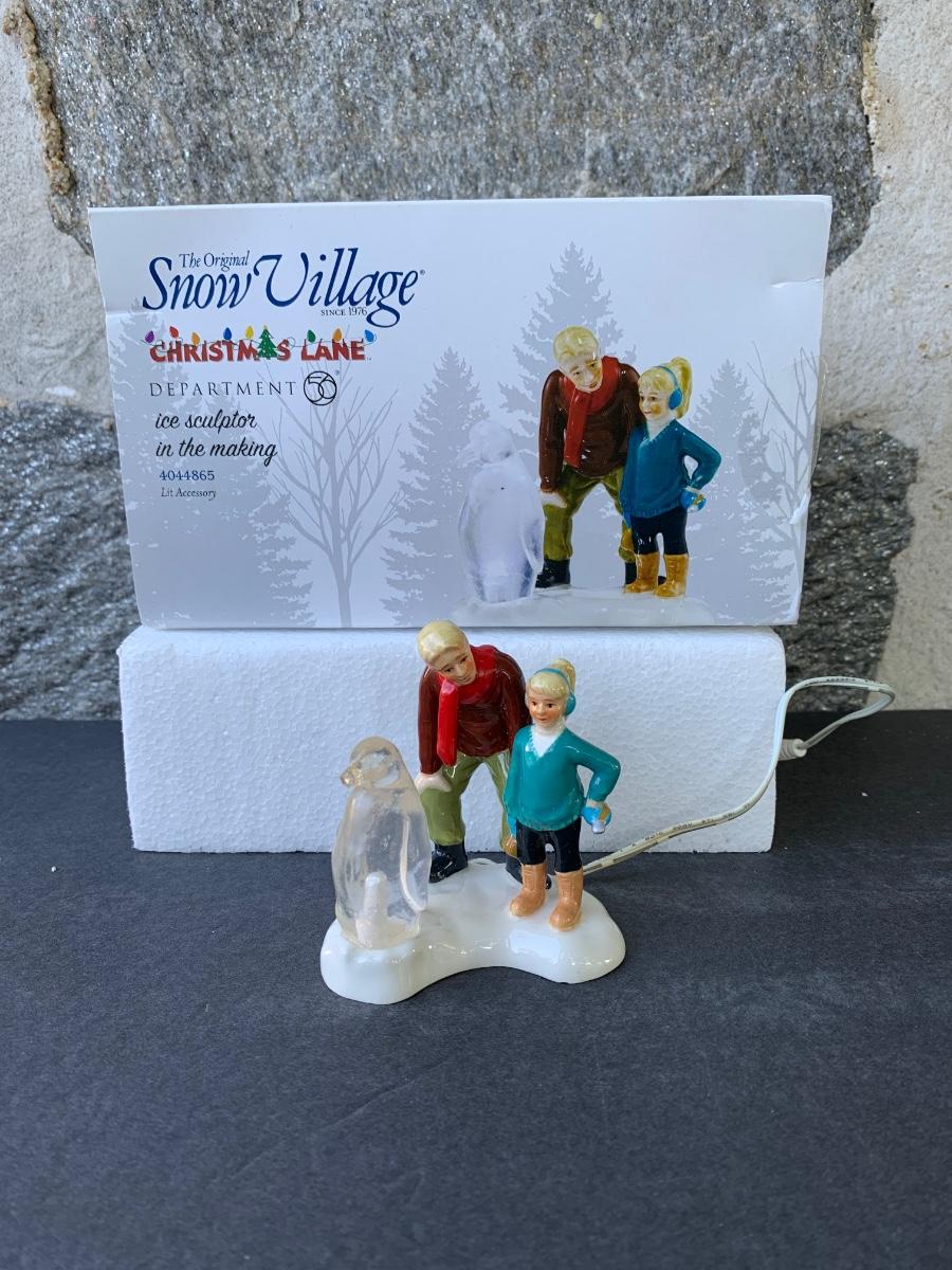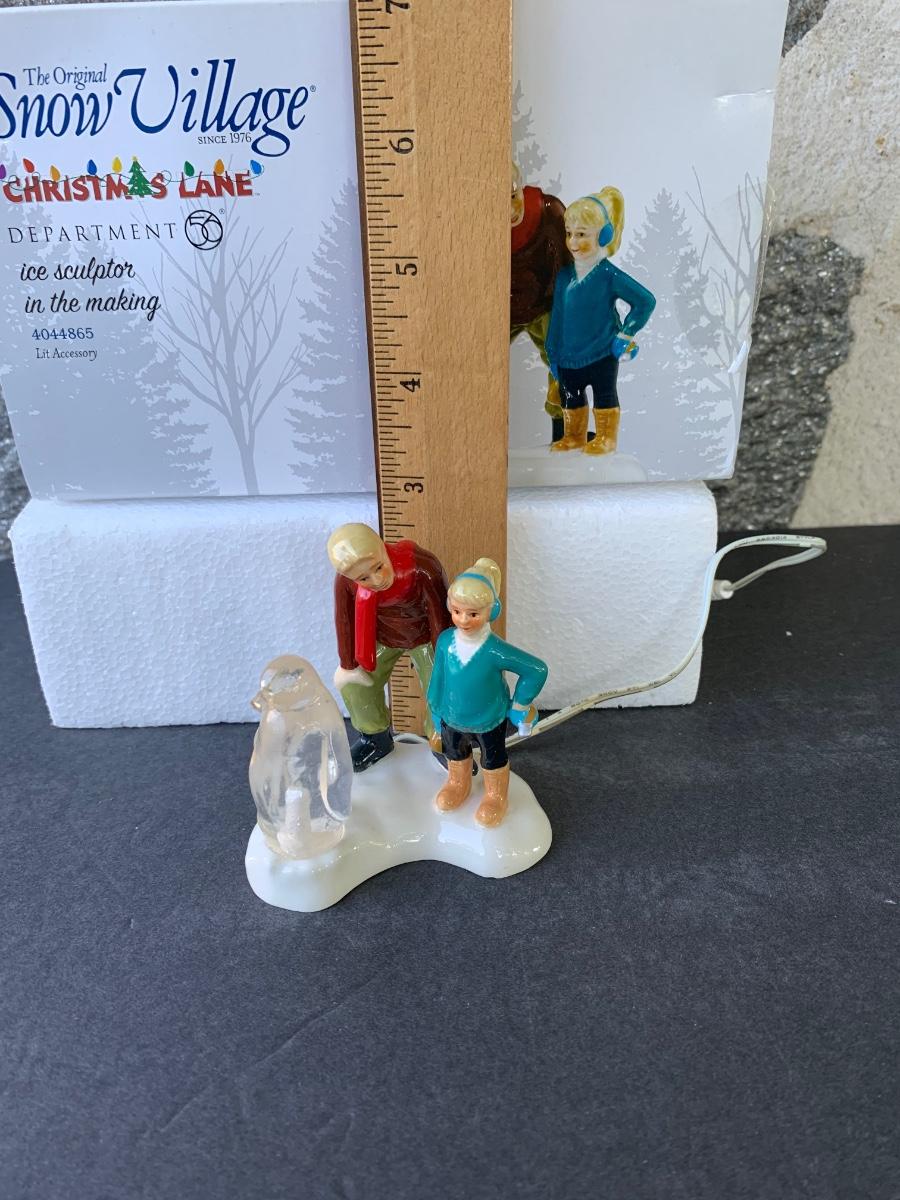 LOT 48R: Dept 56 Accessories: Ice Sculptor in the Making, Christmas Kids, Man On Ladder Hanging Garland & More