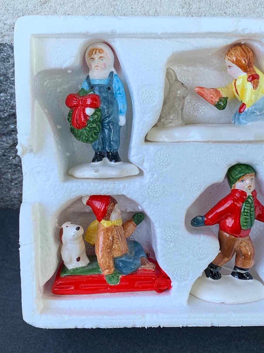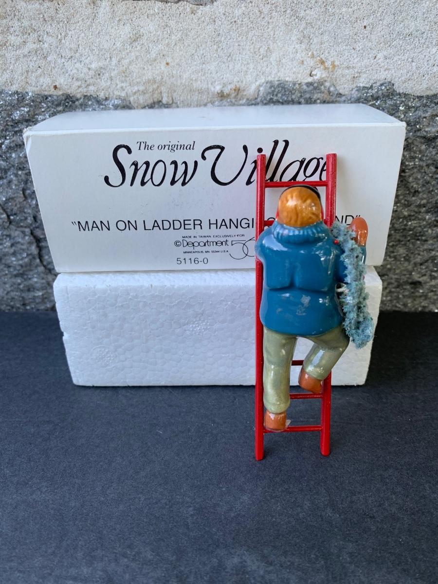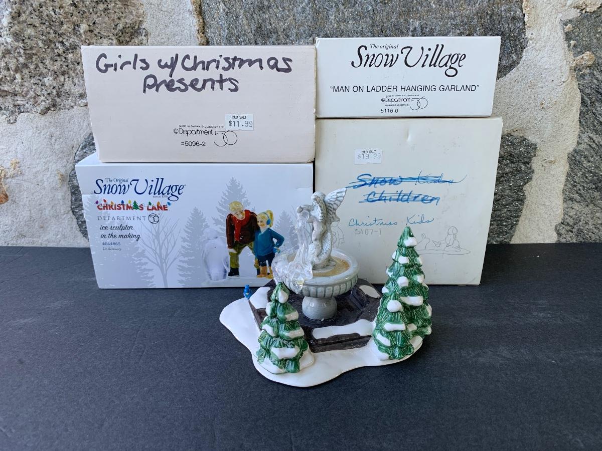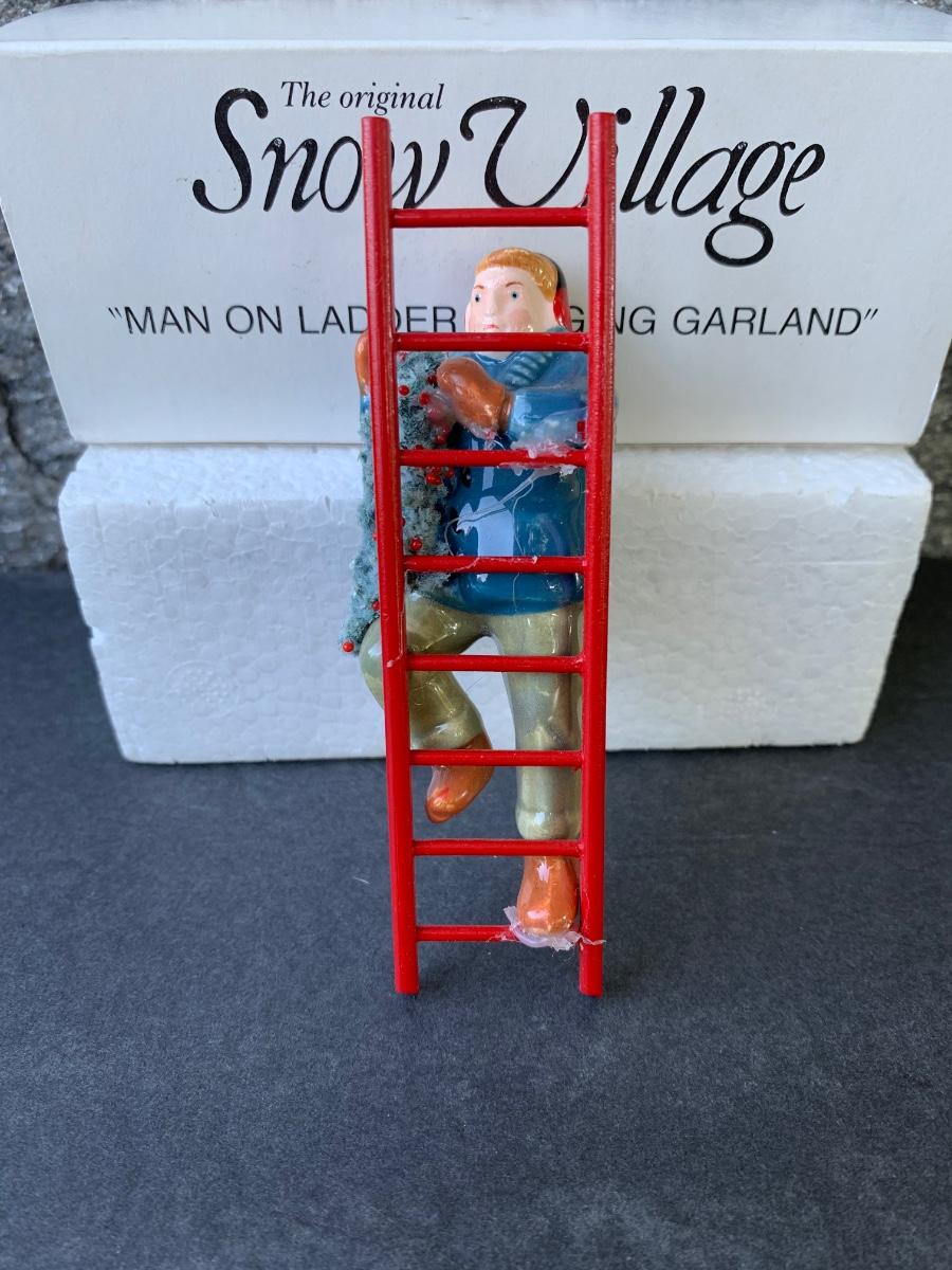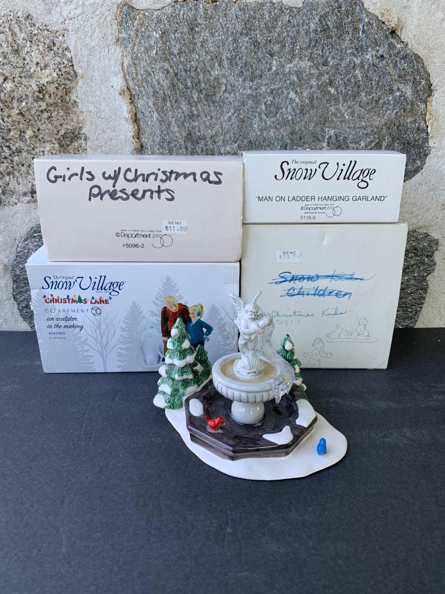 LOT 48R: Dept 56 Accessories: Ice Sculptor in the Making, Christmas Kids, Man On Ladder Hanging Garland & More