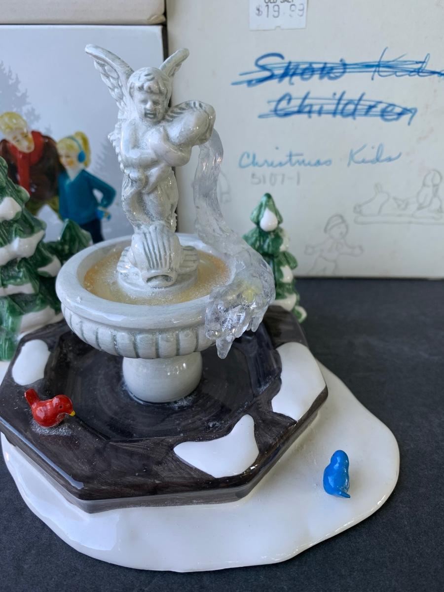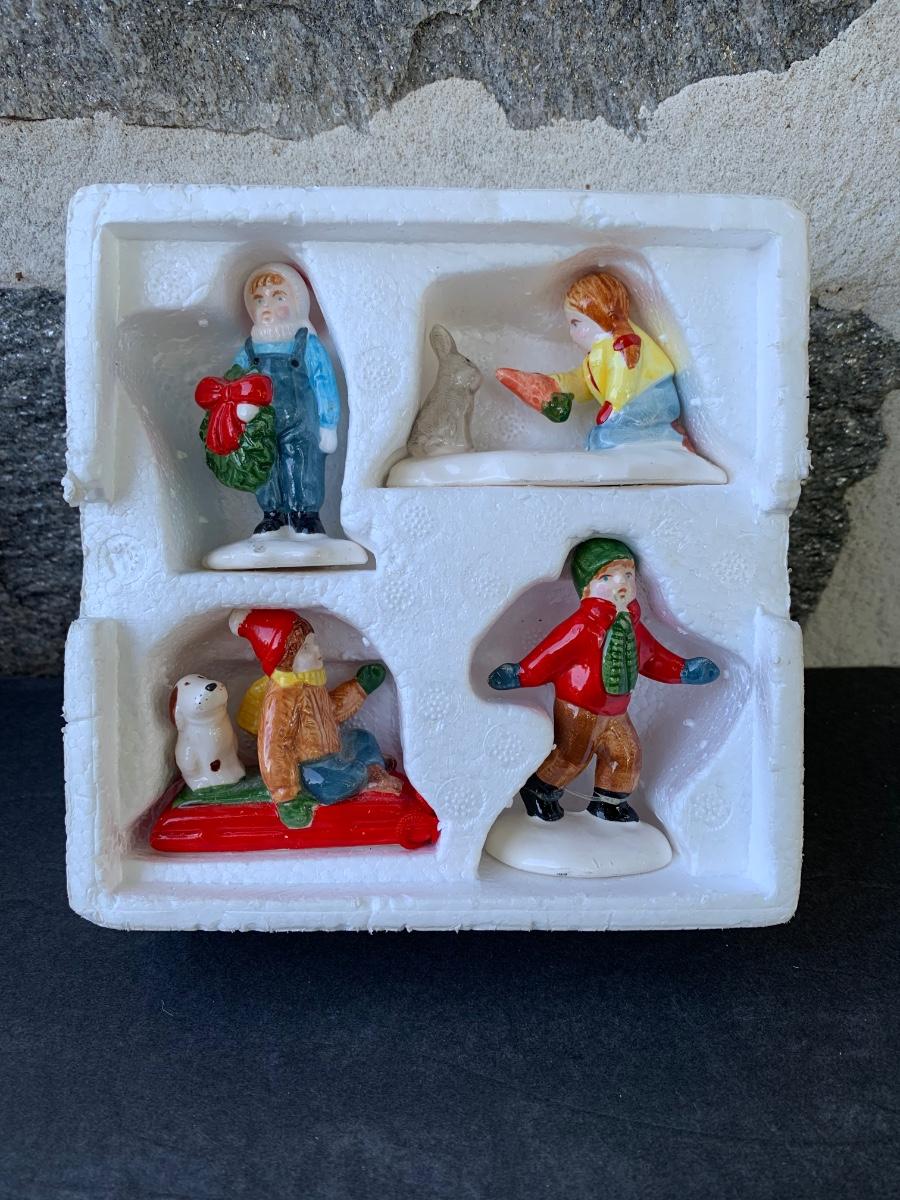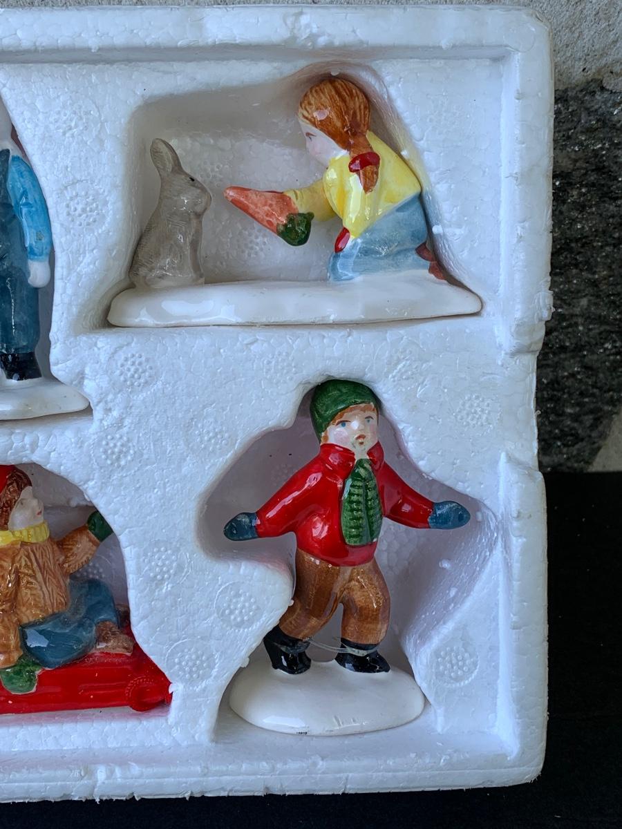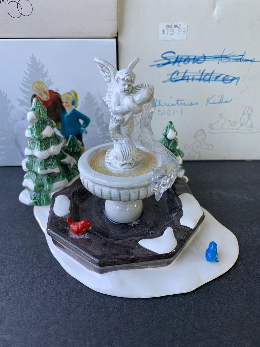 LOT 48R: Dept 56 Accessories: Ice Sculptor in the Making, Christmas Kids, Man On Ladder Hanging Garland & More