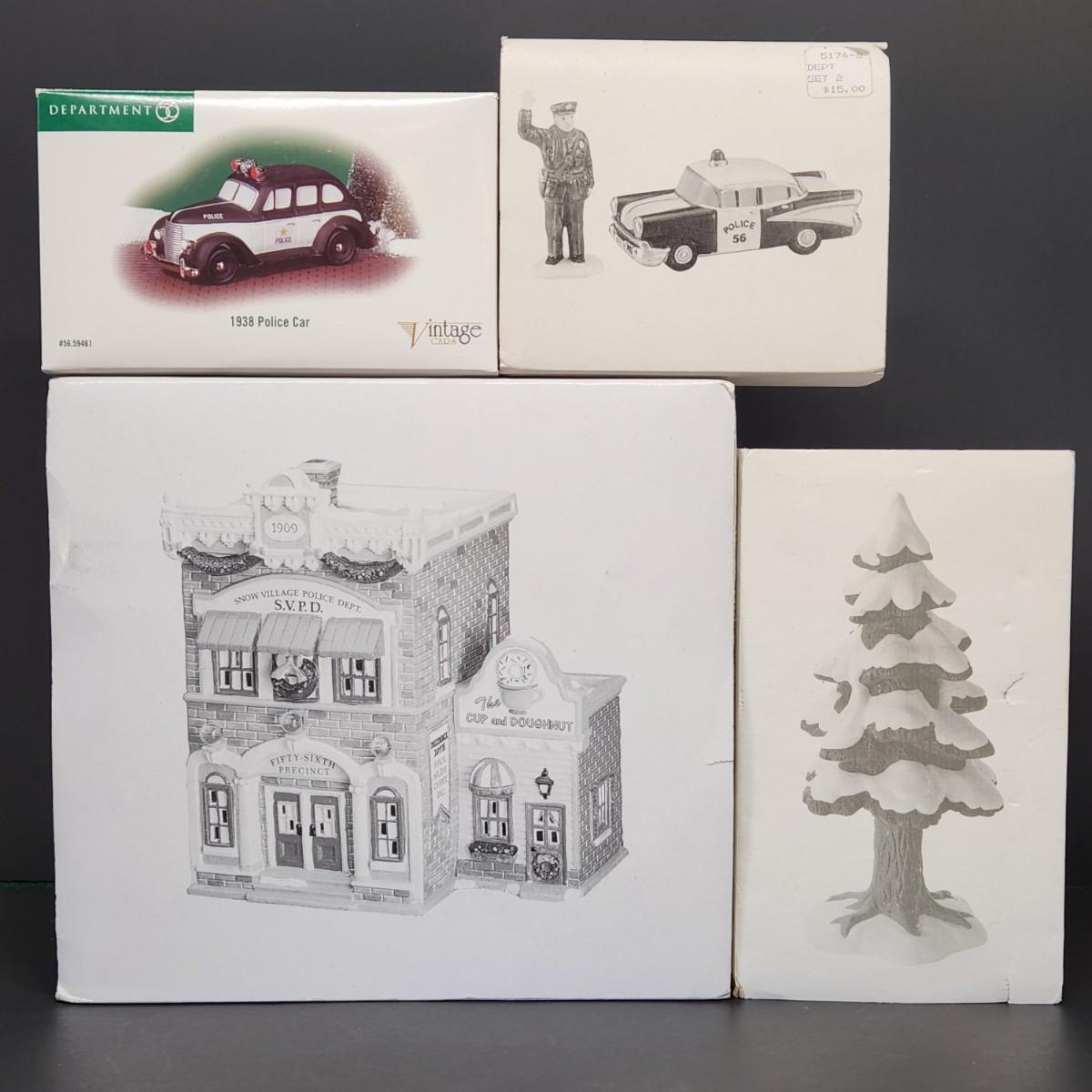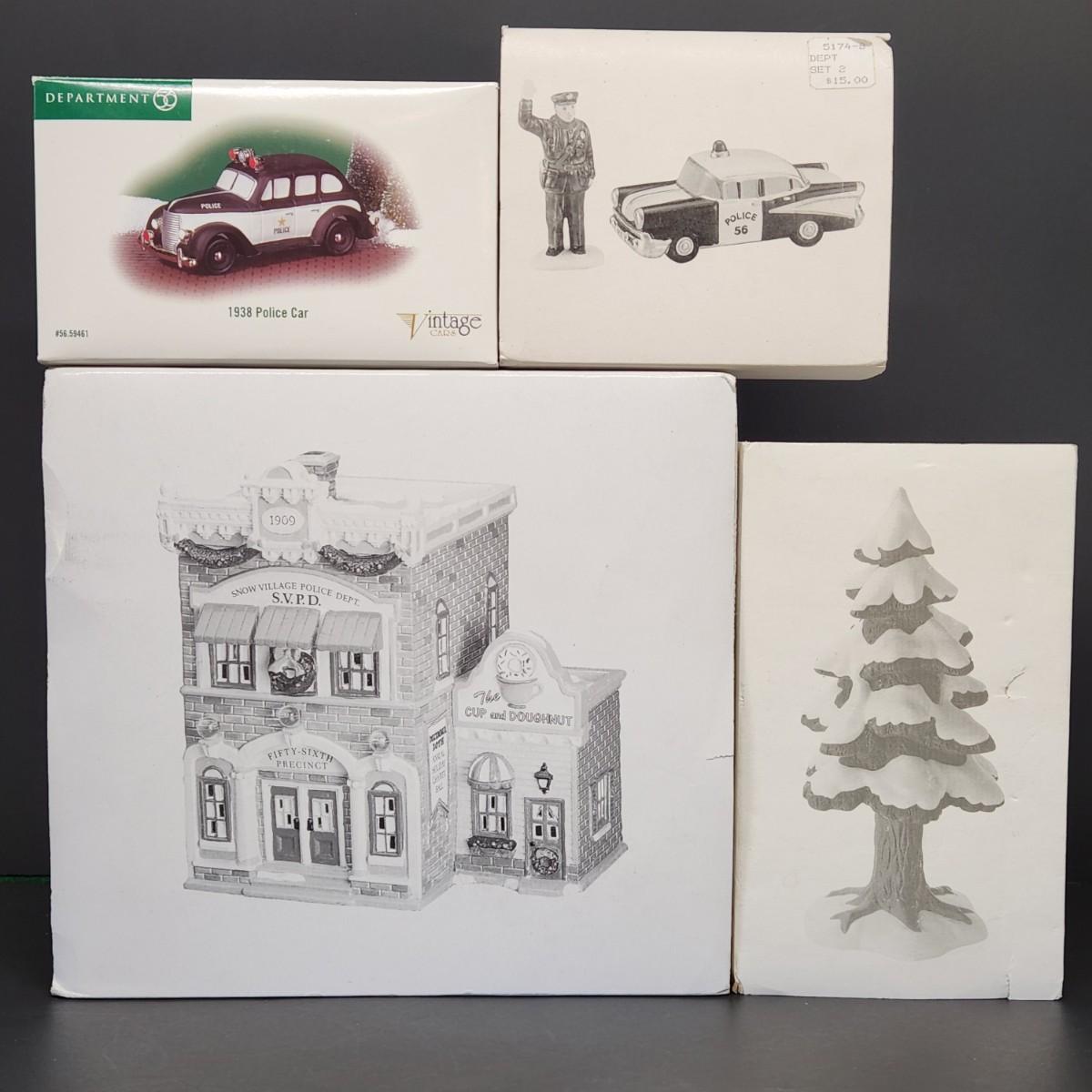 LOT 58RP: Dept. 56: Village Police Station, Police Car, Calling All Cars & More