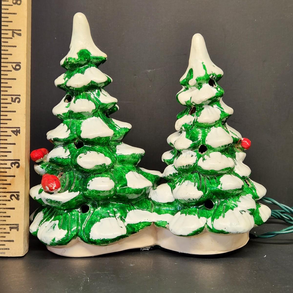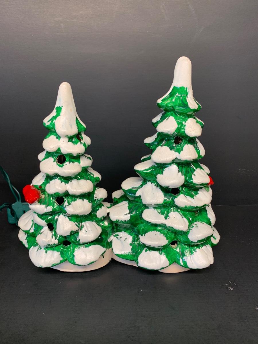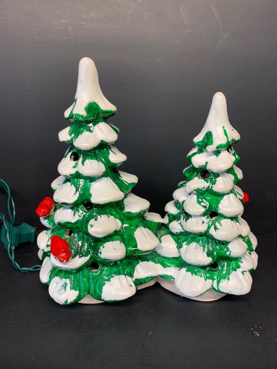 LOT 63RP: Dept. 56: Craftsman Cottage, Vintage Ceramic Trees, Stone Fence & More