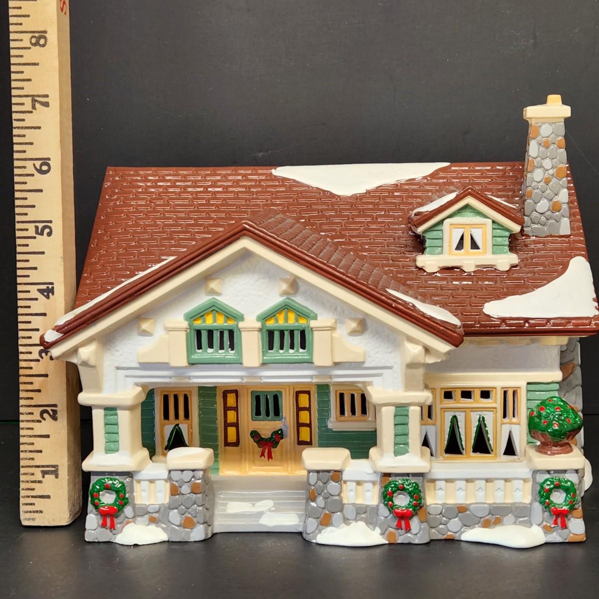 LOT 63RP: Dept. 56:  Craftsman Cottage, Vintage Ceramic Trees, Stone Fence & More