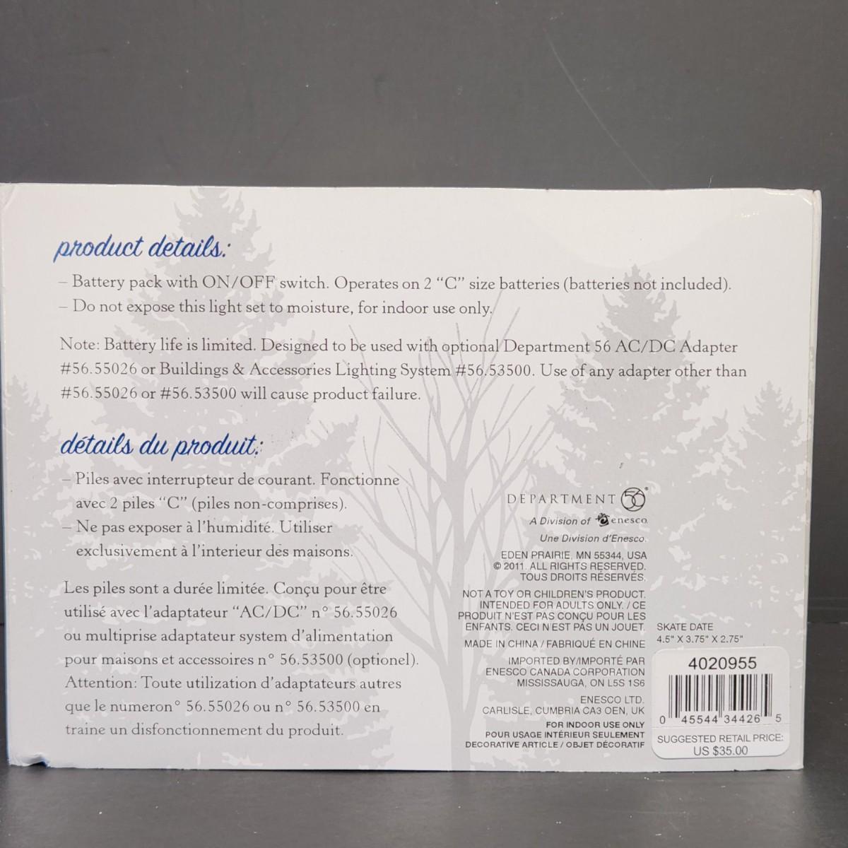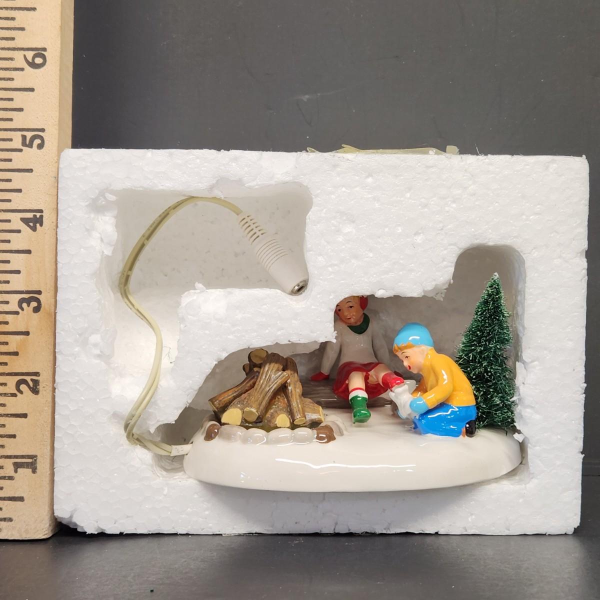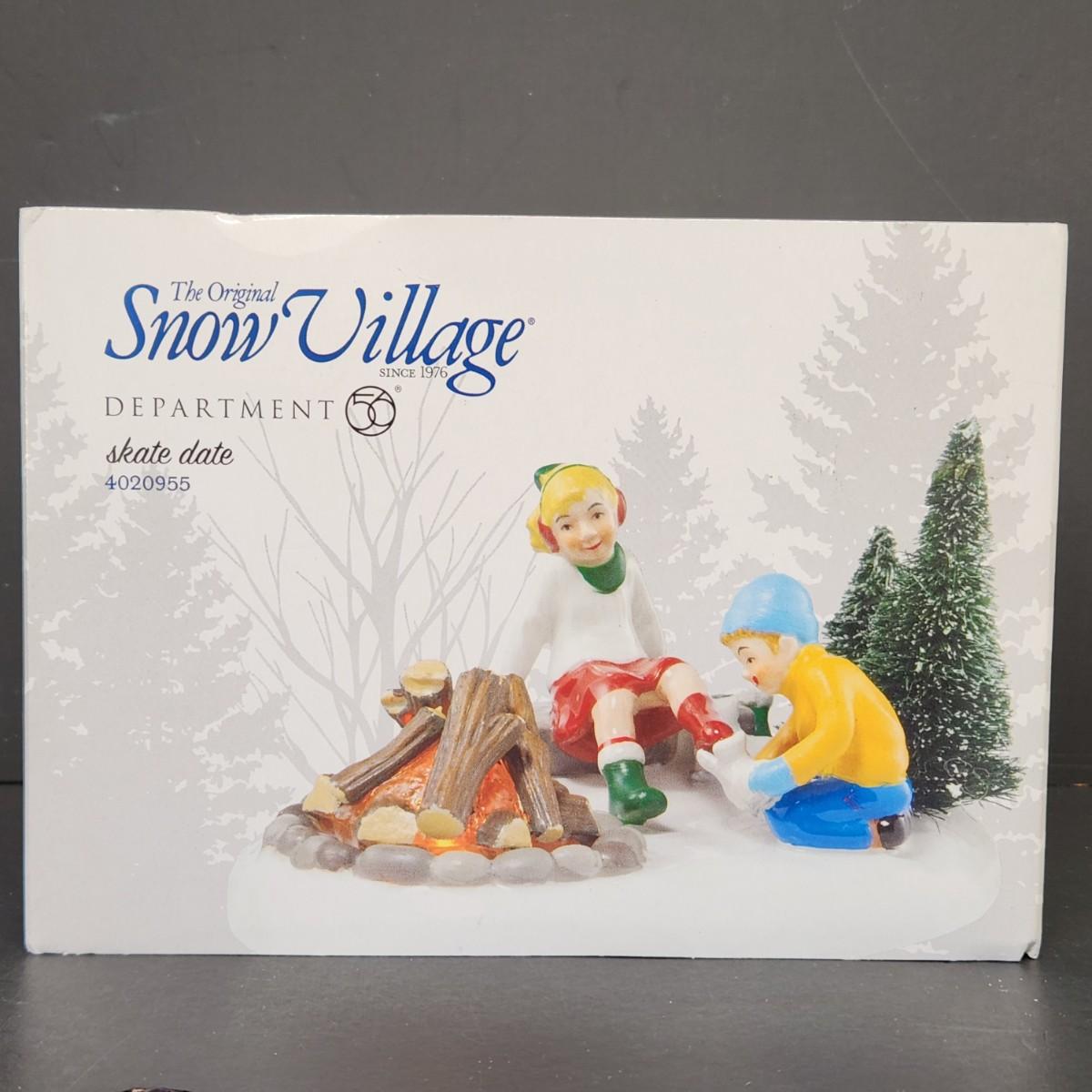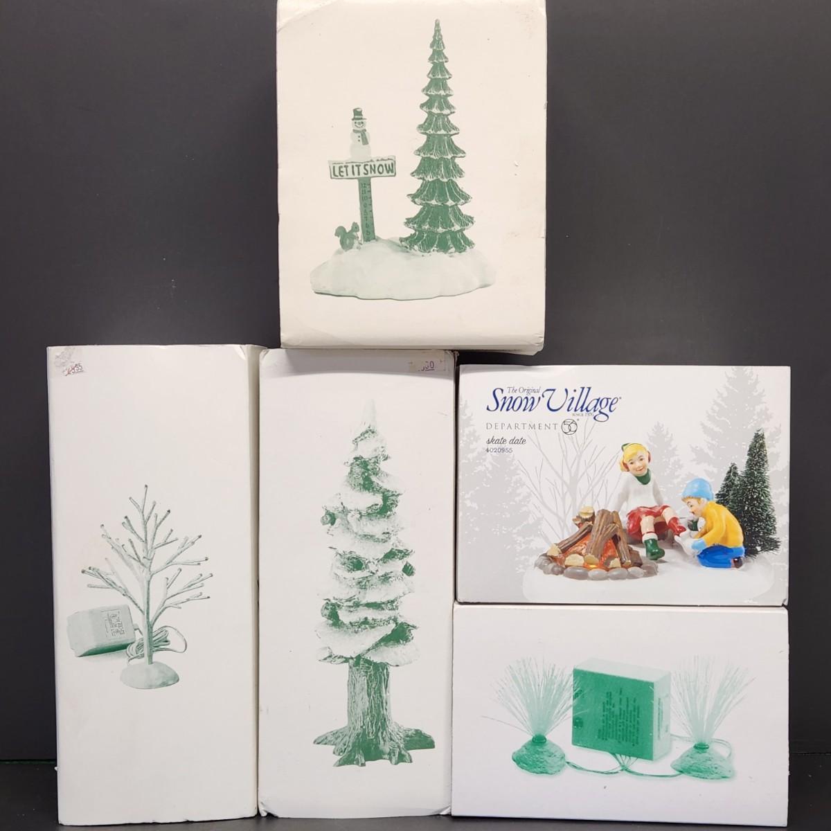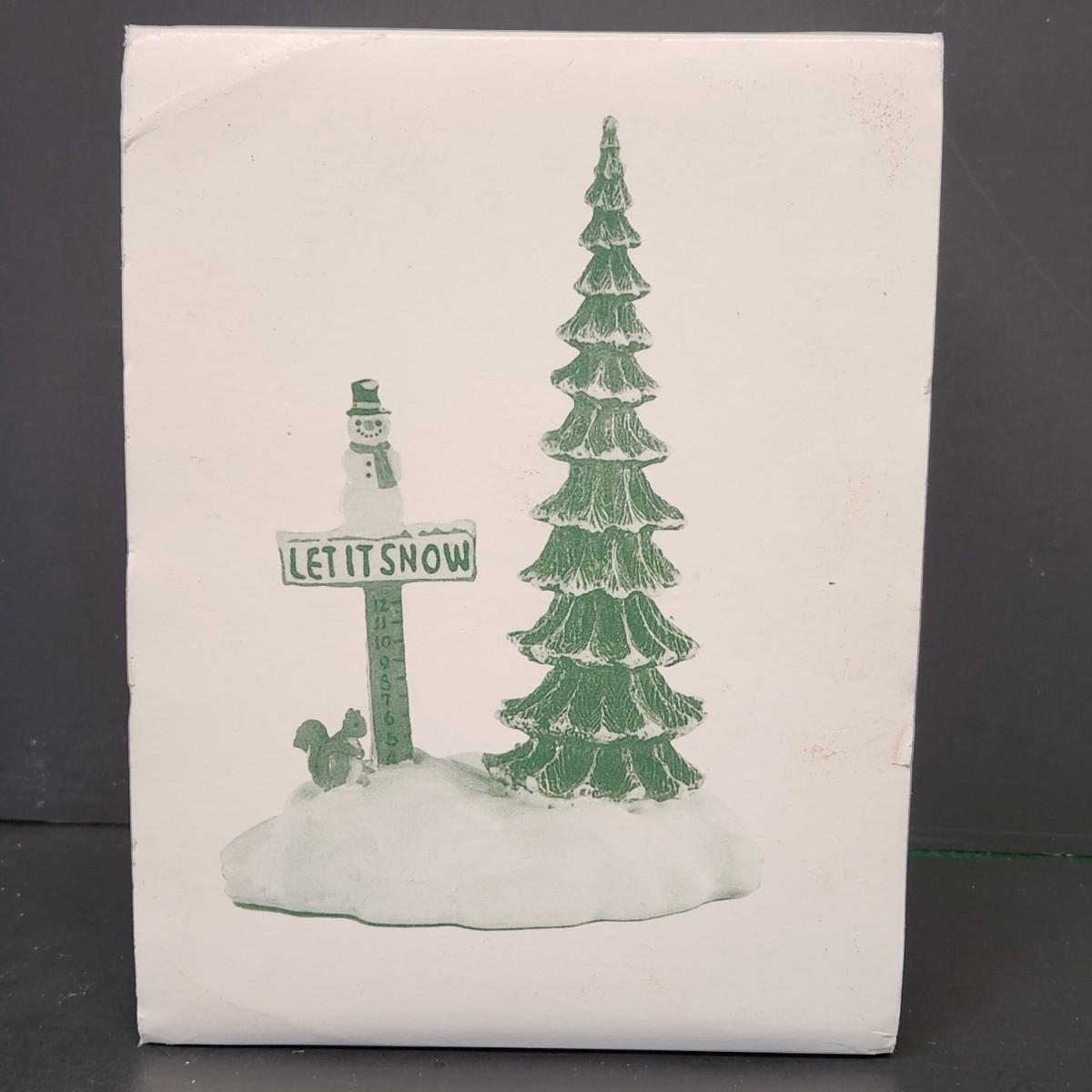 LOT 67RP: Dept. 56: Skate Date, "Let It Snow" Snowman Sign, Pole Pine Tree & More