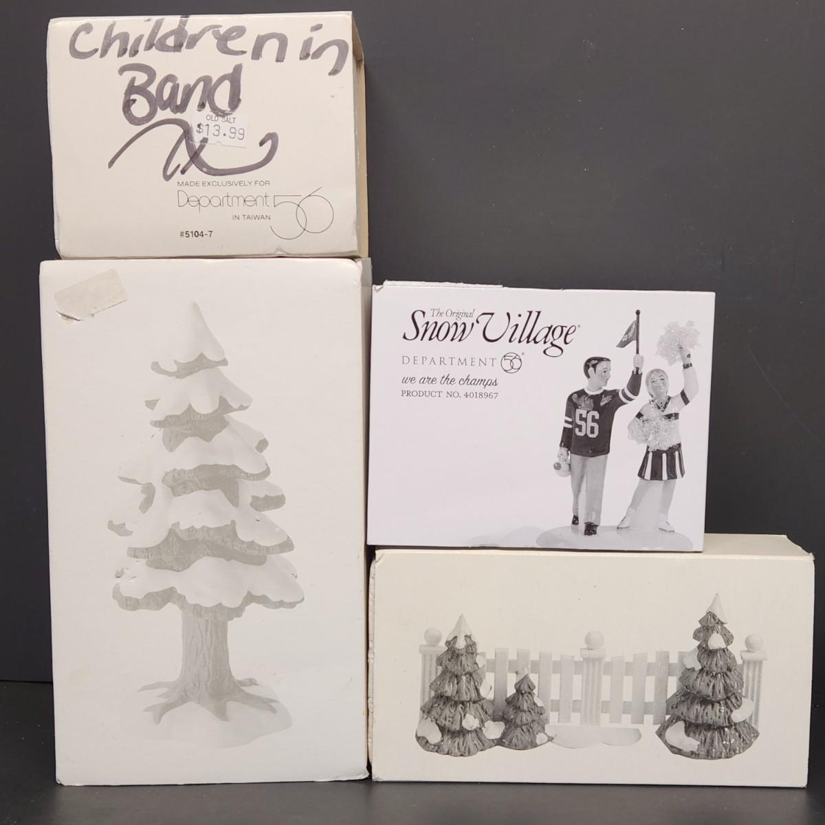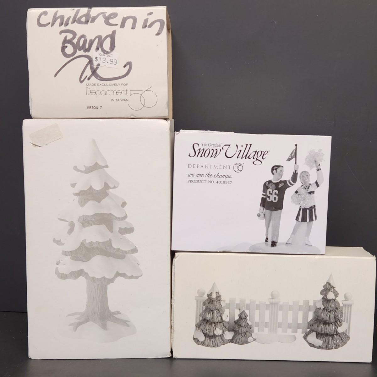 LOT 68RP: Dept. 56: We Are the Champs, "Village Porcelain Pine" Small, Children In The Band & More