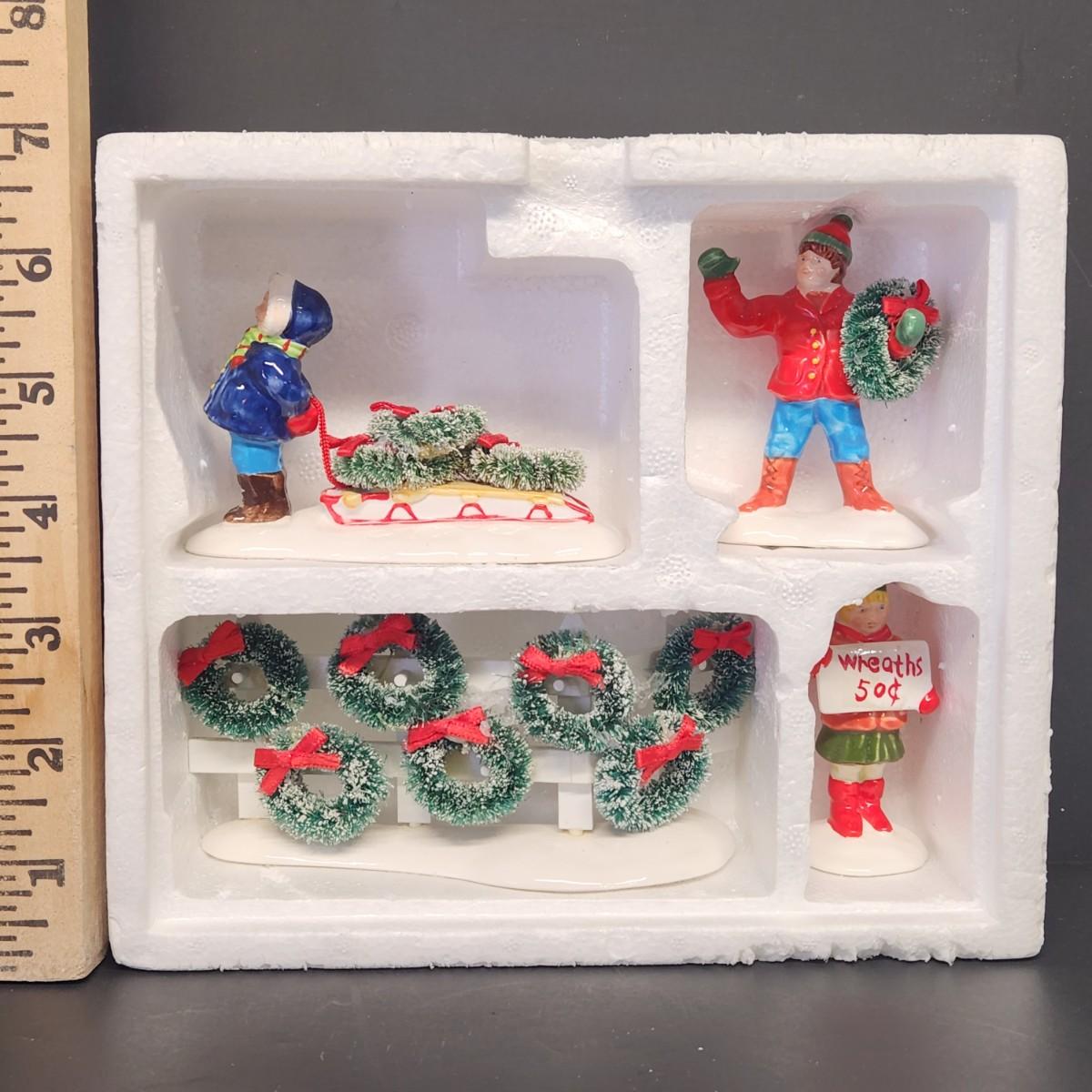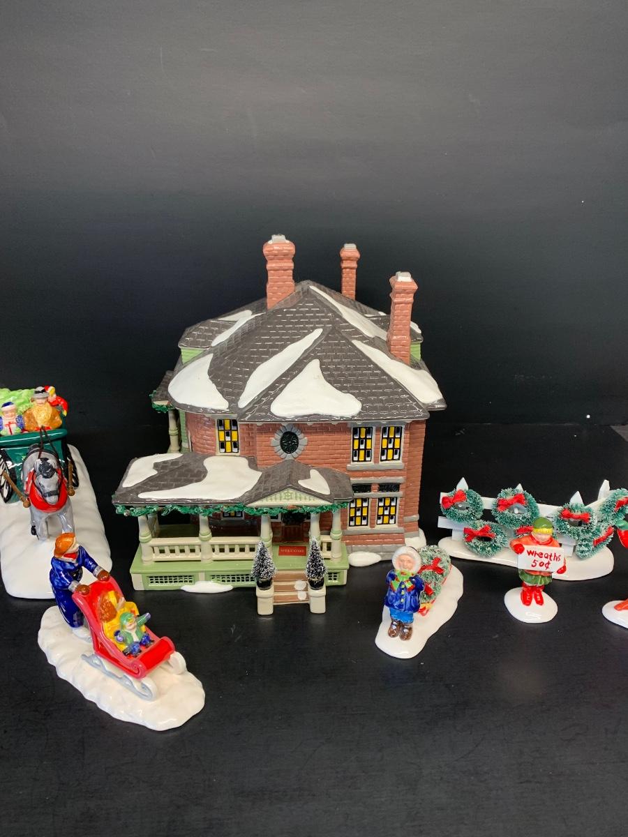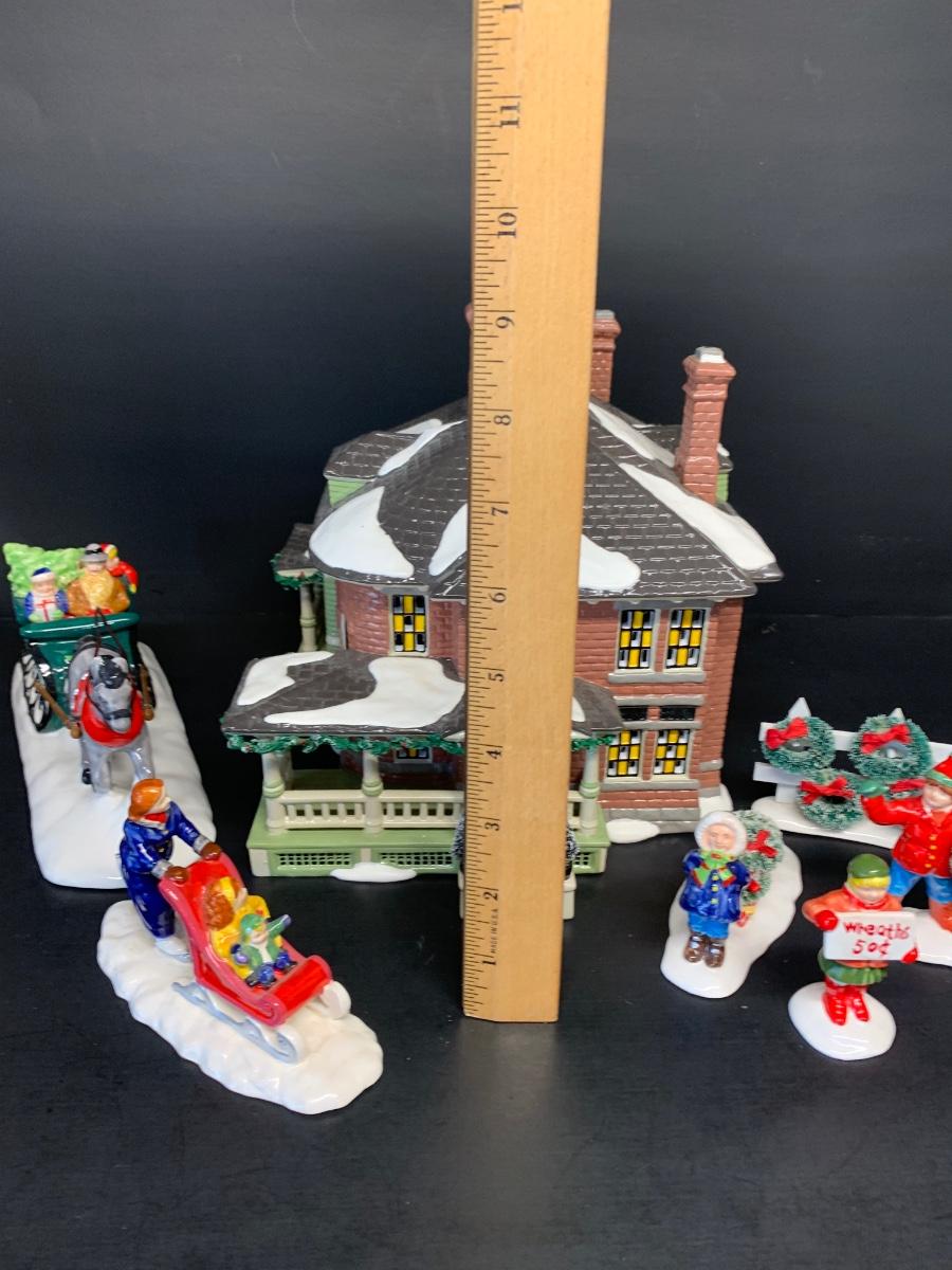 LOT 69RP: Dept. 56: Bachman House, Wreaths For Sale, Skate Faster Mom w/More
