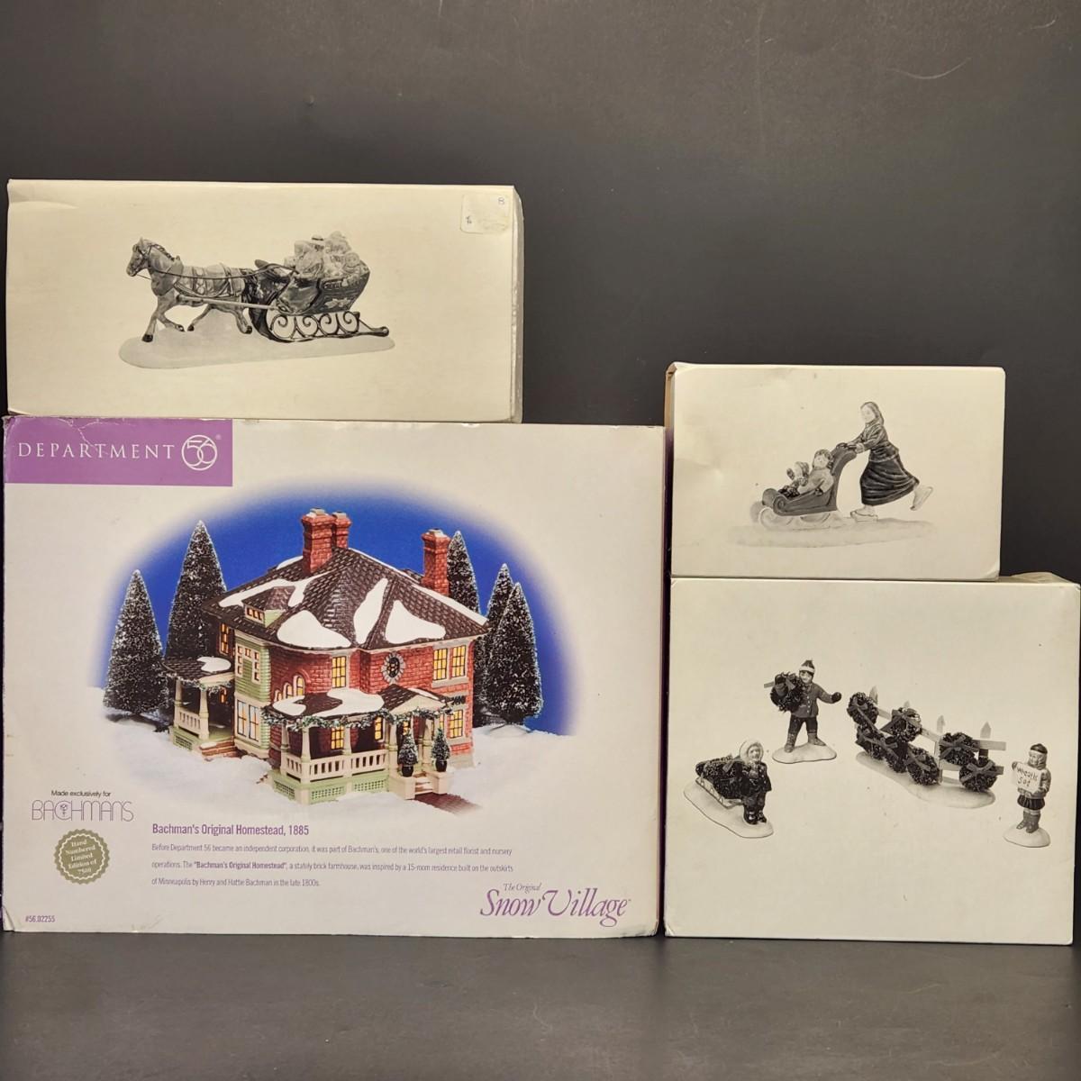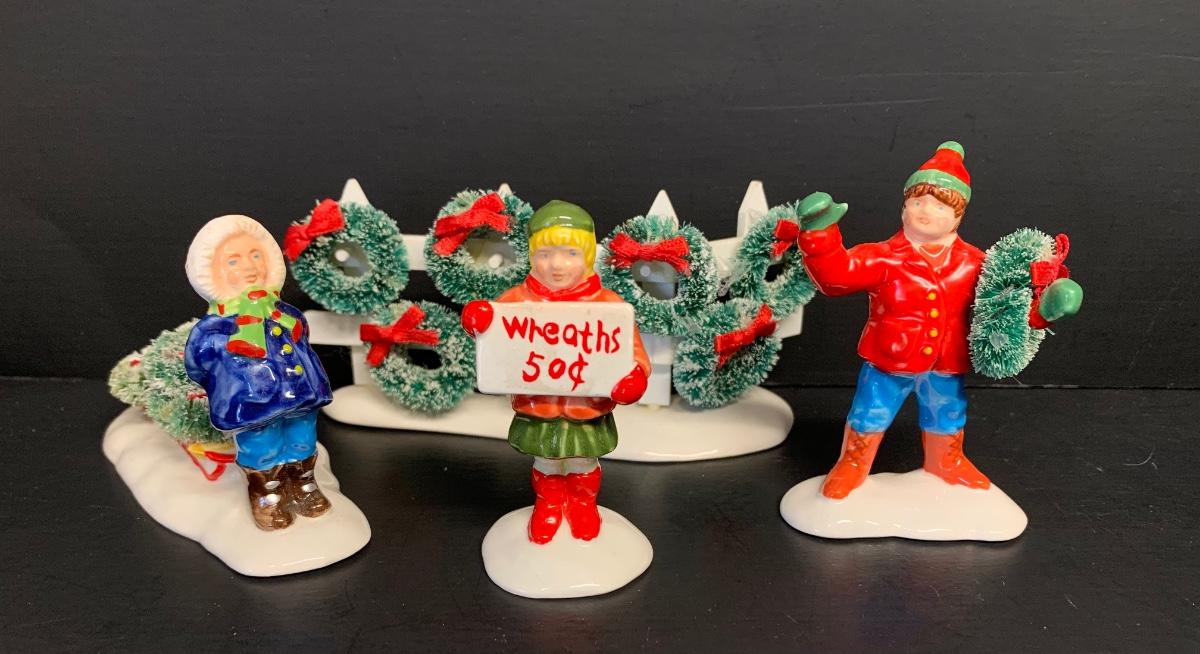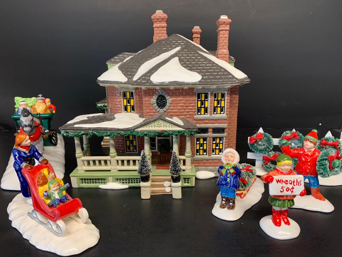 LOT 69RP: Dept. 56: Bachman House, Wreaths For Sale, Skate Faster Mom w/More