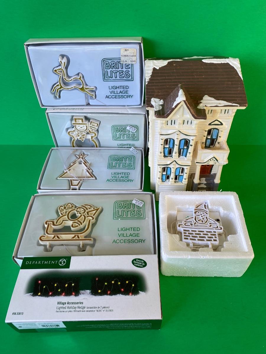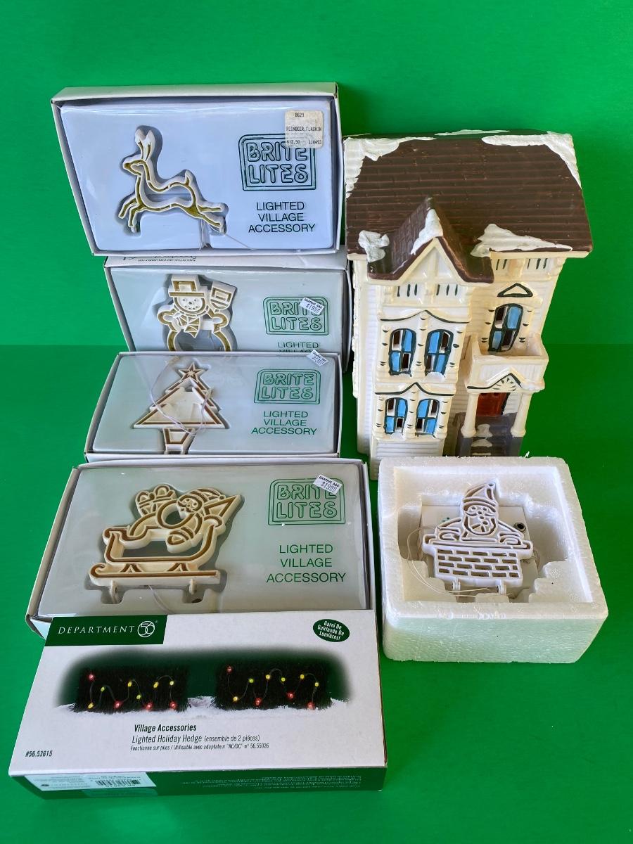 LOT 85C: Department 56: Vintage Ceramic Holiday House, Brite Lites & Holiday Hedges