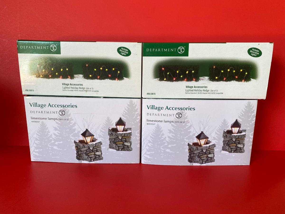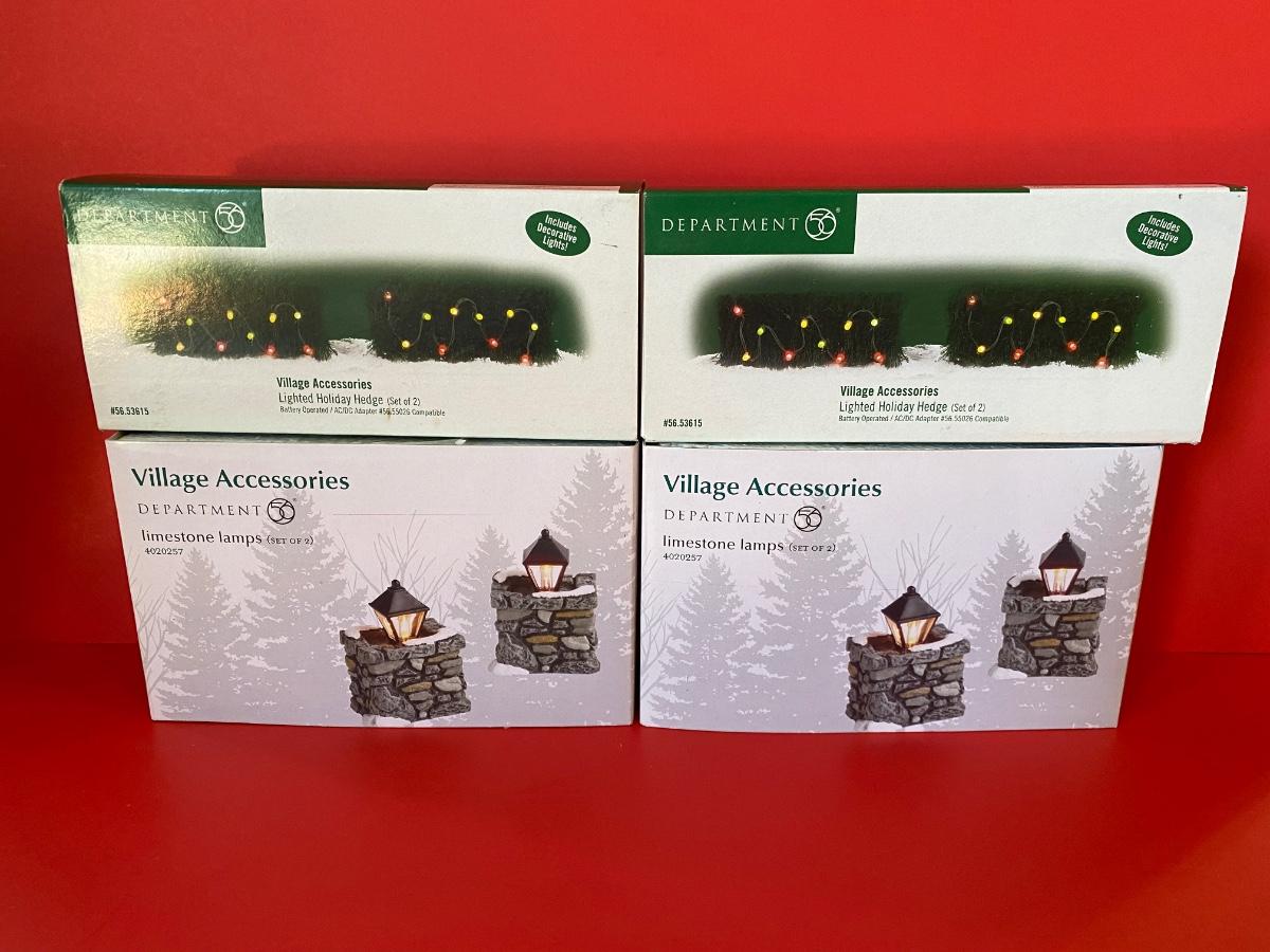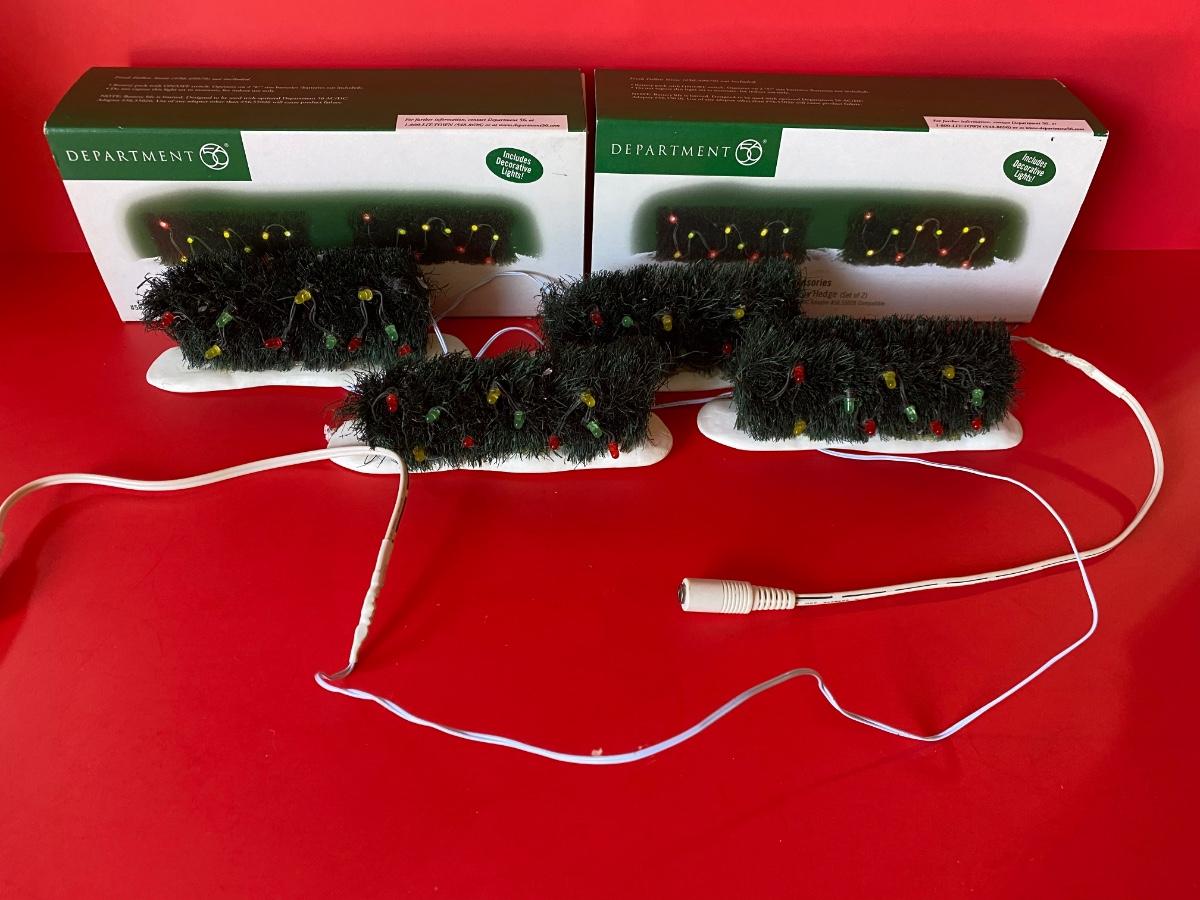 LOT 87C: Department 56: Limestone Lamps & Holiday Hedge w/Lights