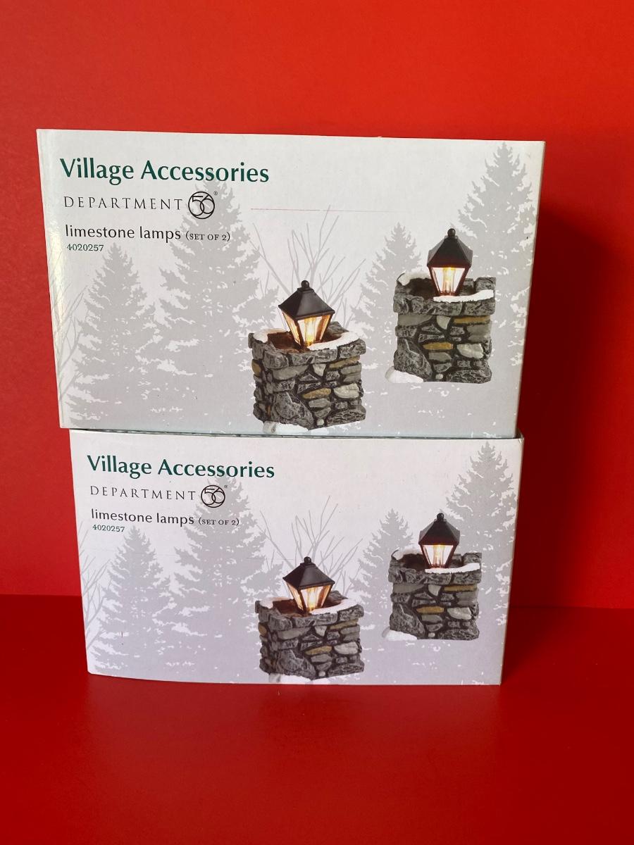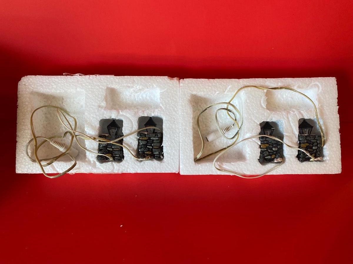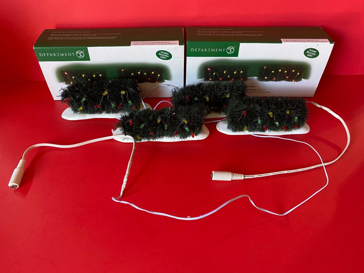 LOT 87C: Department 56: Limestone Lamps & Holiday Hedge w/Lights