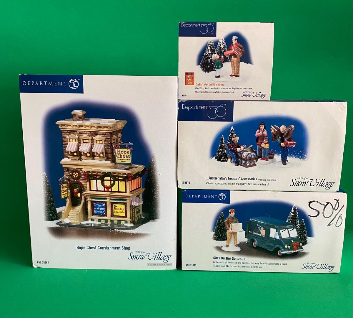 LOT 90C: Department 56 Hope Chest Consignment Shop, Another Man's Treasure & More