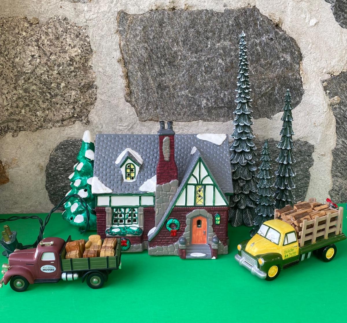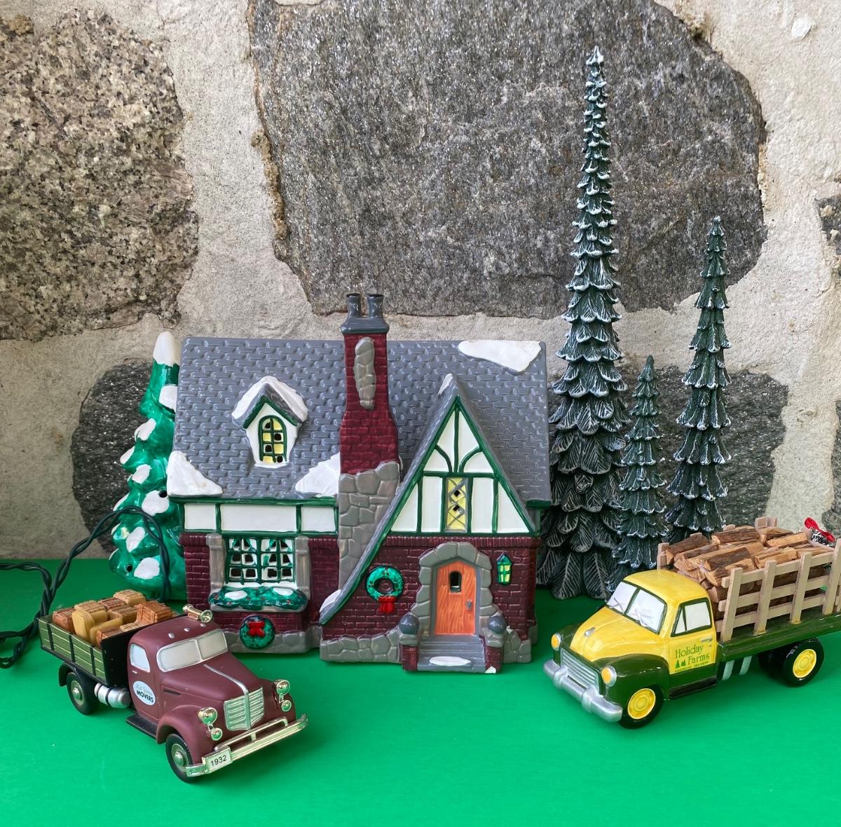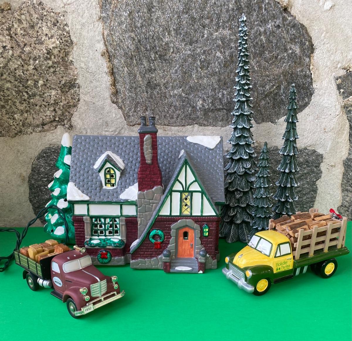LOT 98C: Department 56: Village Cottage, Holiday Farms Firewood Delivery & More
