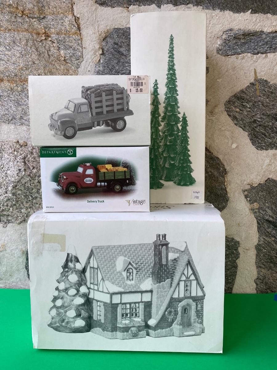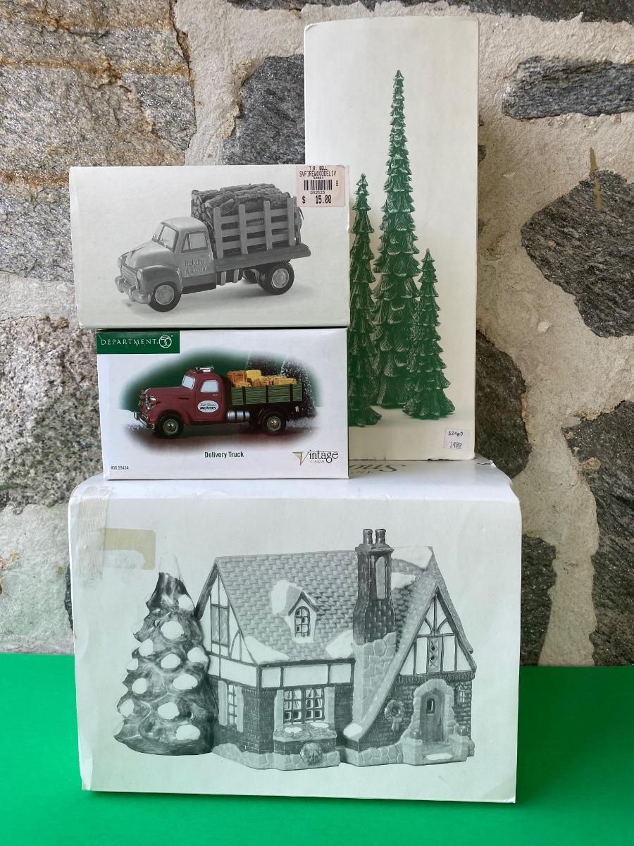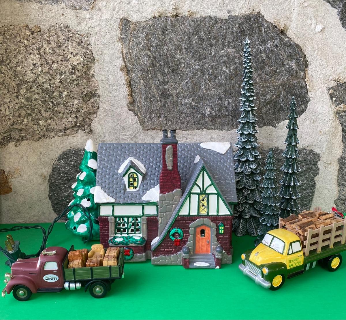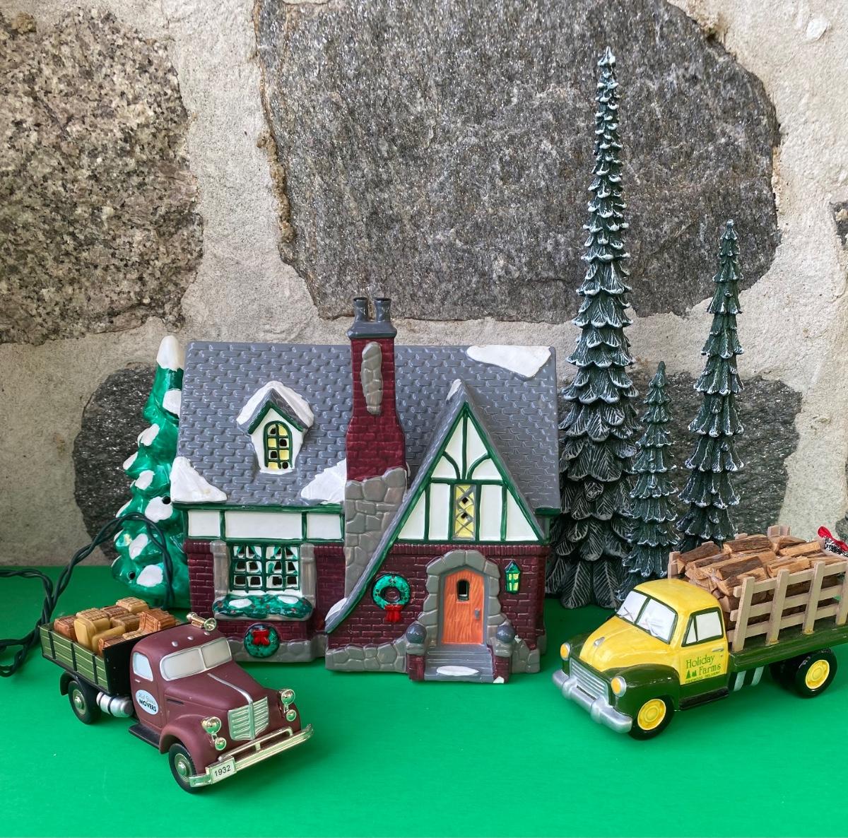 LOT 98C: Department 56: Village Cottage, Holiday Farms Firewood Delivery & More