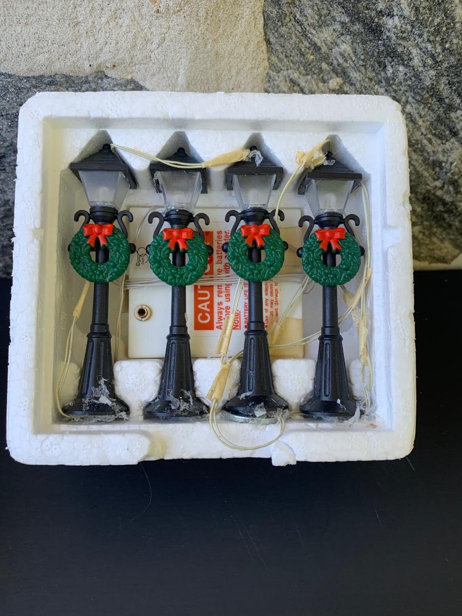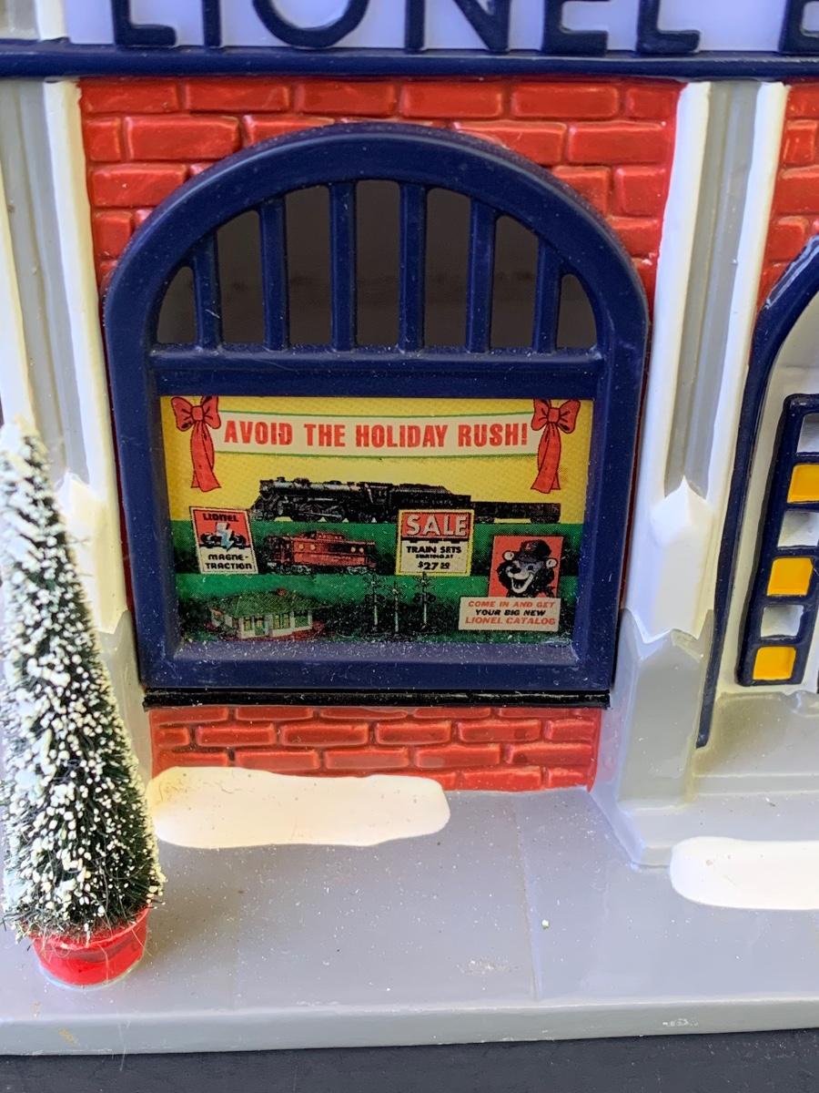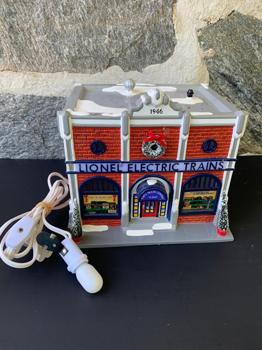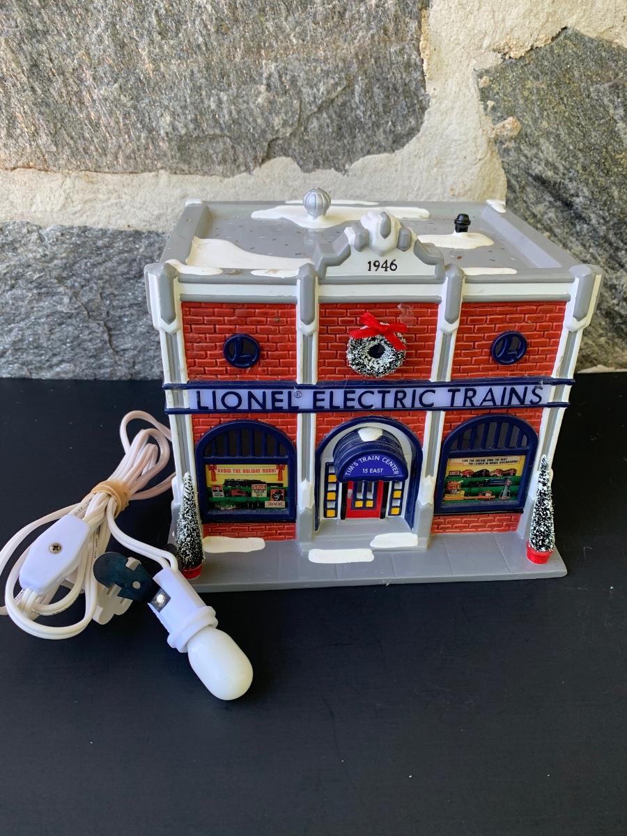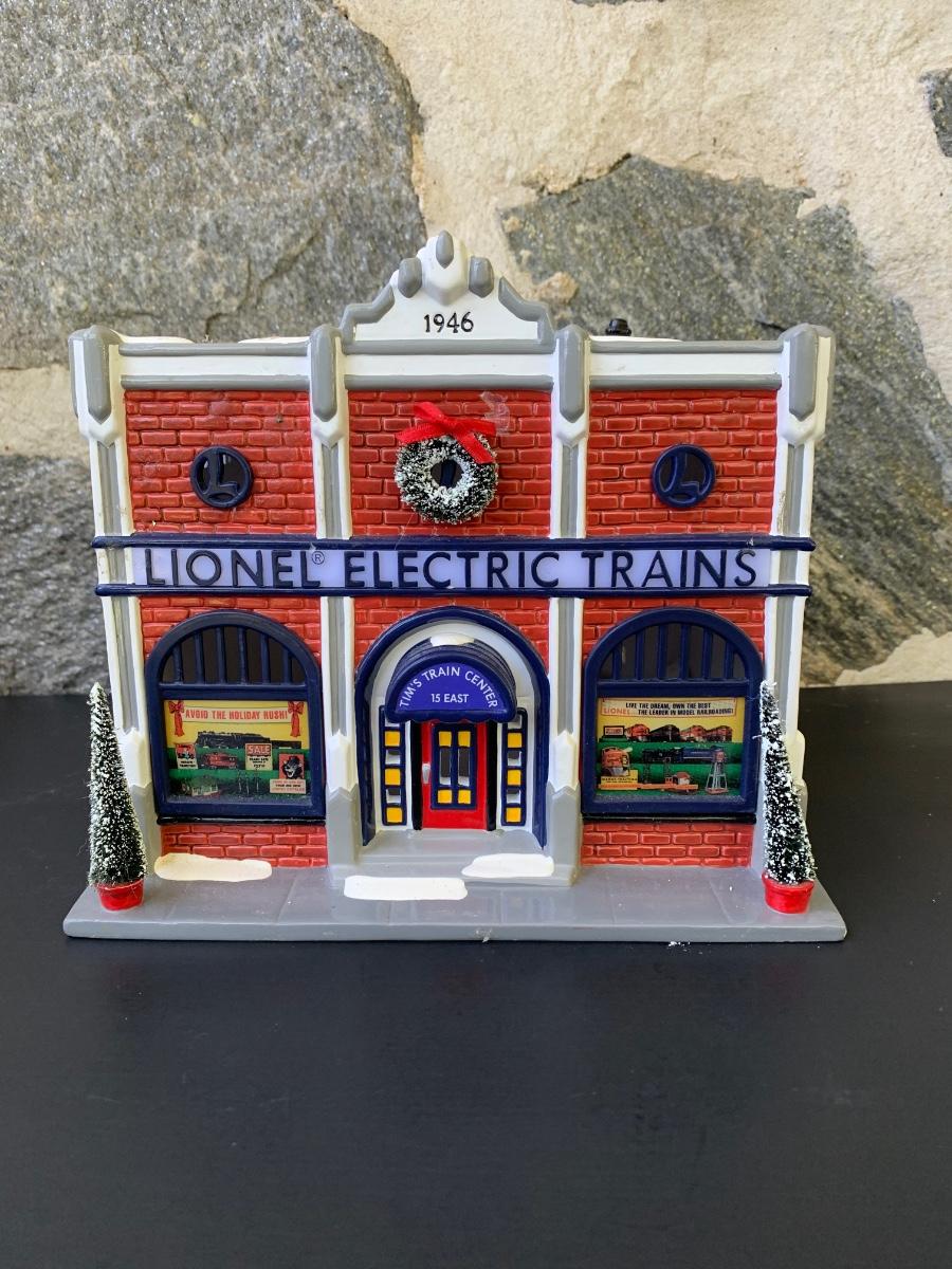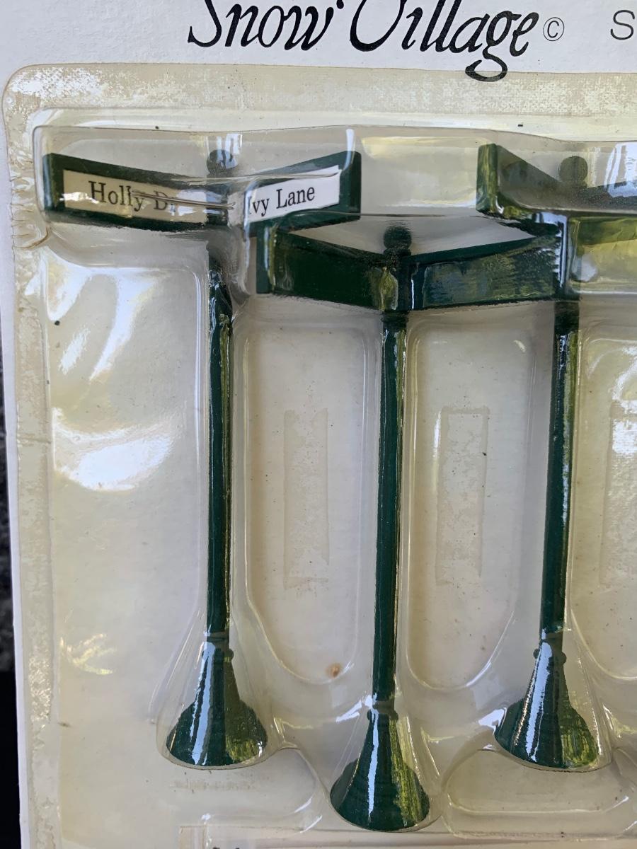 LOT 104R: Dept 56 Lionel Train Center, Turn of the Century Lampposts, Street Signs & Street Car Ornament