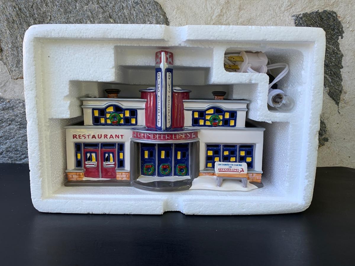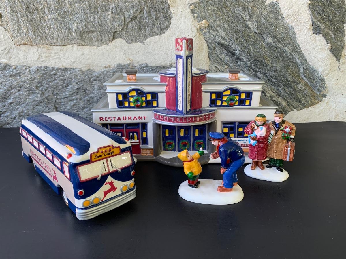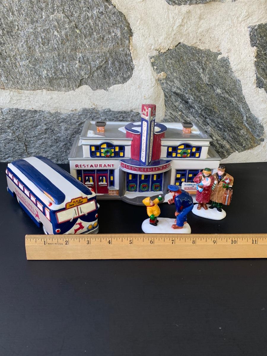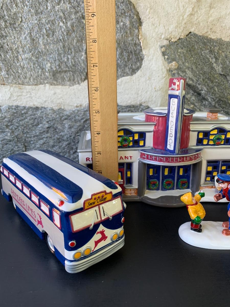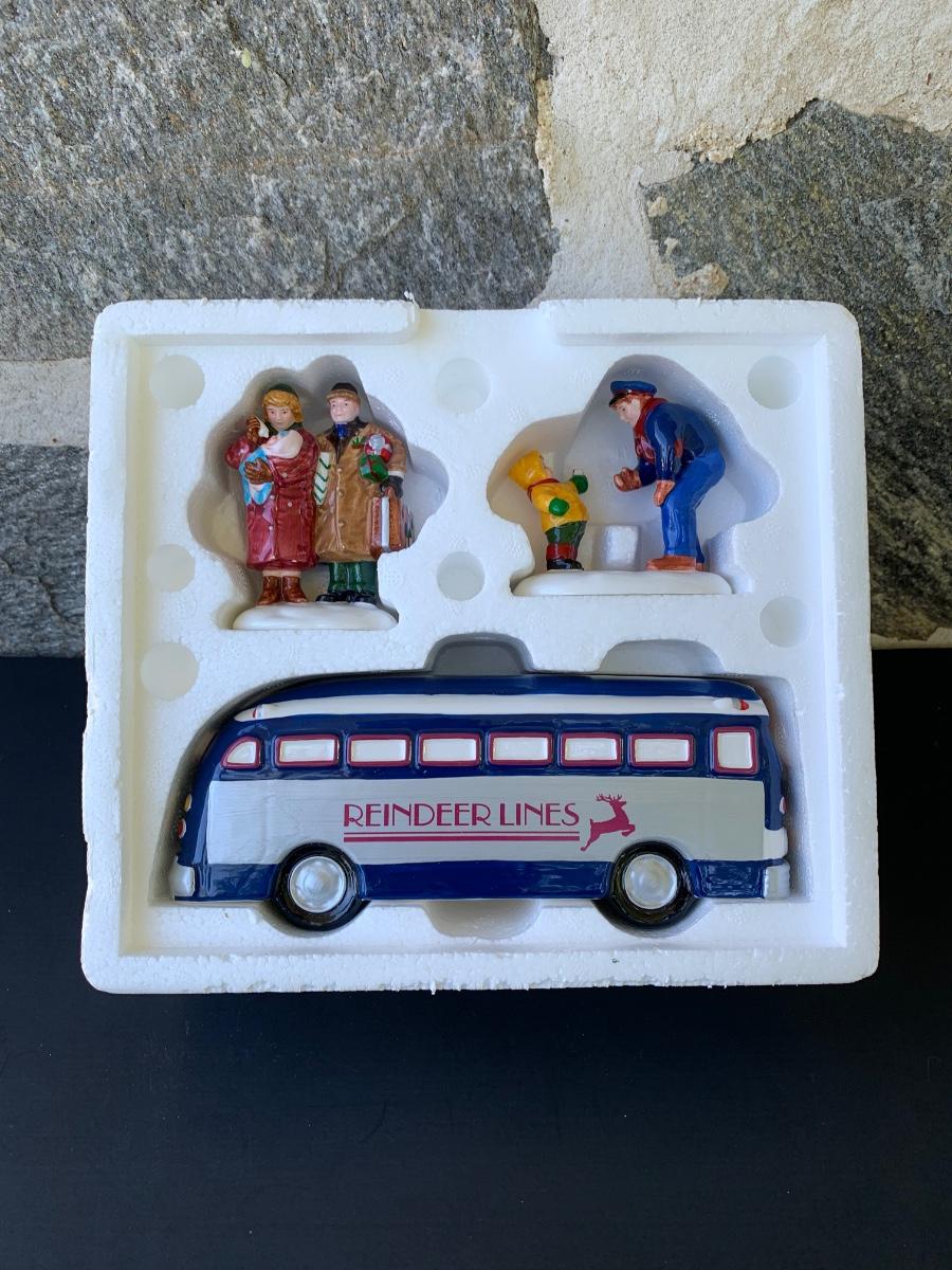 LOT 107: Dept 56: Reindeer Bus Stop & Ride on the Reindeer Lines w/Boxes & Light Cord